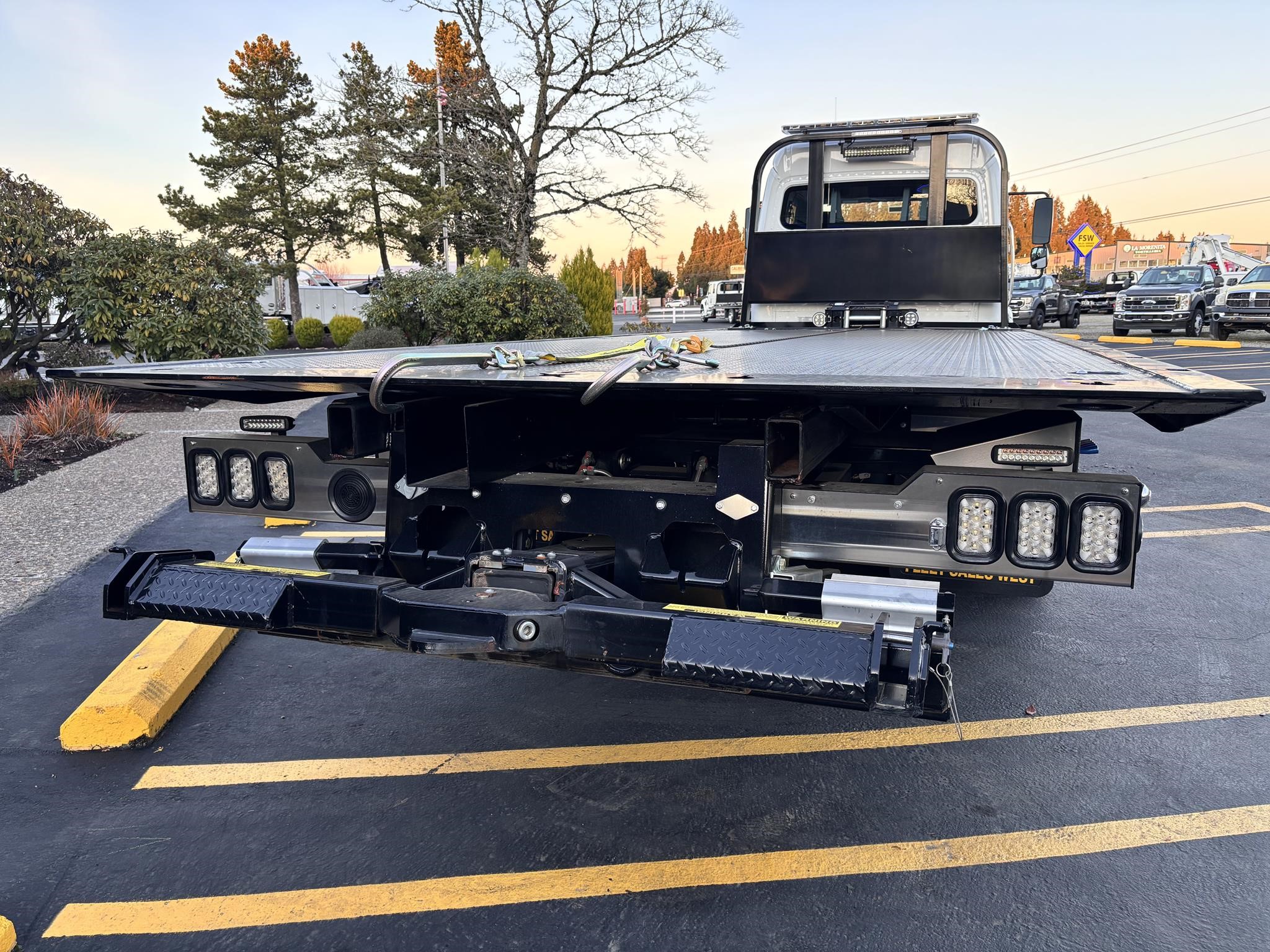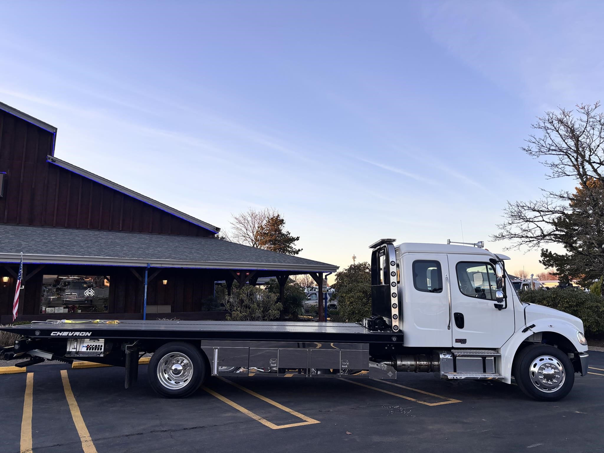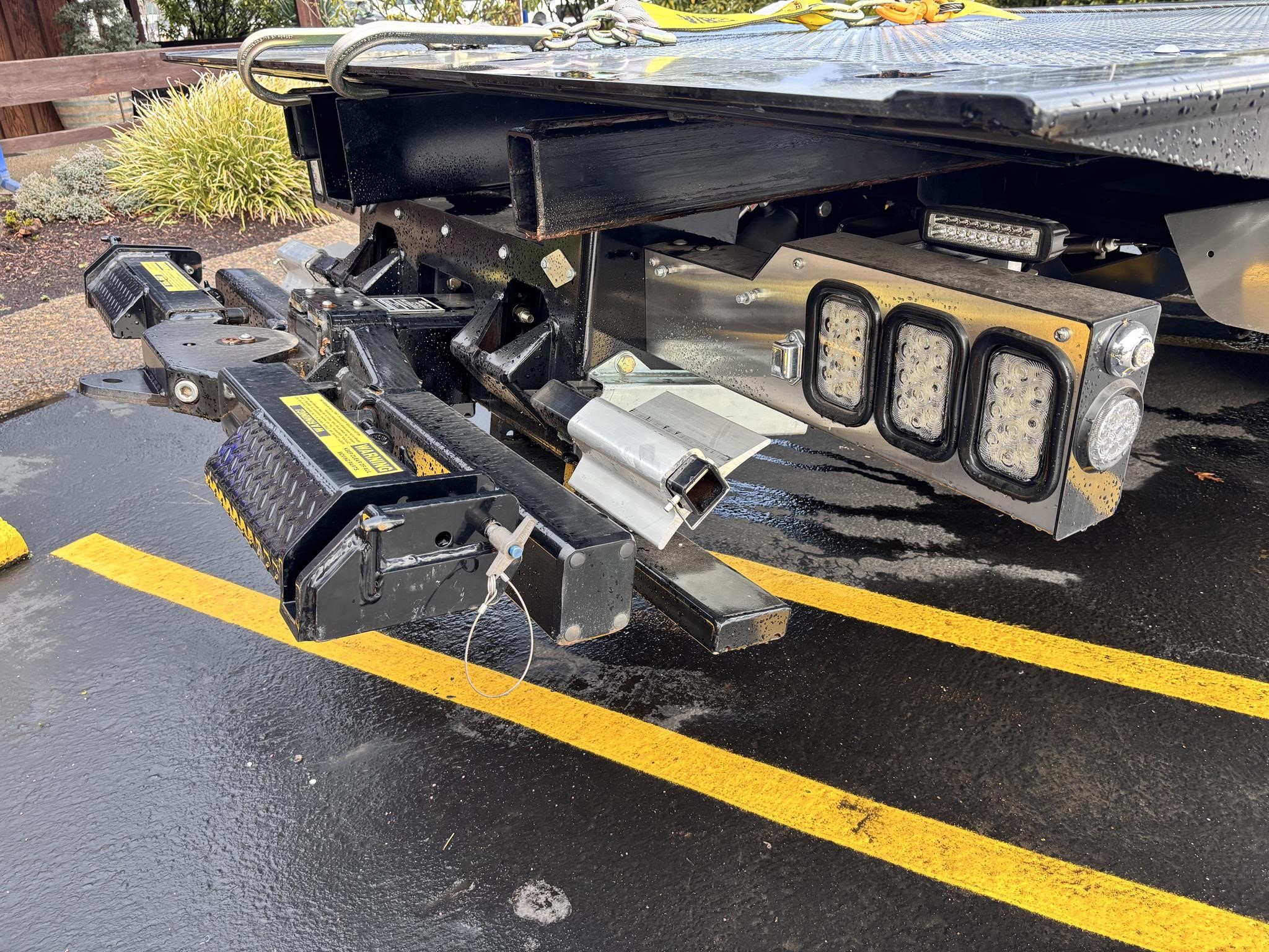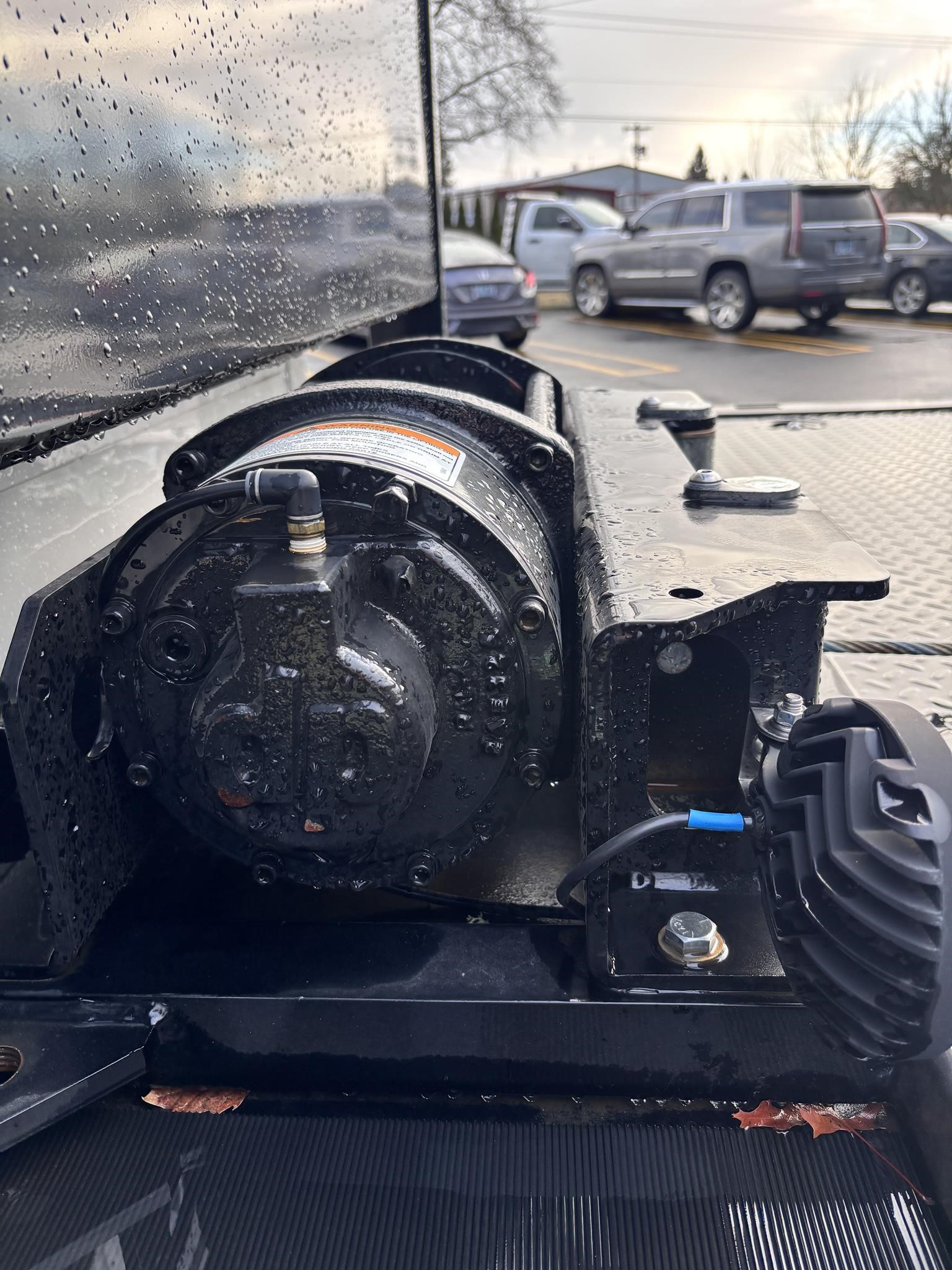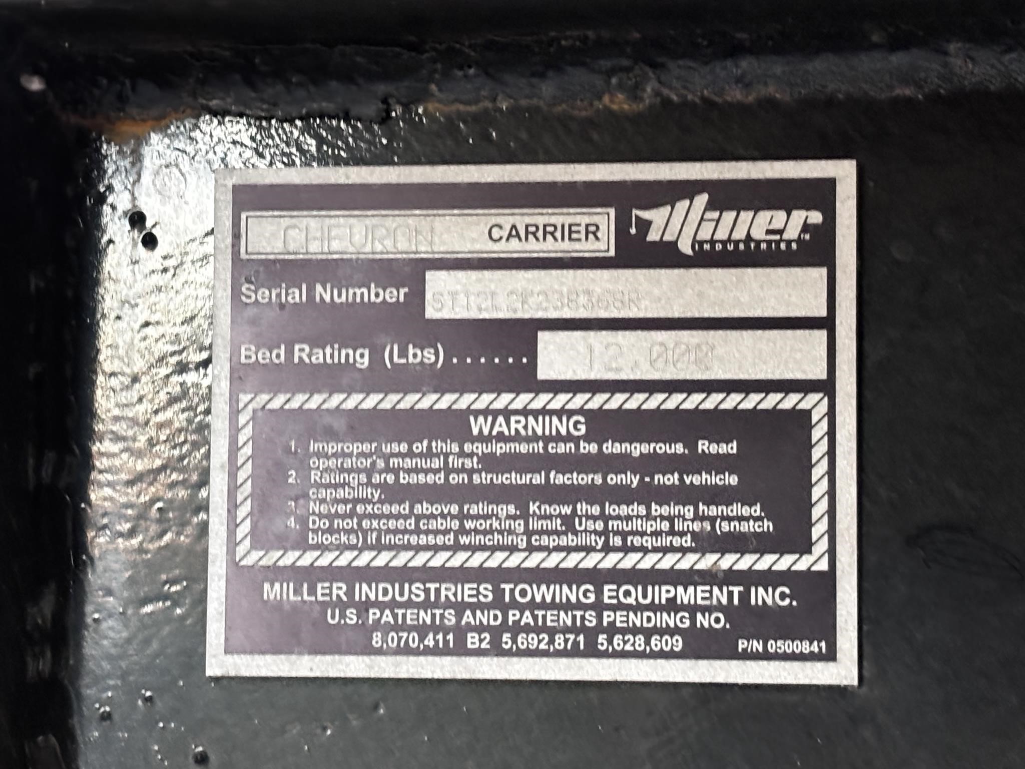 Chevron 22' Steel LCG (Low Center of Gravity) Carrier w/ Wheel Lift, 3/16 Deck Plate, 3x2 Corten Tube Crossmembers on 8 inch Centers, (4) Rear Chain Locks, (2) Front Chain Locks, (6) Floor Plate Chain Locks (3 per side), 8,000lb Worm Gear Winch, 3/8" x 50' Winch Cable, Illuminated Dual Controls, FMVSS 108 Lamp Group Shock Mounted Lighted, Direct Mount Pump, Cable Roller Guide w/ Tensioner, Winch Free Spool Extension, Back-Up Alarm, (2) Safety Chains, Mechanical Anti-tilt, Black Body Paint, 102" Wide Body, Inboard Tilt Cylinders, Floor Level Roll Formed w/ Punched Stake Pockets, 4,000lb Wheel Lift w/ Releasable L Arms, Fully Hydraulic Wheel Lift, (2) Safety Straps & Ratchets, (2) Rear Safety Chains, Body Lock w/ Nylatron Roller Bearings, & 12,000lb Deck Load Rating. Body Serial# ST12L2K238368