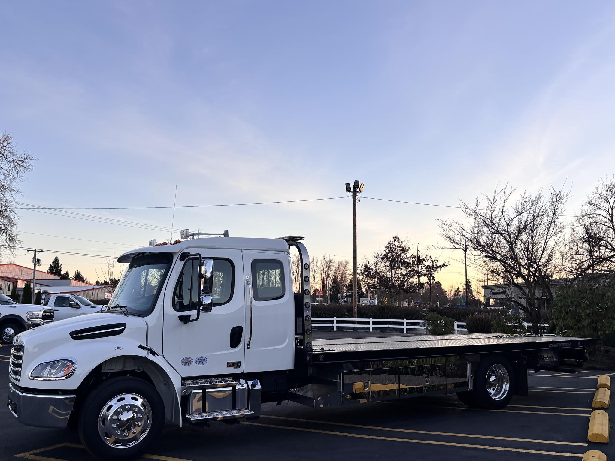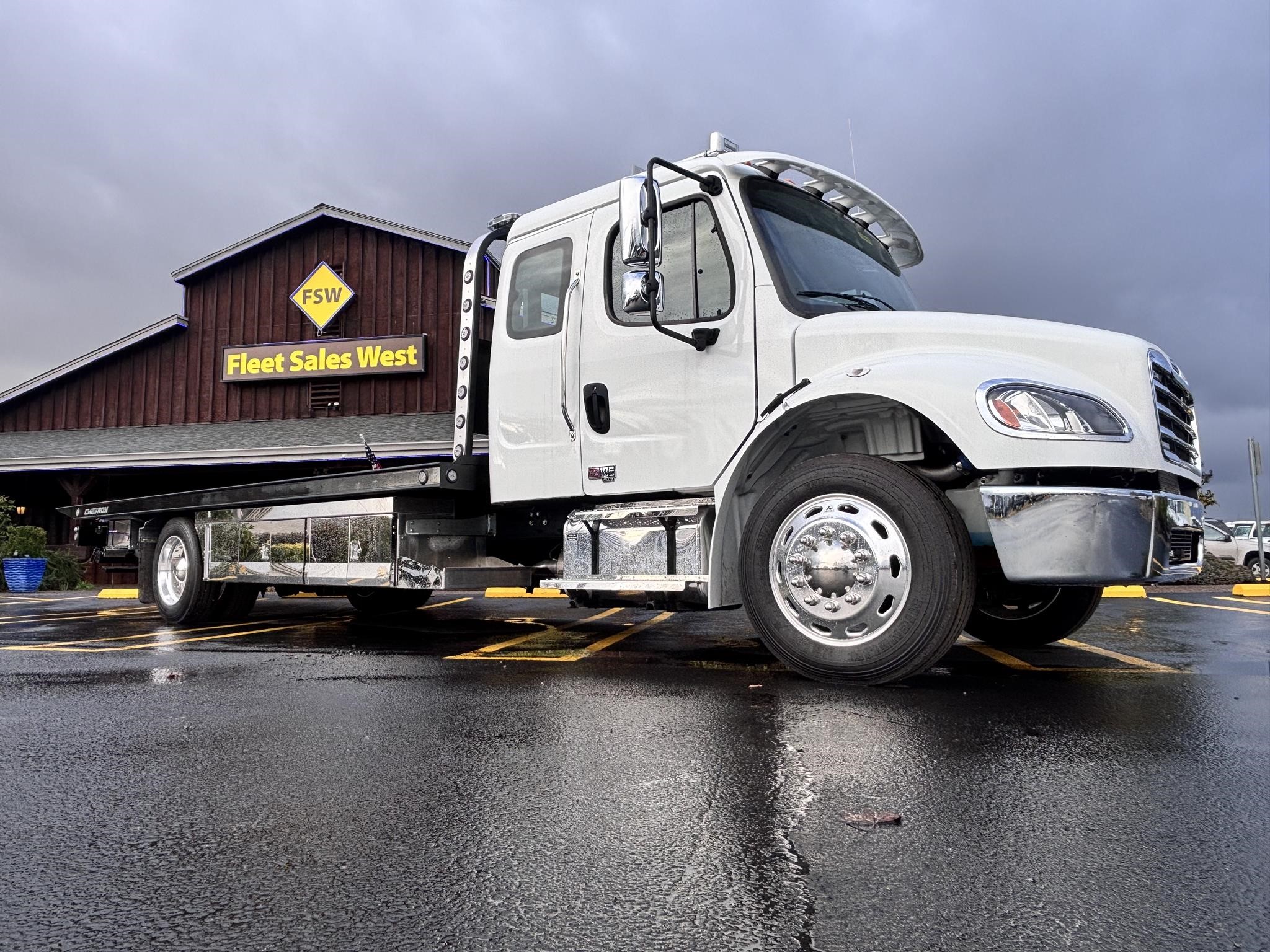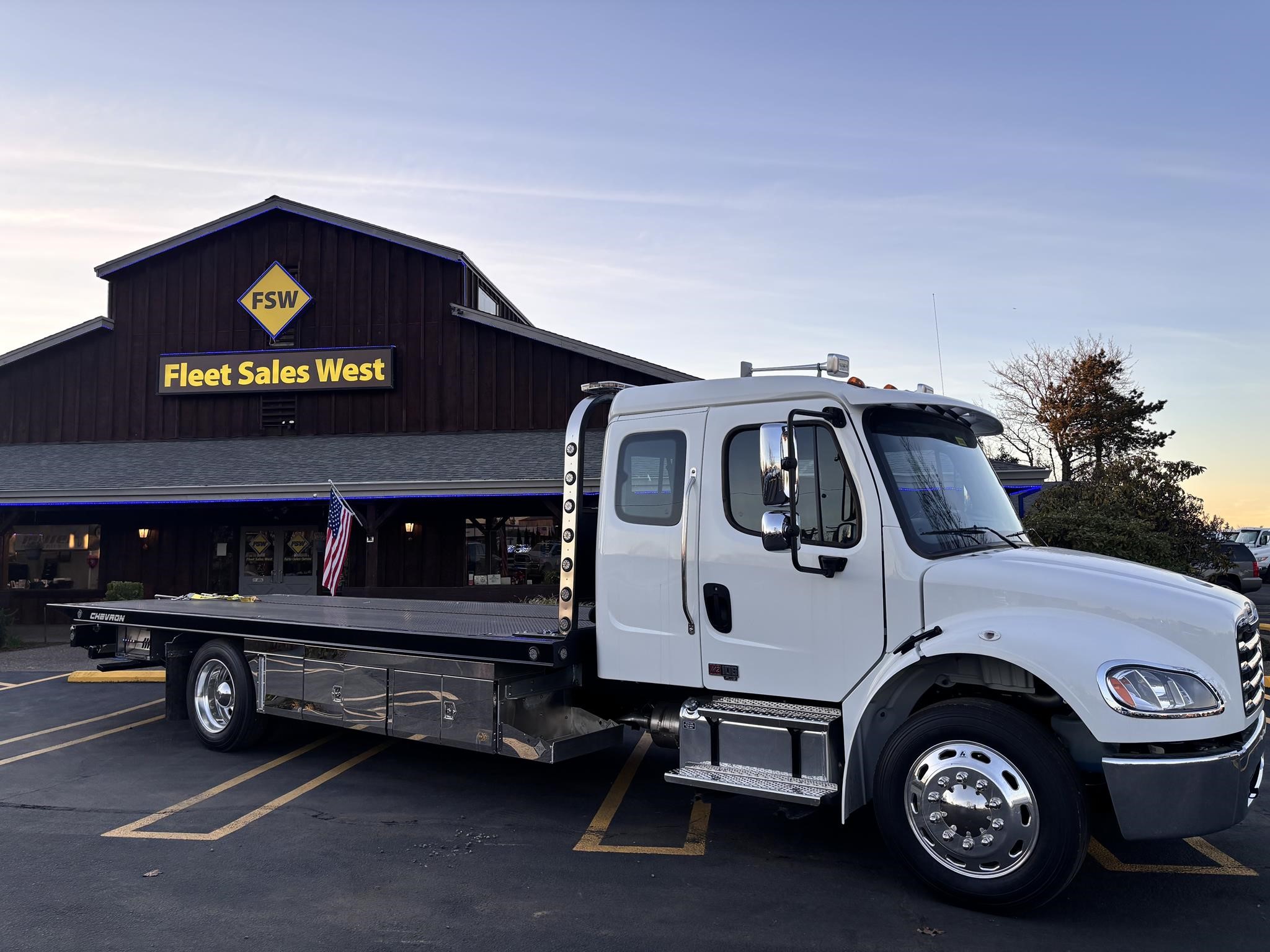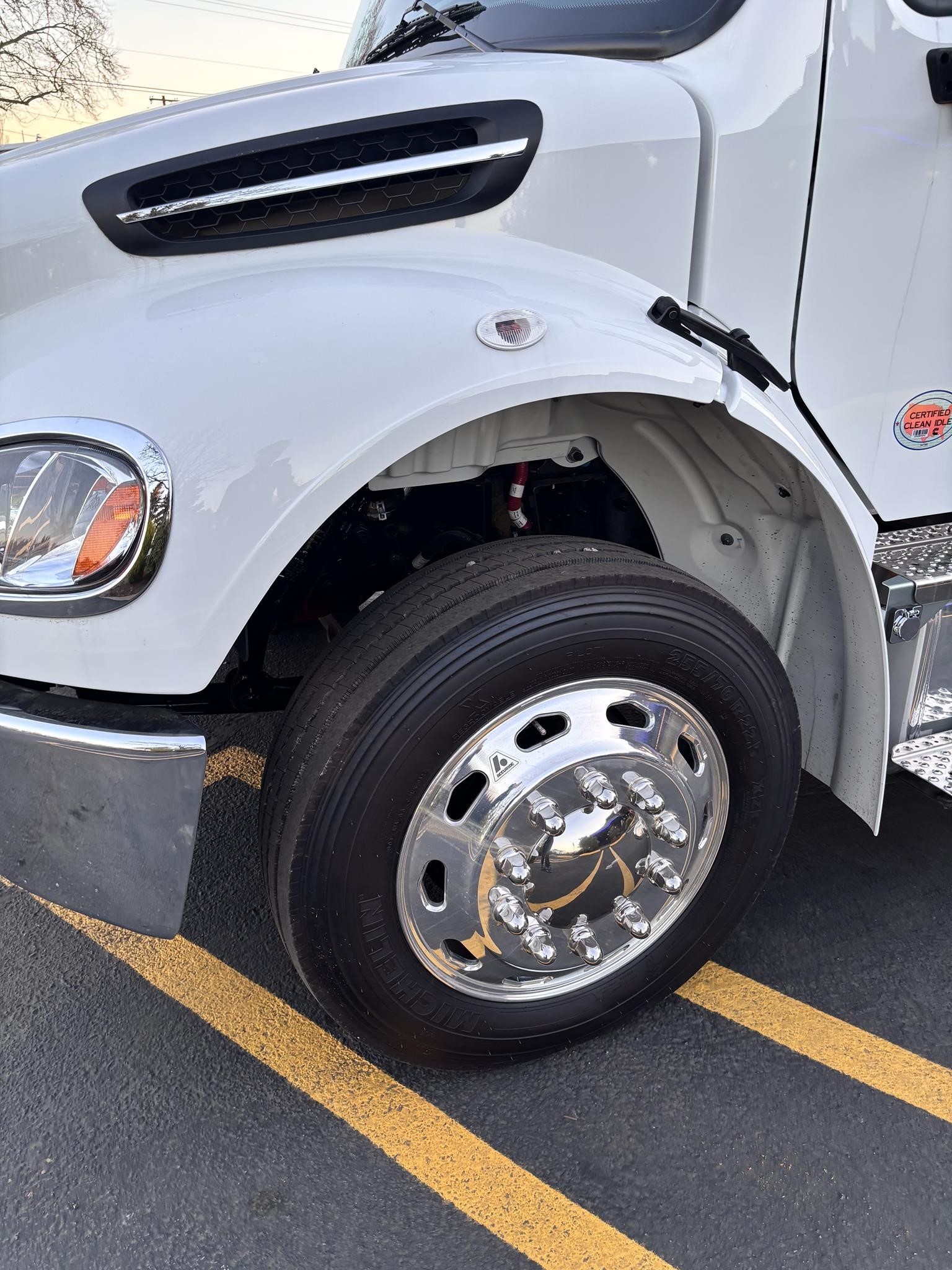M-2 Alum. 132" BBC Cab; Cummins 6.7L Engine 300HP 660lbs Torque. Cummins Exhaust brake.Horton HT650 Frontal Air On/off Engine fan. Clutch. 2100 RDS Automatic Transmission 6 Speed. Phillips-TEMRO 750 Watt/115 Volt block heater. dash Mounted T-Handle Cable Shift Control w/ park brake position. Synthetic Transmission Fluid.Synthetic 75W-90 Front Axle lube 10,000# front suspension. ARS-19.0-2 19,000# R-SERIES single rear axle. 4.88 Rear Axle Ratio.SYNTHETIC 75W-90 rear Axle lube. Airliner 18,000# Rear Suspension. Manual Dump Valve for Air Suspension. - Air brake package. Air Dryer w/Heater. 120KSI (Frame). 50 Gallon/Rectangular fuel tank aluminum: Alliance Fuel filter/Water separator with Primer pump. 255/70R22.5 Tires. Alum. 22.5X8.25 10-Hub pilot disc wheels. Dual West Coast Bright mirrors. 8" bright finish convex mirrors mounted under primary mirrors. Non-operating wing windows. Opal Gray Vinyl Interior. (2) Cup Holders; Heater, Defroster & Air Conditioner. Power windows. Single passenger seat. Air ride driver seat, Rear bench seat. Adjustable Tilt and Telescoping Steering Column. (6) IGN Controlled Extra Switches to junction block AND 1 Circuit at 30 Amp. Windshield Wiper motor with Delay marker light. Switches self-canceling turn signal. Switch with dimmer, Washer/Wiper & Hazard in Handle. Idle up, Cruise control. 22.5 Aluminum wheels 25,500 GVWR.