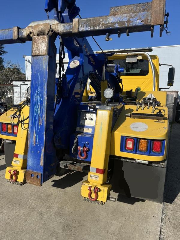 Aluminum modular body sides with two tool compartments each side. Aluminum 28 in. tunnel through box with tool compartment lights. Tool compartment door closures on all doors “Warn” 12,000 lb. Planetary winches. 7/16” x 150 ft Cable per Drum. Cable Tensioners. Air Free Spool Winches (2) Switches on the Rear tailboard. 108” CA 6000 lb. L-arms. Elevated fork holders. Wheel straps and ratchets. Safety chain pockets. Safety chains.FMVSS 108 lighting (L.E.D.). Junction box with wire harness; Pilot operated holding valves. Lubrication fittings on all pivot points. Dual rear controls. Rear shackles. Tow light plug. Backup alarm. Mudflaps. 3-inch forks.4-inch forks; Spring shackle adapters. Low-profile offset fork holders. Under lift crossbar extensions. L-Arm Storage Pockets (Slope of Rear Deck). Body width is 96 inches, boom elevation is 41 degrees, boom reach past the tailboard, 71 inches, and under lift reach from tail. board to center of fork; 78.5 inches; Negative tilt range;10 degrees; Control valve; Sectional, 15 GPM, 2200 PSI; Oil reservoir; 13 gallons; Oil filters (2); 15 GPM, 10 Microns; BOOM;Retracted;24,000; Extended;10,000; Winch (1st layer); 12,000; Under lift; Retracted (forks) 9,900 Extended (forks); 7,000; Tow Capacity (rolling) 20,000. Body Serial # 512-0116-C17