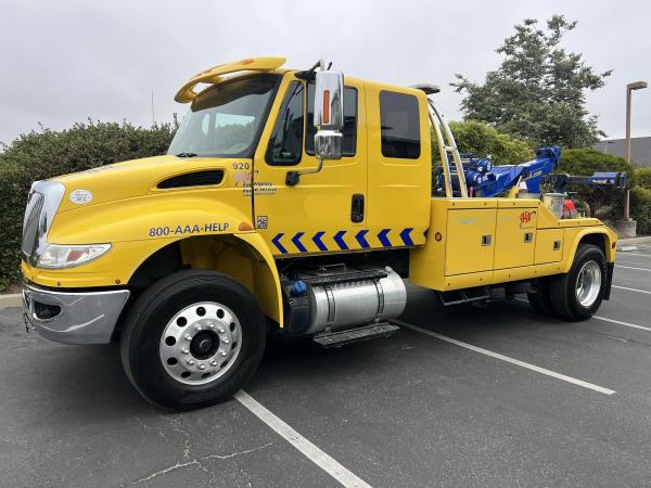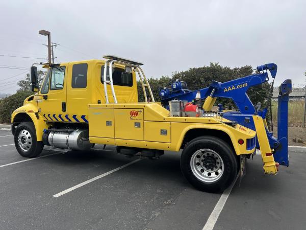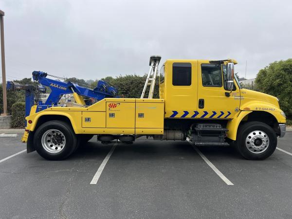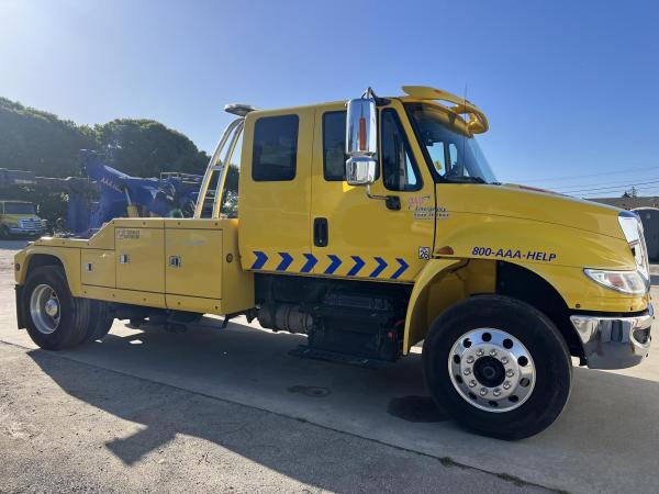 2018 International Model MV Extended cab. Cummins ISB 6.7L, 325 HP @ 2,300 rpm, 750 lb-ft @ 1,600 rpm, Allison RDS-3000 6 Speed Auto, Air Brakes, Air Dryer Heater, Exhaust Brake, Front Axle: Dana-Spicer I-Beam 10,000lb w/ Shock Absorbers, Rear Axle: Dana-Spicer 21,000lb, 23,000lb Air Ride Suspension, 4.88 Rear Axle Ratio, Chrome Bumper, black Grille, Air Ride Driver Seat. High back fixed Passenger Seat, rear bench seat. Idle Up, Cruise Control, Tilt-Wheel, AM/FM/CD/MP3 w/ Bluetooth, Air Horn, Engine Block Heater, 70 Gallon D Tank polished Aluminum Fuel Tank, 7 Gal DEF Tank, Stainless Steps. Power Windows, Power Door Locks, Power Heated Mirrors. A/C, 29580R22.5 Tires w/ 22.5 Alum Wheels, Cup holders.Visor 109" Tractor package, Trailer connections to Rear 7 way. Electric horn, Air horn. Air dyer with heater. Air Ride cab mounts. PTO switch, Auxilary Switches. CA 25,500 GVWRChevron LMD 512 T 12 Ton Integrated Wrecker (Next Generation)
