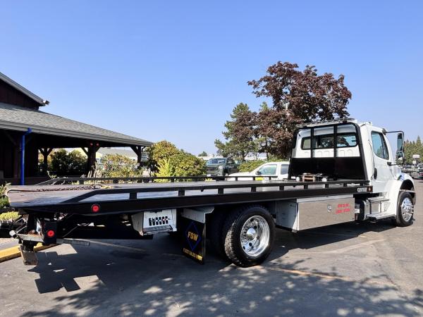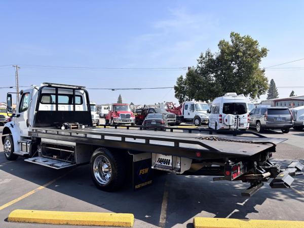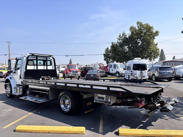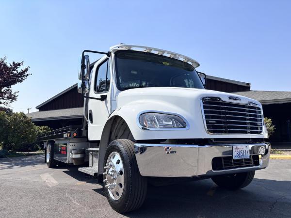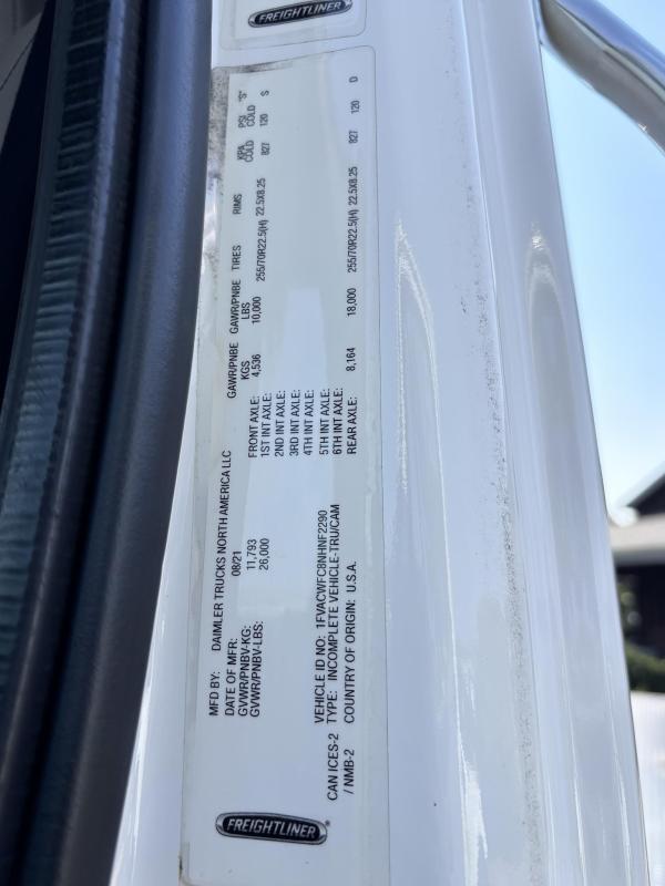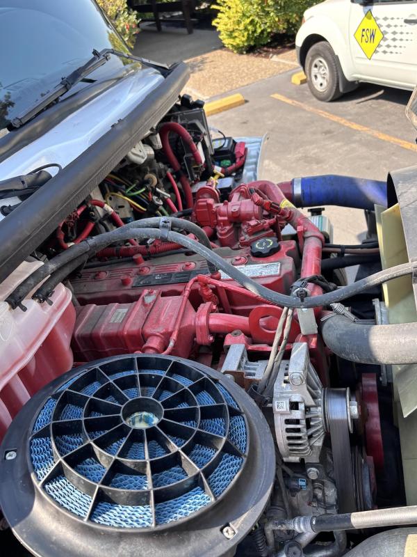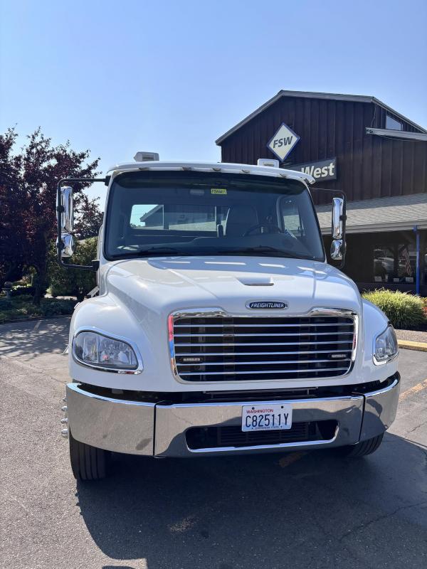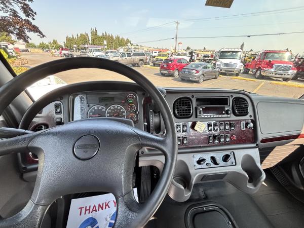 FRTR M-2 260HP Allison Automatic. Air Brake package, 18,000-lb air ride suspension, and Dump valve. Dual 50-gallon tanks. Air Ride Cab. Chrome Bumper 3-piece. Air-ride driver's seat, two-man passenger seat. Power windows, Power locks. Power, Heated Mirrors. Idle up, Cruise control... 8,000lb front Axle. 17,500lb Rear axle. 22.5 255/70R Tires. Visor , Dual 26” Hadley Aur horns. Air ride cab mounts. 25,500 GVWR.Safety Inspection: Front: Left 80% Right 80% Rear: Left 80% Right 80% Tread: Front Tires 12/32 13/32 Rear Tires: 22/32 22/32 - 22/32 22/32