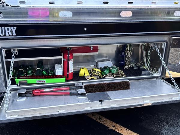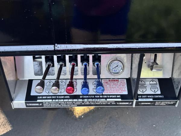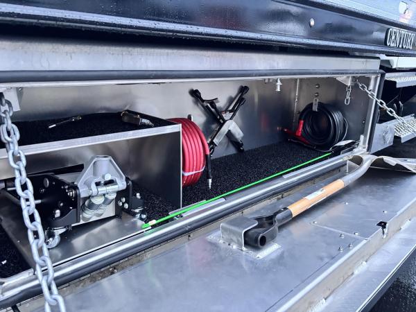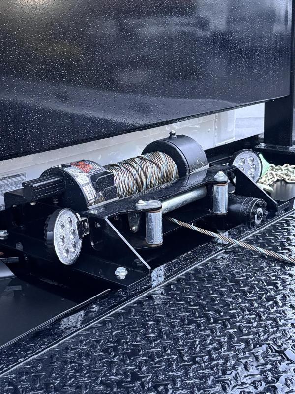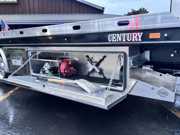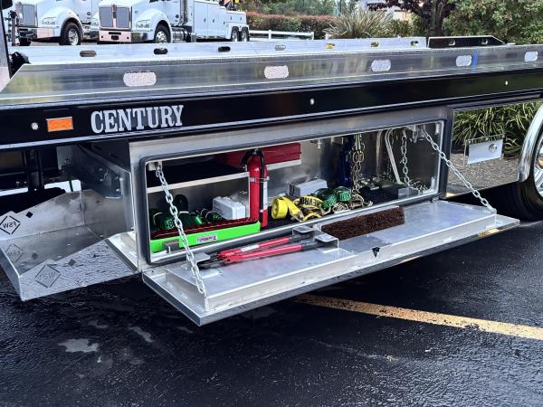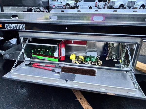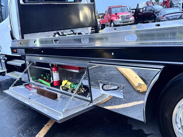 Century 21.5' Steel LCG (Low Center of Gravity) Carrier w/ Wheel Lift, 3/16 Deck Plate, 3x2 Corten Tube Crossmembers on 8 inch Centers, (4) Rear Chain Locks, (2) Front Chain Locks, (6) Floor Plate Chain Locks (3 per side), 8,000lb Worm Gear Winch, 3/8" x 50' Winch Cable, Illuminated Dual Controls, FMVSS 108 Lamp Group Shock Mounted Lighted, Direct Mount Pump, Cable Roller Guide w/ Tensioner, Winch Free Spool Extension, Back-Up Alarm, (2) Safety Chains, Mechanical Anti-tilt, Black Body Paint, 102" Wide Body, Inboard Tilt Cylinders, Floor Level Roll Formed w/ Punched Stake Pockets, 4,000lb Wheel Lift w/ Releasable L Arms, Fully Hydraulic Wheel Lift, (2) Safety Straps & Ratchets, (2) Rear Safety Chains, Body Lock w/ Nylatron Roller Bearings, & 12,000lb Deck Load Rating. Body Serial# ST12L2L238587