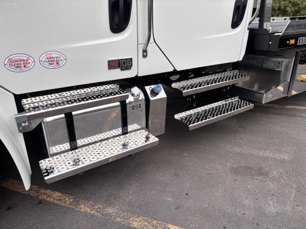 2025 M-2 Alum. 154" BBC Cab; Cummins 6.7L Engine 300HP 660lbs Torque. Cummins Exhaust brake.Horton HT650 Frontal Air On/off Engine fan. Clutch. 2200 RDS Automatic Transmission 6 Speed. Phillips-TEMRO 750 Watt/115 Volt block heater. dash Mounted T-Handle Cable Shift Control w/ park brake position. Synthetic Transmission Fluid.Synthetic 75W-90 Front Axle lube 10,000# front suspension. ARS-19.0-2 19,000# R-SERIES single rear axle. 4.63 Rear Axle Ratio.SYNTHETIC 75W-90 rear Axle lube. Airliner 21,000lb Rear Suspension. Manual Dump Valve for Air Suspension. - Air brake package. Air Dryer w/Heater. 120KSI (Frame). Dual, 50 Gallon/Rectangular fuel tank, aluminum: Alliance Fuel filter/Water separator with Primer pump. 255/70R22.5 Tires. Alum. 22.5X8.25 10-Hub pilot disc wheels. Dual West Coast Bright mirrors. 8" bright finish convex mirrors mounted under primary mirrors. Non-operating wing windows. (2) Cup Holders; Heater, Defroster & Air Conditioner. Power windows. Single passenger seat. Air ride driver seat, Rear bench seat. Adjustable Tilt and Telescoping Steering Column. (6) IGN Controlled Extra Switches to junction block AND 1 Circuit at 30 Amp. Windshield Wiper motor with Delay marker light Switches self-canceling turn signal Switch with dimmer, Washer/Wiper & Hazard in Handle. Idle up, Cruise control. 22.5 Aluminum wheels 25,500 GVWR.Options.. ( Locking Rear Diff.) ( LED POD Headlights) (Cordura Cloth Seat upgrade_) Keyless Entry, Stainless Steps. Diamond plate DEF System cover. Center storage box.. Passenger high-back Air Ride seat with dual armrests.