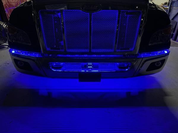 Additional labor for the Show package back lighting, Blue, under pylon, behind grille.