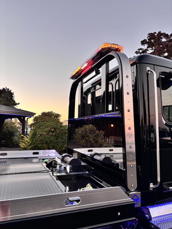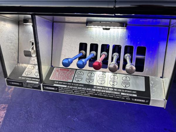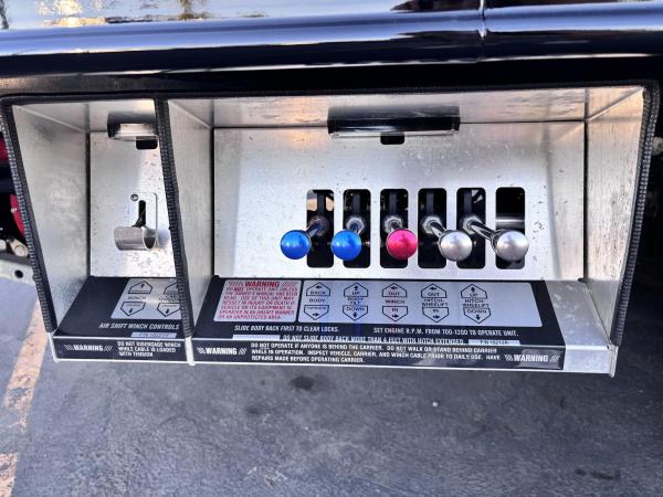 Century 21.5' Steel LCG (Low Center of Gravity) Carrier w/ Wheel Lift, 3/16 Deck Plate, 3x2 Corten Tube Crossmembers on 8 inch Centers, (4) Rear Chain Locks, (2) Front Chain Locks, (6) Floor Plate Chain Locks (3 per side), 8,000lb Worm Gear Winch, 3/8" x 50' Winch Cable, Illuminated Dual Controls, FMVSS 108 Lamp Group Shock Mounted Lighted, Direct Mount Pump, Cable Roller Guide w/ Tensioner, Winch Free Spool Extension, Back-Up Alarm, (2) Safety Chains, Mechanical Anti-tilt, Black Body Paint, 102" Wide Body, Inboard Tilt Cylinders, Floor Level Roll Formed w/ Punched Stake Pockets, 4,000lb Wheel Lift w/ Releasable L Arms, Fully Hydraulic Wheel Lift, (2) Safety Straps & Ratchets, (2) Rear Safety Chains, Body Lock w/ Nylatron Roller Bearings, & 12,000lb Deck Load Rating. Body Serial#