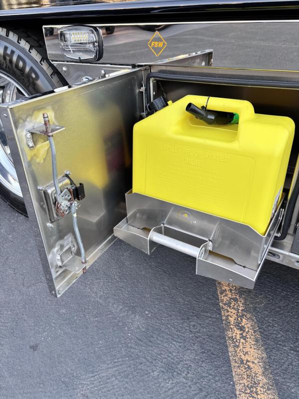 B/M: Fuel Can Rack, 2-Can, Aluminum, behind toolboxes