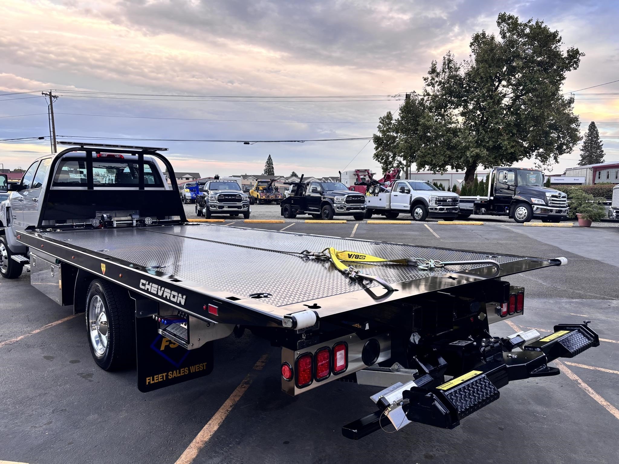 Chevron 19.6' Body Length steel carrier w/wheel lift w/ L-arms, full-length nyltron wear pads, (2) 3" lift cylinders, one extension cylinder, right and left chain trays, positive bed lock down system, 8,000# winch, winch roller guides, cable tensioner, left and right illuminated controls, back up lights, Federal standard 108 lighting, back up alarm, wheel lift safety pin, safety chains, 3000 psi operating system, 1080 square inches of slide pad, full length sub frame. LED Body lights. Body Serial # ST10C2B250939