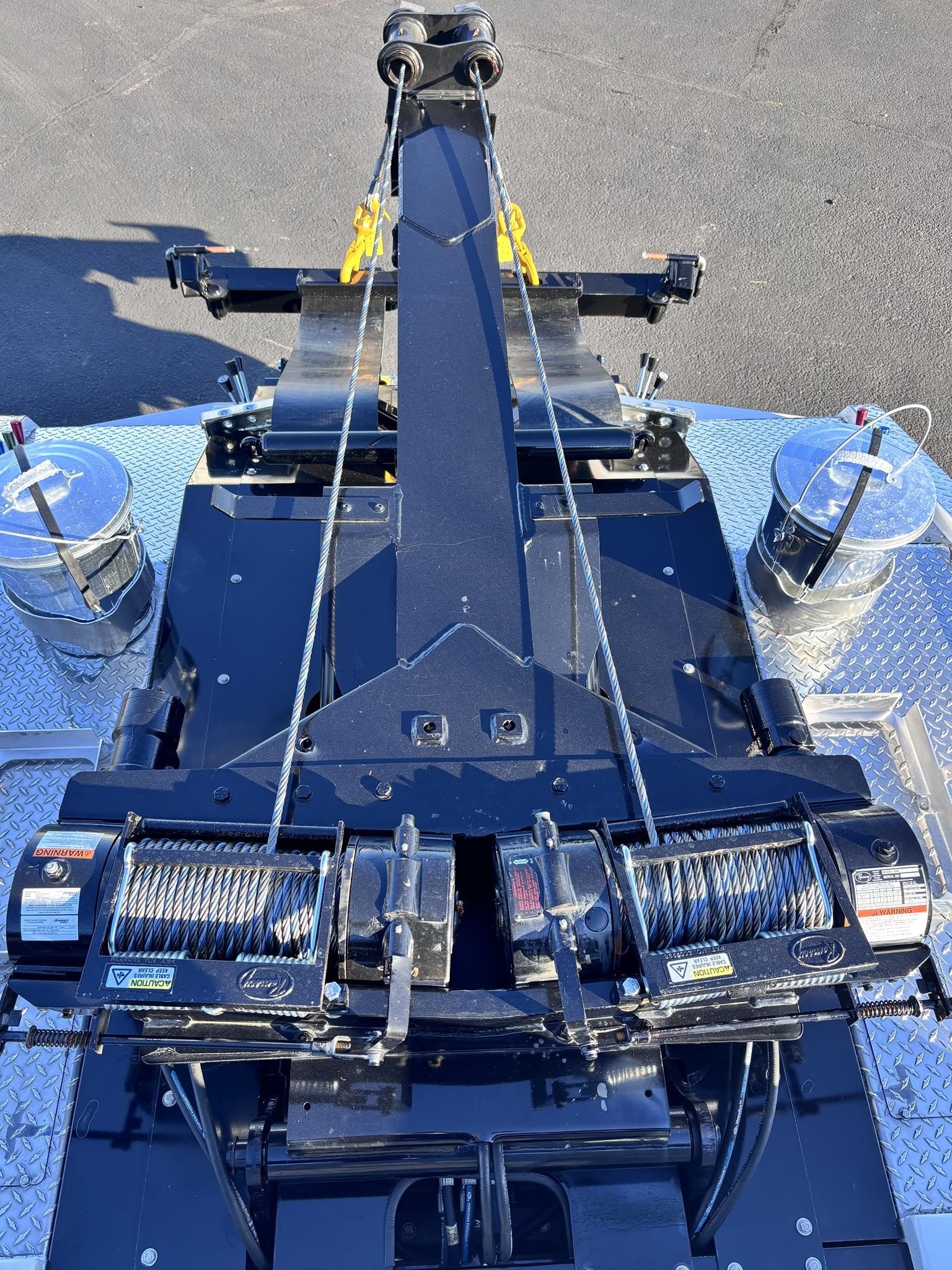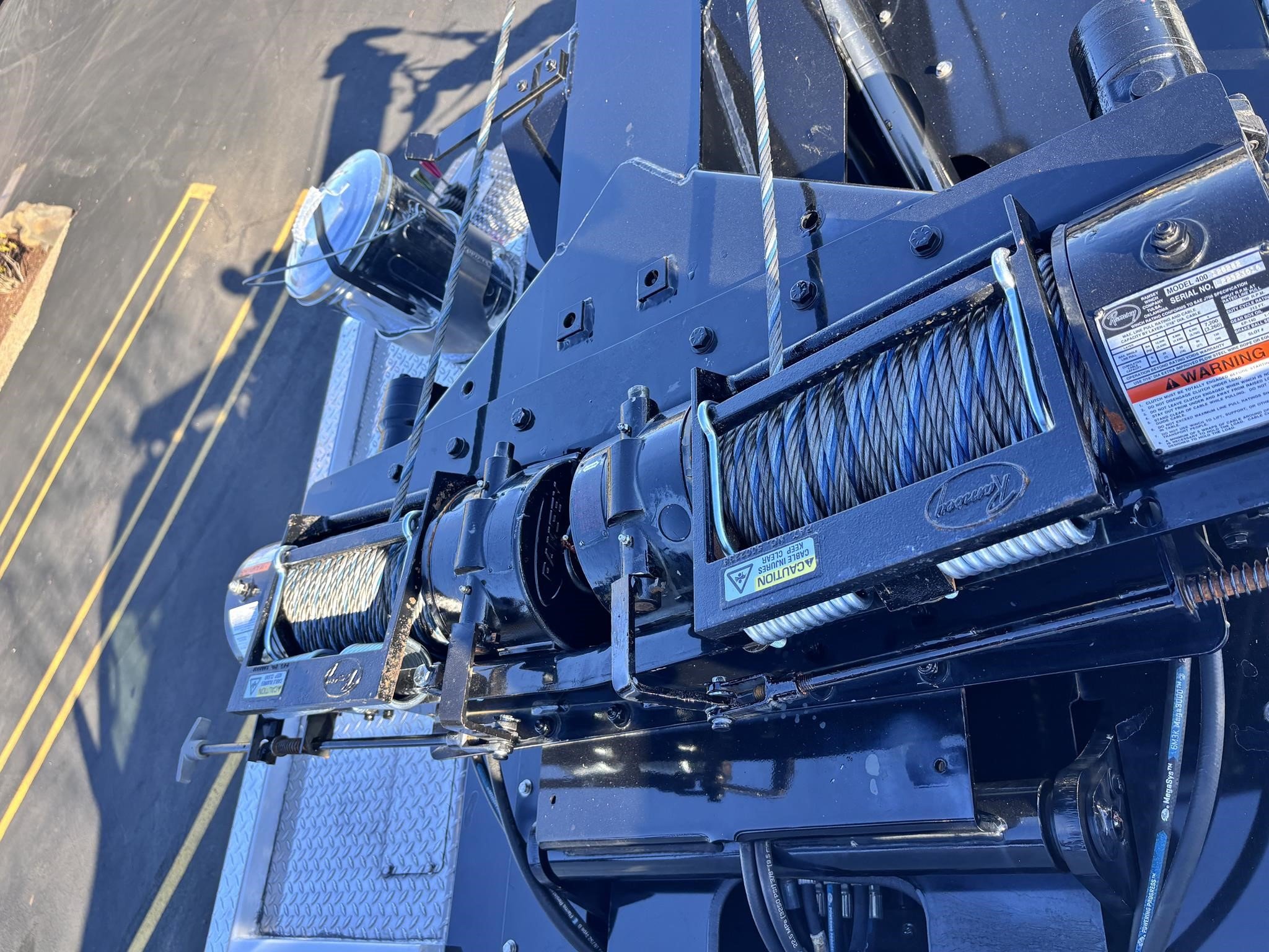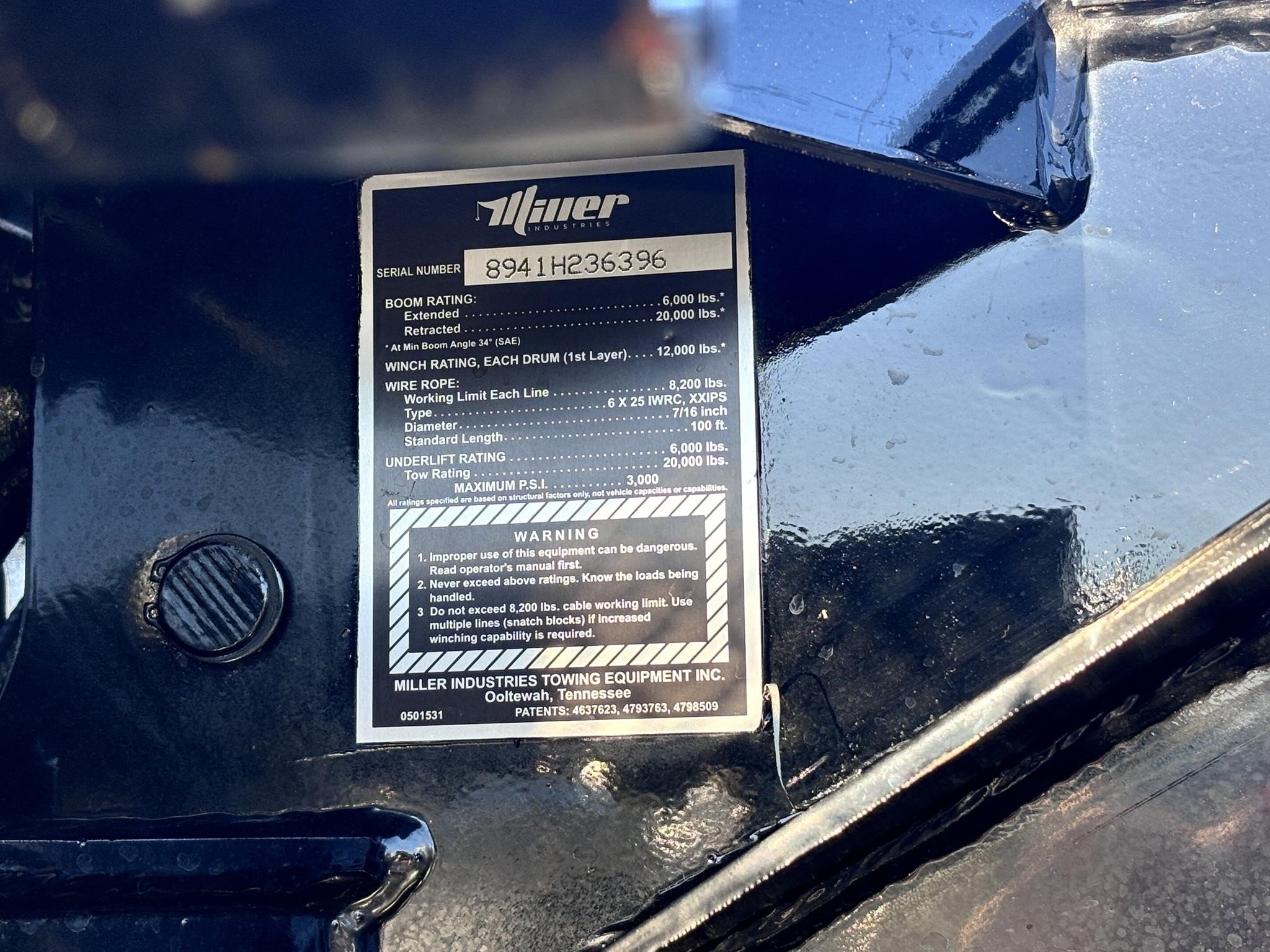Vulcan Model 894. 10-ton Hydraulic Recovery boom. With Dual 12,000lb hydraulic winches 150 ft. winch cable (894) 360-degree directional boom end swivels Power boom elevation with holding valve. Power boom extension, Lubrication fittings on all shafts and other moving parts 90" wide, low profile body 9" sills Two rear-tie back loops, Dual control stations 3" lift forks and fork holders Backup alarm. Vulcan Scoops System Driver and passenger side tool compartments. Federal standard #108 lighting Wiring harness with junction box, Hydraulic pump Safety chains with built-in pockets EZ service hydraulic filter, Spring-loaded winch clutch releases. Split Dual Boom & Wheel Lift Controls, Wheelift/underlift.. 5,000 lb Wheel Retainers. Tailboard Safety Chain Pockets. Wheel Lift Safety Chains - 5/16, Grade 70. Winch Cable Tensioner(s) & Free Spool Handles. 1 Set of 3” Low Profile Frame Forks and Holders. 9,000 lbs on Frame Forks, Retracted. Serial # 8941H236396