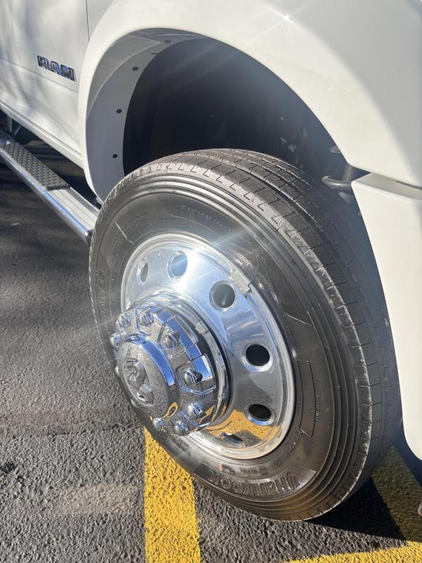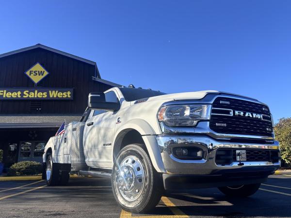 NOT CALIFORNIA COMPLIANT 4x4RAM 5500 SLT Reg Cab w/ Cummins 6.7L I-6 OHV Direct Diesel Injection, 24 Valve Intercooled Turbo, 325HP @ 3,000 rpm, 750 lb-ft @ 1,600 rpm, 136 amp Alternator, 6 Speed Automatic Aisin AS68RC, Exhaust brake. Engine Block Heater, 120" CA, 4 Wheel Disc Brakes w/ Front and rear Vented Discs, Non-Independent Front Suspension, Rear Leaf Suspension, 4 Wheel Anti-Lock Braking System, Daytime Running Lights, Dual Air Bags, A/C, 5" Touch Screen AM/FM/CD Radio, Cruise Control, Power Windows, Power Door Locks, 40-20-40 Split Bench Seat, Vinyl Black Material, Upfitter Switches (5). 19,500 GVWR, Chrome Cab Steps, 22 Gal Fuel Tank, 225/70R19.5 Tires w/ 19.5 Aluminum wheels 4x4 Package Transfer case Skid plate shield, shift on the fly, Block heater.