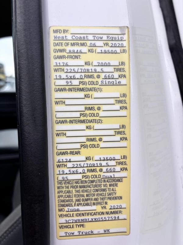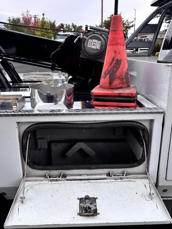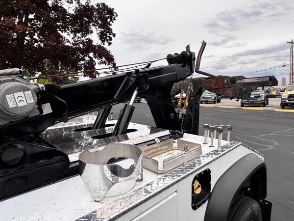 Chevron 408TA G2 "Renegade" Extendable boom. 8-ton. Integrated Boom, Wheel Lift, (2) Safety Straps, (2) Side Entry Tool Boxes, Rear Snatch Block Anchors, FMVSS 108 Lamp Group, Safety Chain Pockets, (2) Safety Chains, Back Up Alarm, Auto Grip II Wheel Lift System, Single 9,000lb Planetary "Warn" Winch w/ 3/8" x 100' Cable, Cable Tensioner, & Dual Control Stations. FMVS 108 Lamp Group. Two two-light plug. Mudflap brackets. Control station labels. Chain pockets. Straps for wheel lift. Body serial # 408TA0979G19