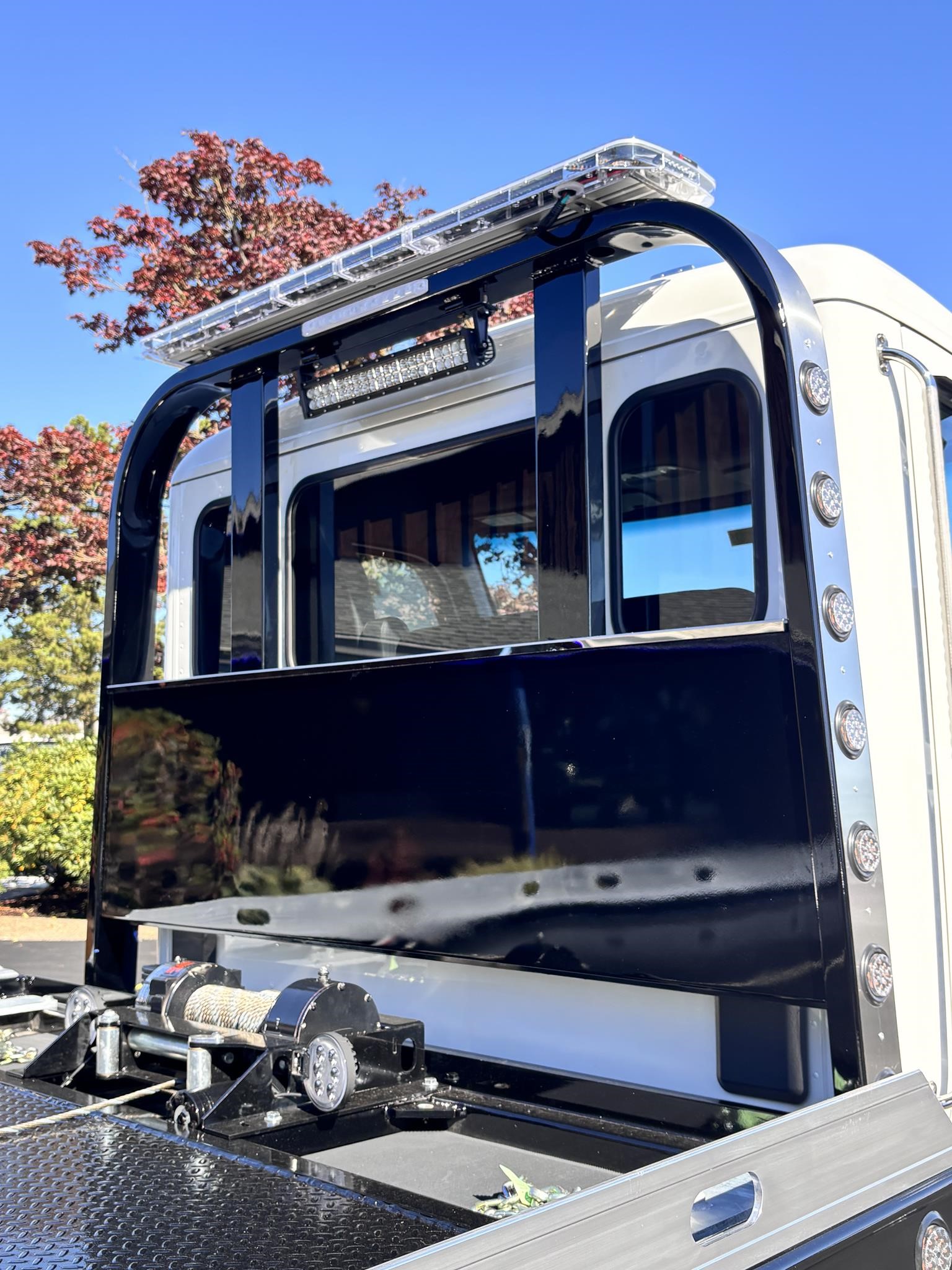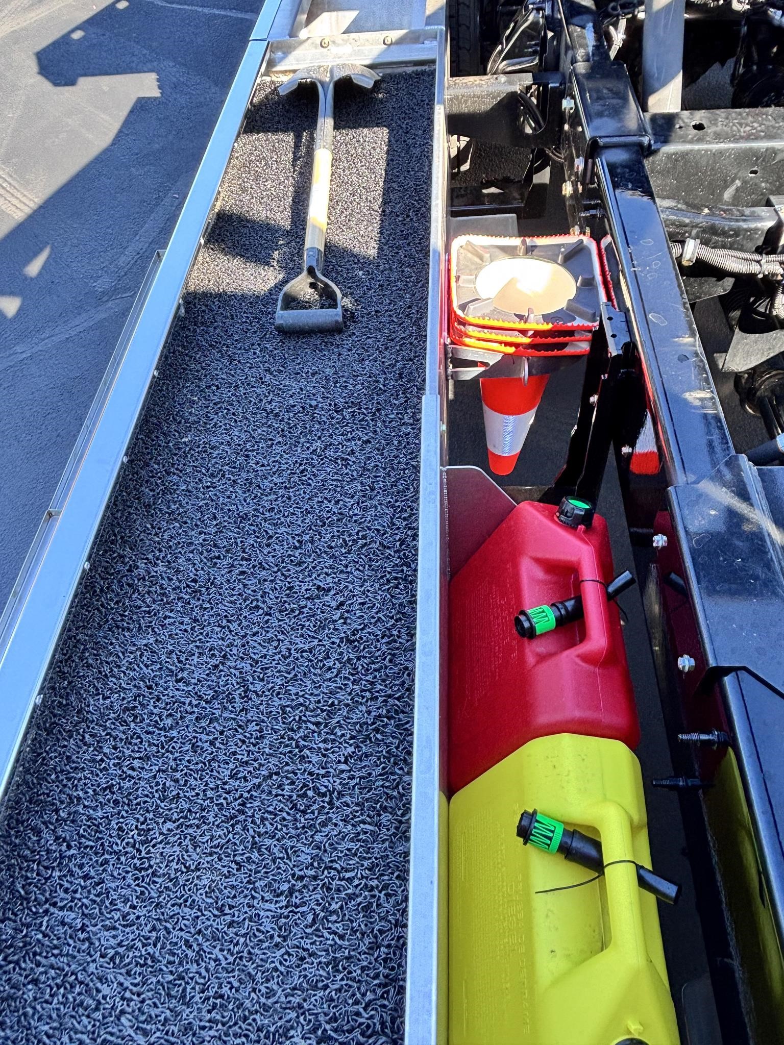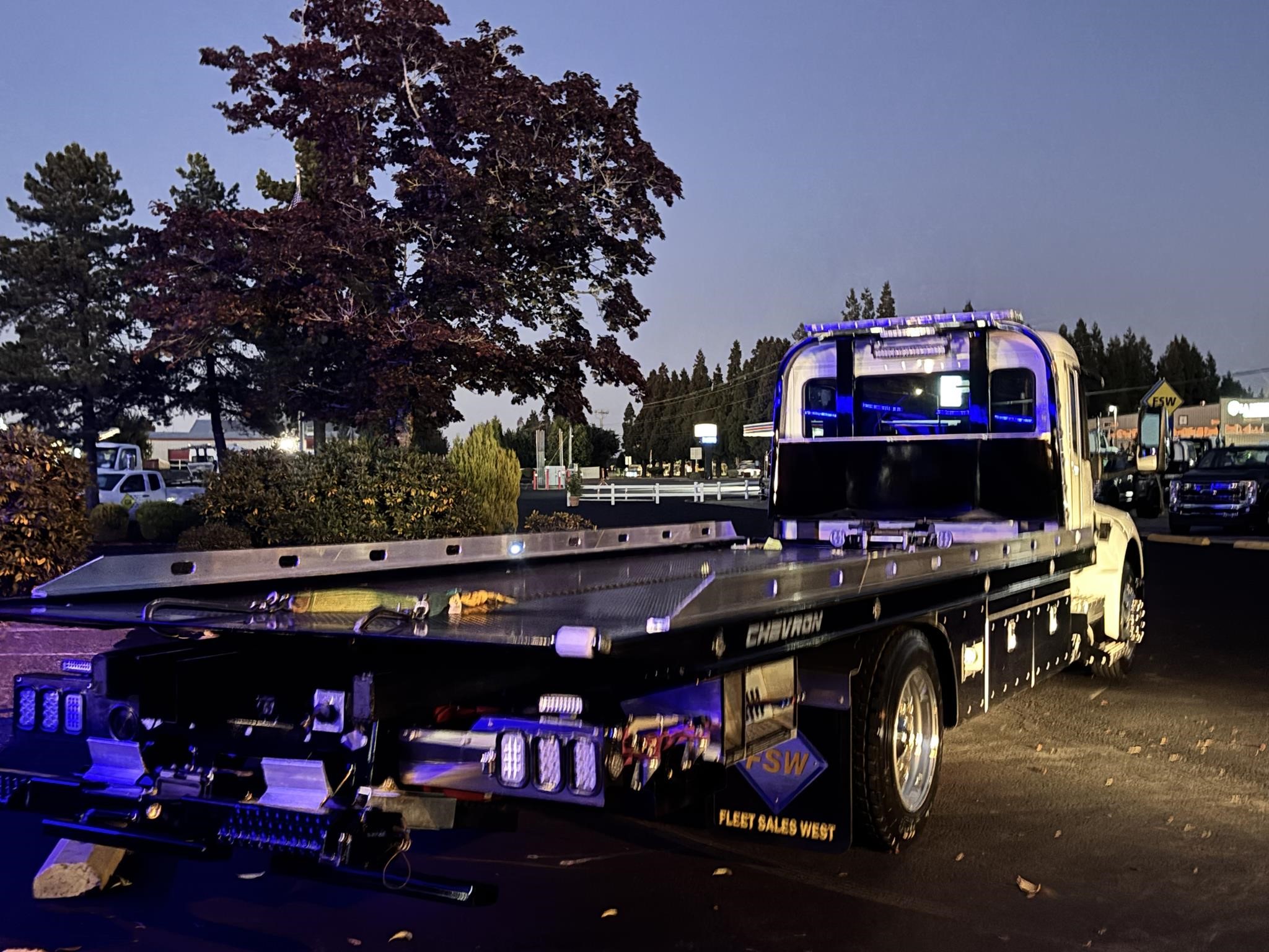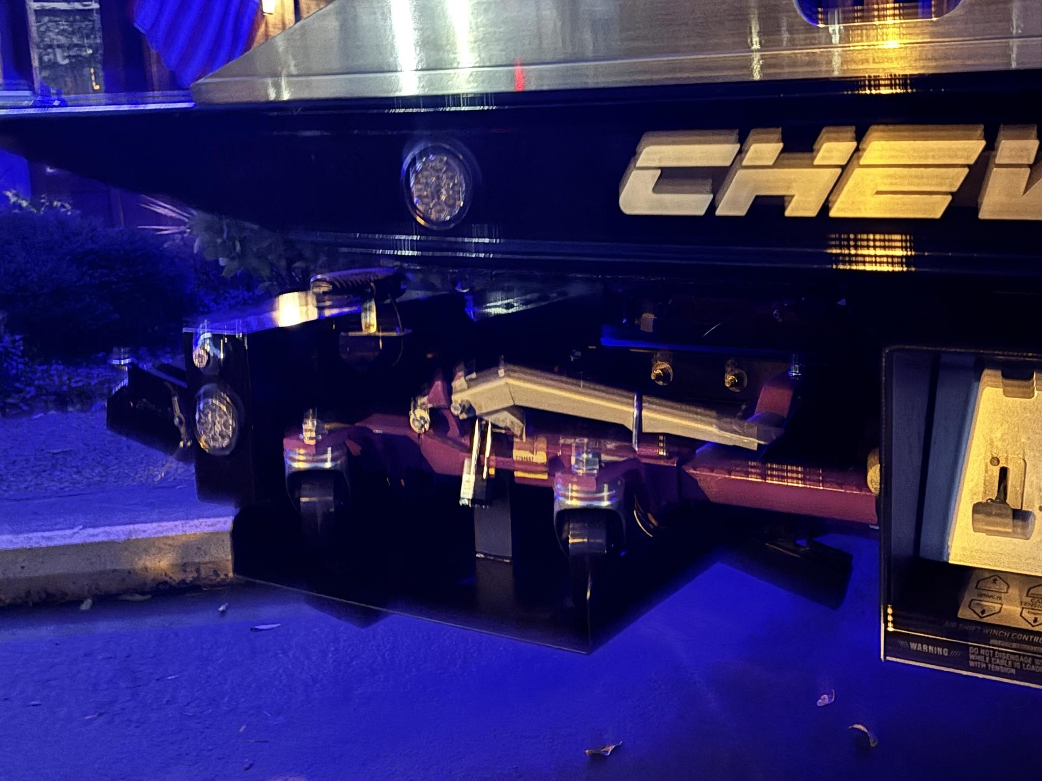 Chevron 21.5' Steel LCG (Low Center of Gravity) Carrier w/ Wheel Lift, 3/16 Deck Plate, 3x2 Corten Tube Crossmembers on 8 inch Centers, (4) Rear Chain Locks, (2) Front Chain Locks, (6) Floor Plate Chain Locks (3 per side), 8,000lb Worm Gear Winch, 3/8" x 50' Winch Cable, Illuminated Dual Controls, FMVSS 108 Lamp Group Shock Mounted Lighted, Direct Mount Pump, Cable Roller Guide w/ Tensioner, Winch Free Spool Extension, Back-Up Alarm, (2) Safety Chains, Mechanical Anti-tilt, Black Body Paint, 102" Wide Body, Inboard Tilt Cylinders, Floor Level Roll Formed w/ Punched Stake Pockets, 4,000lb Wheel Lift w/ Releasable L Arms, Fully Hydraulic Wheel Lift, (2) Safety Straps & Ratchets, (2) Rear Safety Chains, Body Lock w/ Nylatron Roller Bearings, & 12,000lb Deck Load Rating. Body Serial#