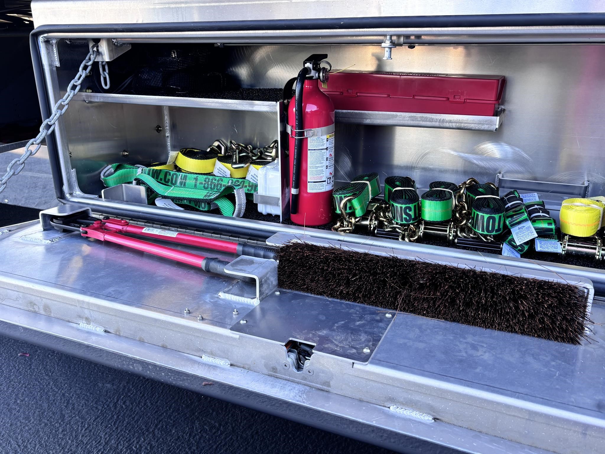 Chevron 21.5' Steel LCG (Low Center of Gravity) Carrier w/ Wheel Lift, 3/16 Deck Plate, 3x2 Corten Tube Crossmembers on 8 inch Centers, (4) Rear Chain Locks, (2) Front Chain Locks, (6) Floor Plate Chain Locks (3 per side), 8,000lb Worm Gear Winch, 3/8" x 50' Winch Cable, Illuminated Dual Controls, FMVSS 108 Lamp Group Shock Mounted Lighted, Direct Mount Pump, Cable Roller Guide w/ Tensioner, Winch Free Spool Extension, Back-Up Alarm, (2) Safety Chains, Mechanical Anti-tilt, Black Body Paint, 102" Wide Body, Inboard Tilt Cylinders, Floor Level Roll Formed w/ Punched Stake Pockets, 4,000lb Wheel Lift w/ Releasable L Arms, Fully Hydraulic Wheel Lift, (2) Safety Straps & Ratchets, (2) Rear Safety Chains, Body Lock w/ Nylatron Roller Bearings, & 12,000lb Deck Load Rating. Body Serial# ST12L2C242047