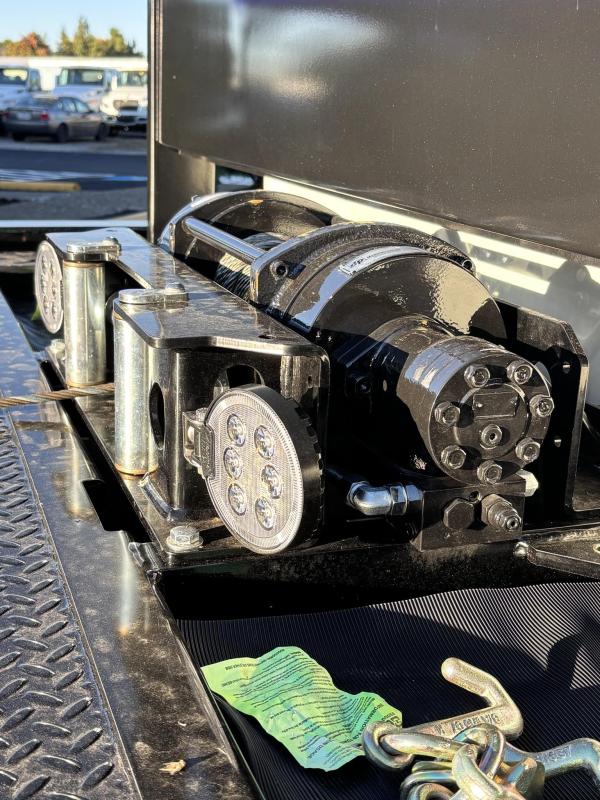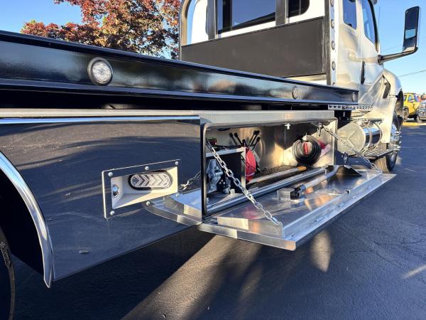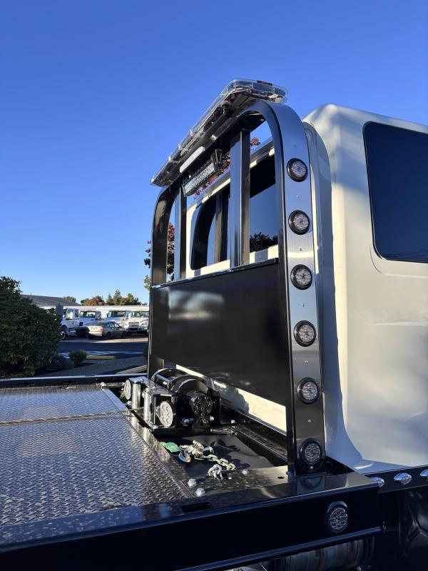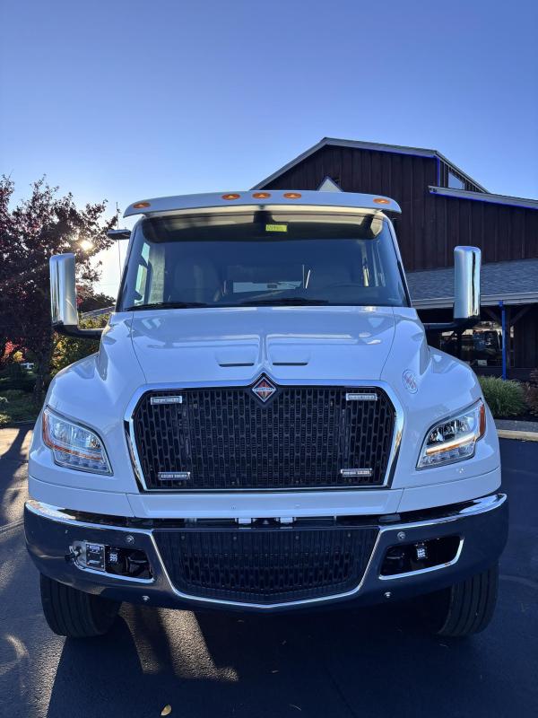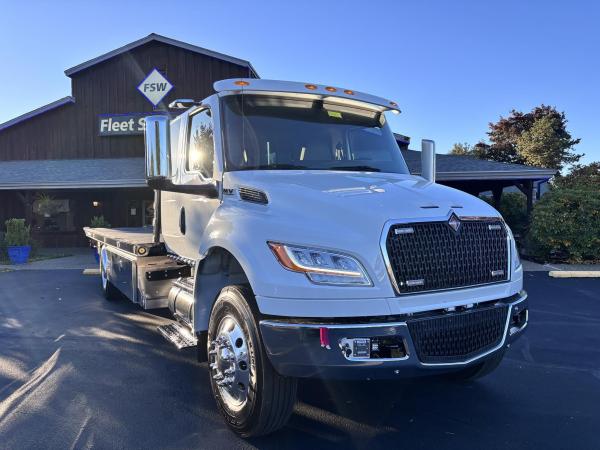 2025 MV EC 325HP 750lbs Torque. RDS - 3000 HD 6-speed. Wing Dash Option,Locking rear differential. Dual 40.50 Aluminum tanks. Air ride Cab mounts. ,10,000lb front axle. 20,000lb Rear axle. 4.88 Ratio. 20,000lb Rear Air Suspension with Dump valve.Gauge for Air Suspension. Dual 40-50 Aluminum tanks, Polished. SEATS Driver & Passenger, {National 2000} Air Suspension, Hi Back, Leather Facing/Vinyl Boxing, 1 Inboard Arm Rest, Isolator, 3 Chamber Lumbar, 6 Way Front Adjust, 3 Way Rear Cushion Adjust, -3 to 14 Degree Back Angle Adjustment, Adj Side Bolster, Vinyl Suspension Cover, Heated. Rear Bench seat - Vinyl. Heated, Power Mirrors. Air Ride cab Mounts. Keyless entry, Power Windows, Power locks. Visor, Air Dryer with heater. battery disconect switch, PTO Switch, Aux Switches. Switch Marker lights interupter, Idle up, leather wrapped steering wheel, Radio AM/FM/WB/Clock/Bluetooth/USB Input/Auxiliary Input 4 speakers.Electric Horn, Cruise control. Block heater, Power Source, additional. Auxiliary Power Outlet (APO) with USB Port, Located in the Instrument Panel Air horn. 25,500 GVWRChevron 21.5' Steel LCG (Low Center of Gravity) Carrier w/ Wheel Lift, 3/16 Deck Plate, 3x2 Corten Tube Crossmembers on 8 inch Centers, (4) Rear Chain Locks, (2) Front Chain Locks, (6) Floor Plate Chain Locks (3 per side), 8,000lb Worm Gear Winch, 3/8" x 50' Winch Cable, Illuminated Dual Controls, FMVSS 108 Lamp Group Shock Mounted Lighted, Direct Mount Pump, Cable Roller Guide w/ Tensioner, Winch Free Spool Extension, Back-Up Alarm, (2) Safety Chains, Mechanical Anti-tilt, Black Body Paint, 102" Wide Body, Inboard Tilt Cylinders, Floor Level Roll Formed w/ Punched Stake Pockets, 4,000lb Wheel Lift w/ Releasable L Arms, Fully Hydraulic Wheel Lift, (2) Safety Straps & Ratchets, (2) Rear Safety Chains, Body Lock w/ Nylatron Roller Bearings, & 12,000lb Deck Load Rating. Body Serial# ST12L2C242047