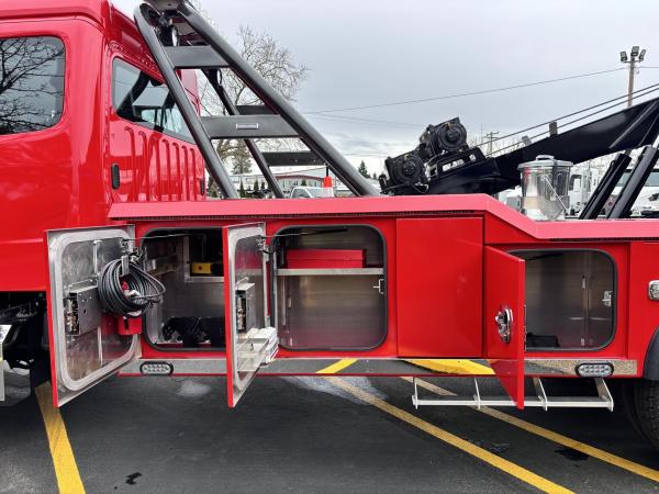 Century 3212 CENTURY MODEL 3212 CX 138" CA Body option. BOOM SPECIFICATIONS; Retracted 32,000 lbs.; Extended 12,000 lbs. Maximum Angle 36° Maximum Hook Height160" Maximum Reach past Tailboard at 30°54" UNDERLIFT SPECIFICATIONS; Fully Retracted (with Forks)12,000 lbs. Fully Extended (with Forks)8,500 lbs. Extended or Retracted with L-Arms6,000 lbs. Underlift Reach to Center of Fork Holder. At Normal Tow Position 84" Positive Tilt20° Negative Tilt10° Tow Rating32,000 lbs. WINCH RATING & CABLE Rating (first layer of drum) each Winch15,000 lbs. Diameter and Length (each winch)1/2" x 150' Type6 x 37 IWRC STANDARD FEATURES 138" Aluminum (LOW PROFILE CX Body) Modular Body. with 3 Compartments Per SideLanyard Controls for Underlift & Boom. on the Passenger Side Manual Control Station on the Drivers SideChrome Double Action Latches. Dual Hydraulic Pump 3 Sets of Lift Forks. Hydraulic Rear Jacks with Flipper FeetRubber Fenderetts. 6,000 lb. L-Arms with Pivoting ReceiversSafety Chains, Door ClosuresTailboard "D" Rings, LED Tool, Compartment LightingFederal Standard 108 Lighting, Cable Tiebacks LED Taillights, Mud Flaps, Clear LED Lights Body. Body Serial # 32121A250213