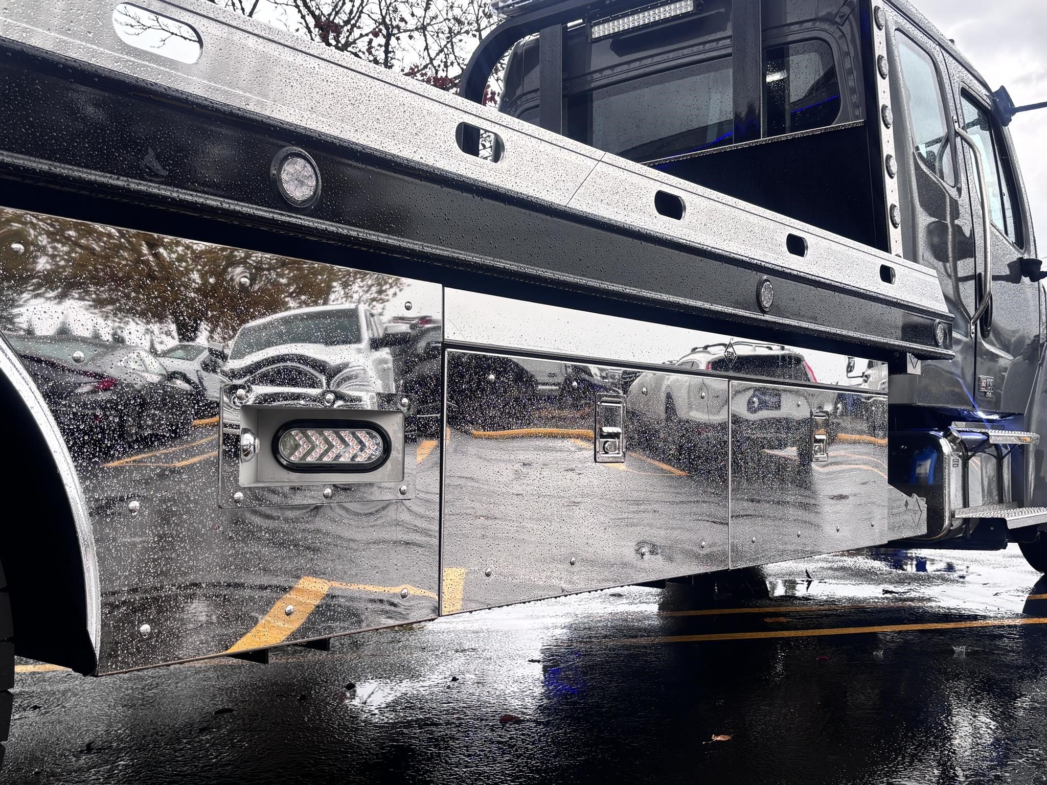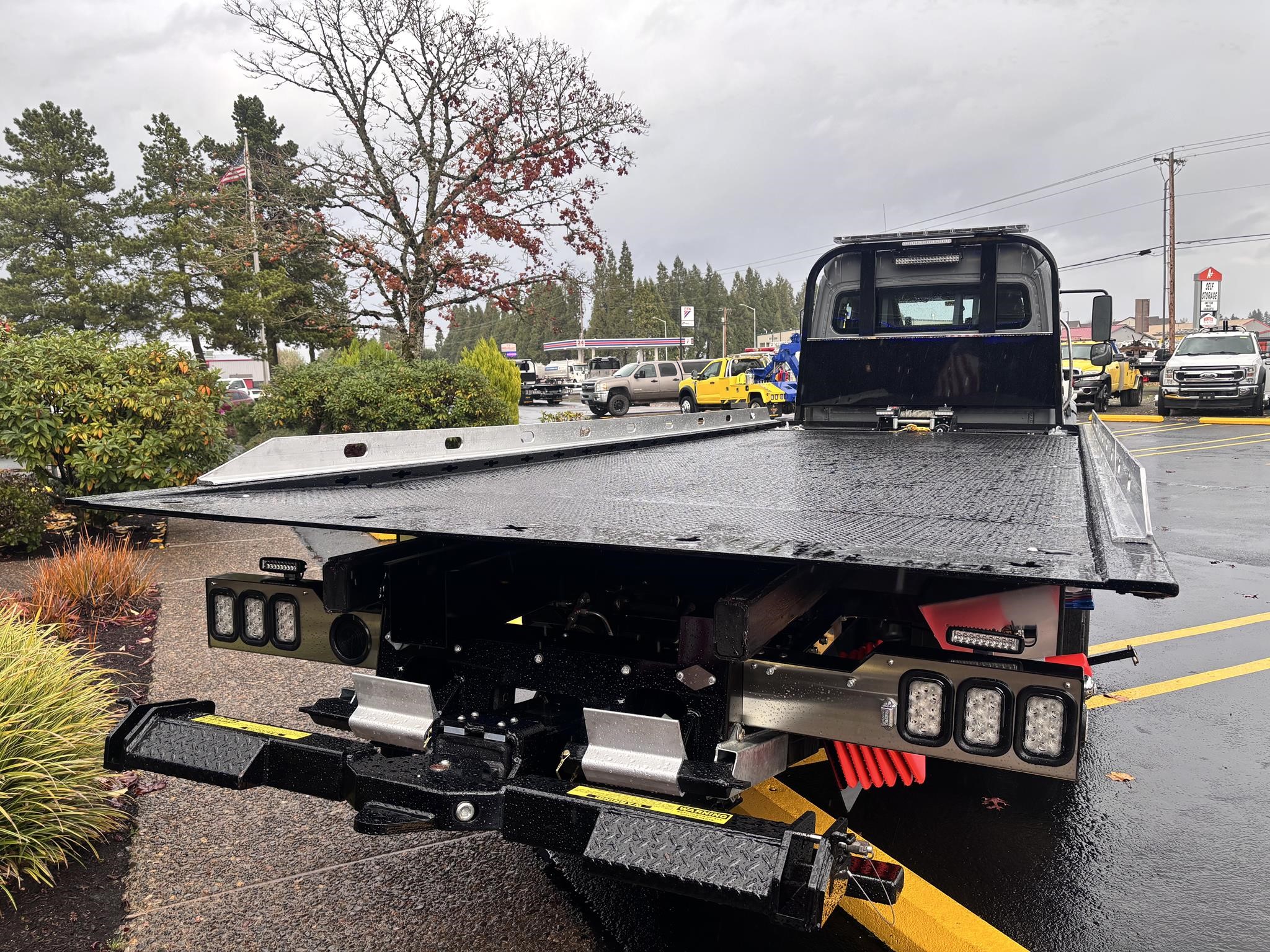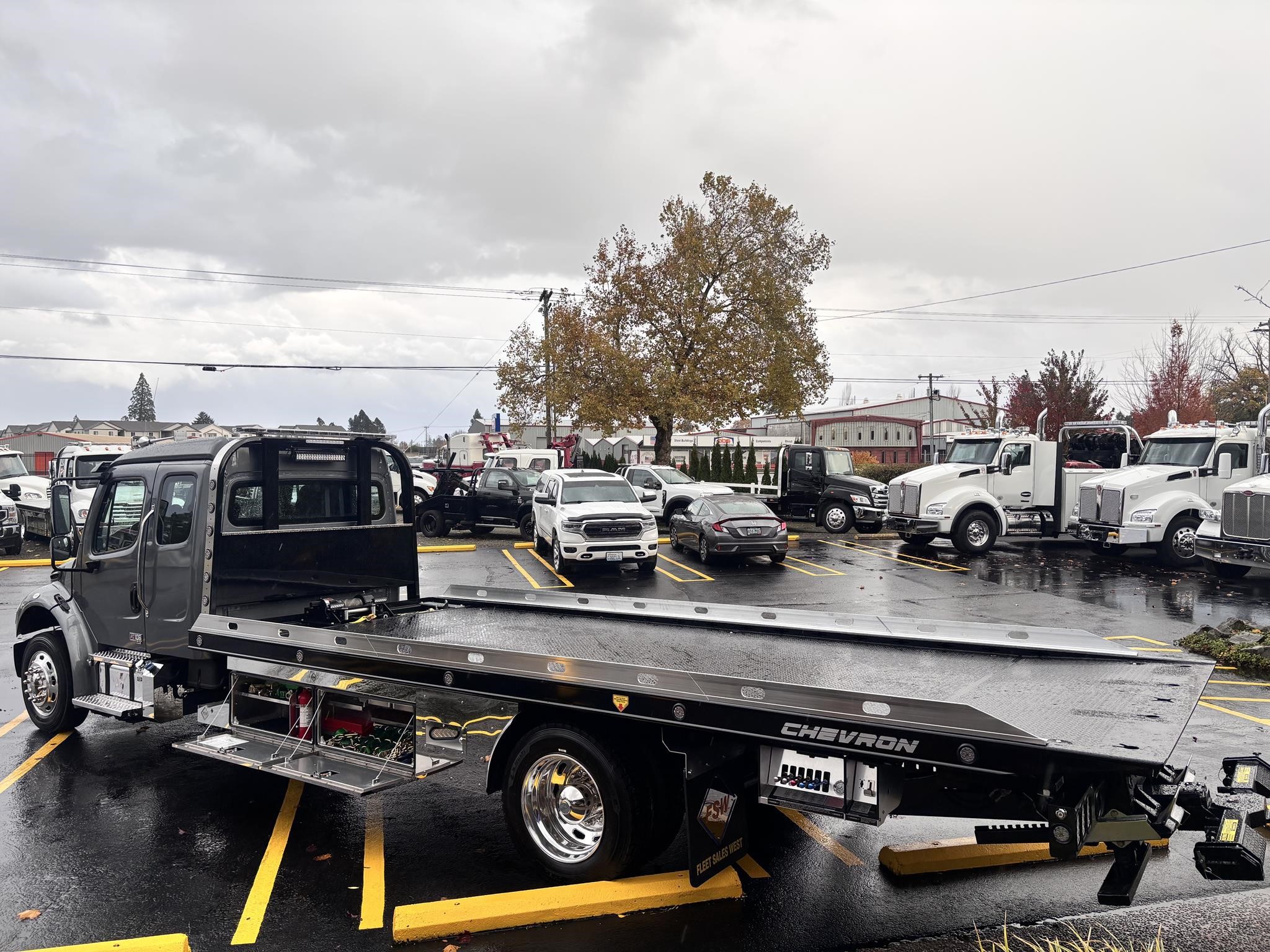 Chevron 21.6' Steel LCG (Low Center of Gravity) Carrier w/ Wheel Lift, 3/16 Deck Plate, 3x2 Corten Tube Crossmembers on 8 inch Centers, (4) Rear Chain Locks, (2) Front Chain Locks, (6) Floor Plate Chain Locks (3 per side), 8,000lb Worm Gear Winch, 3/8" x 50' Winch Cable, Illuminated Dual Controls, FMVSS 108 Lamp Group Shock Mounted Lighted, Direct Mount Pump, Cable Roller Guide w/ Tensioner, Winch Free Spool Extension, Back-Up Alarm, (2) Safety Chains, Mechanical Anti-tilt, Black Body Paint, 102" Wide Body, Inboard Tilt Cylinders, Floor Level Roll Formed w/ Punched Stake Pockets, 4,000lb Wheel Lift w/ Releasable L Arms, Fully Hydraulic Wheel Lift, (2) Safety Straps & Ratchets, (2) Rear Safety Chains, Body Lock w/ Nylatron Roller Bearings, & 12,000lb Deck Load Rating. Body Serial #
