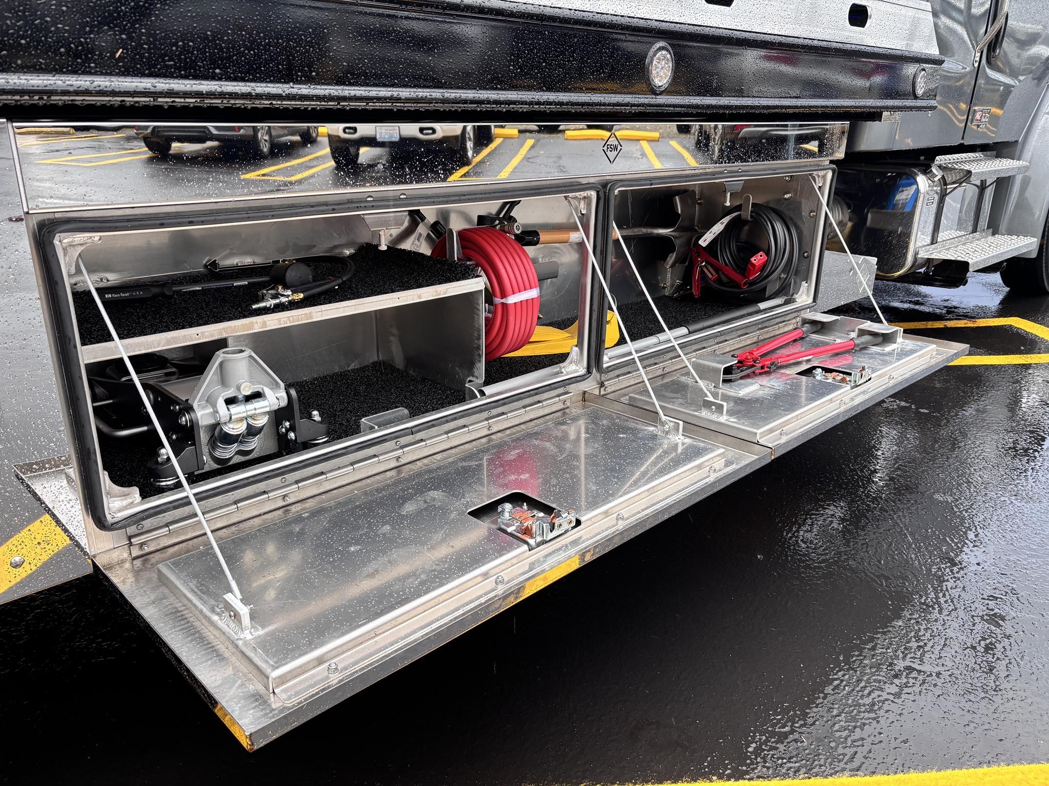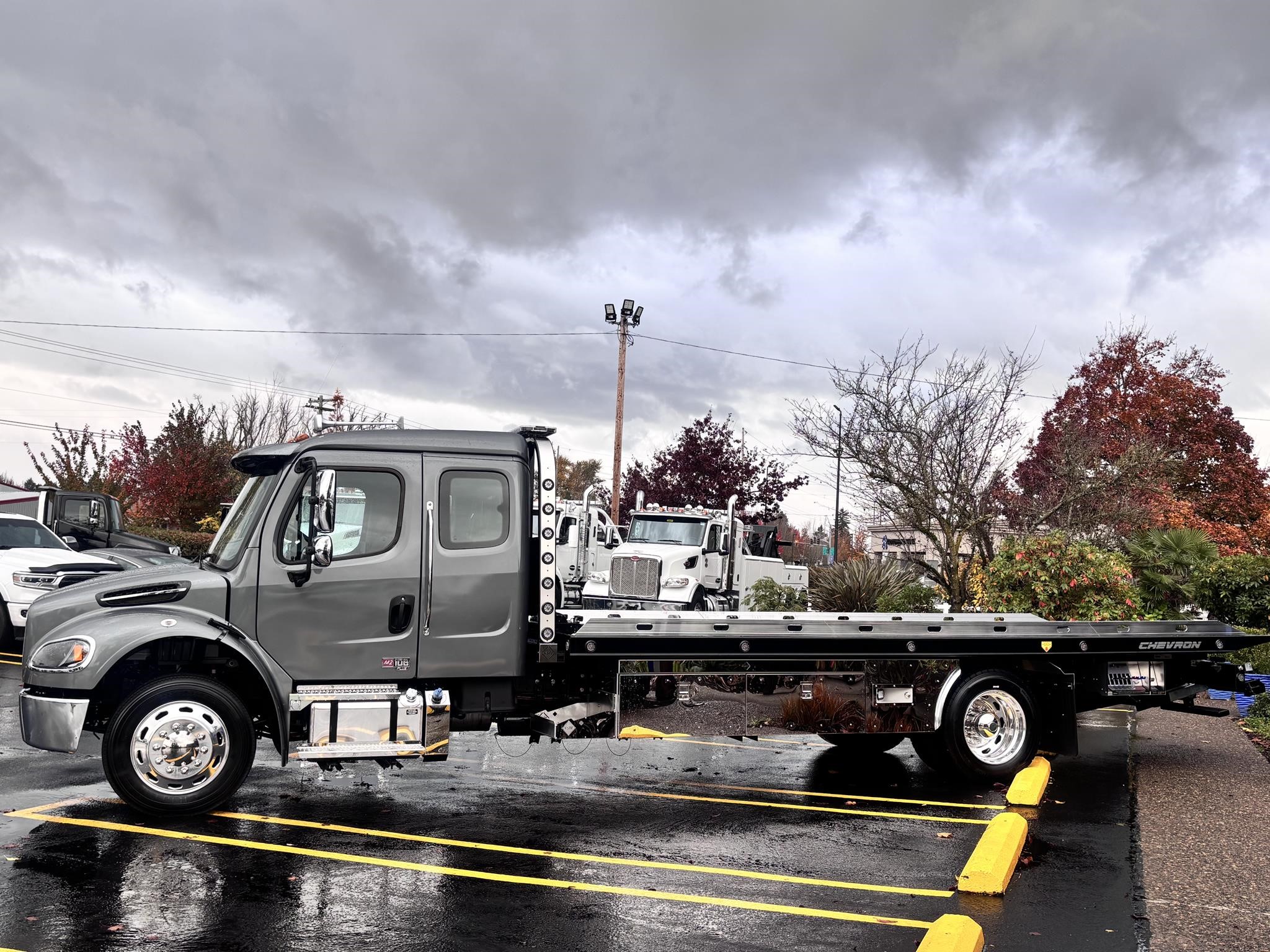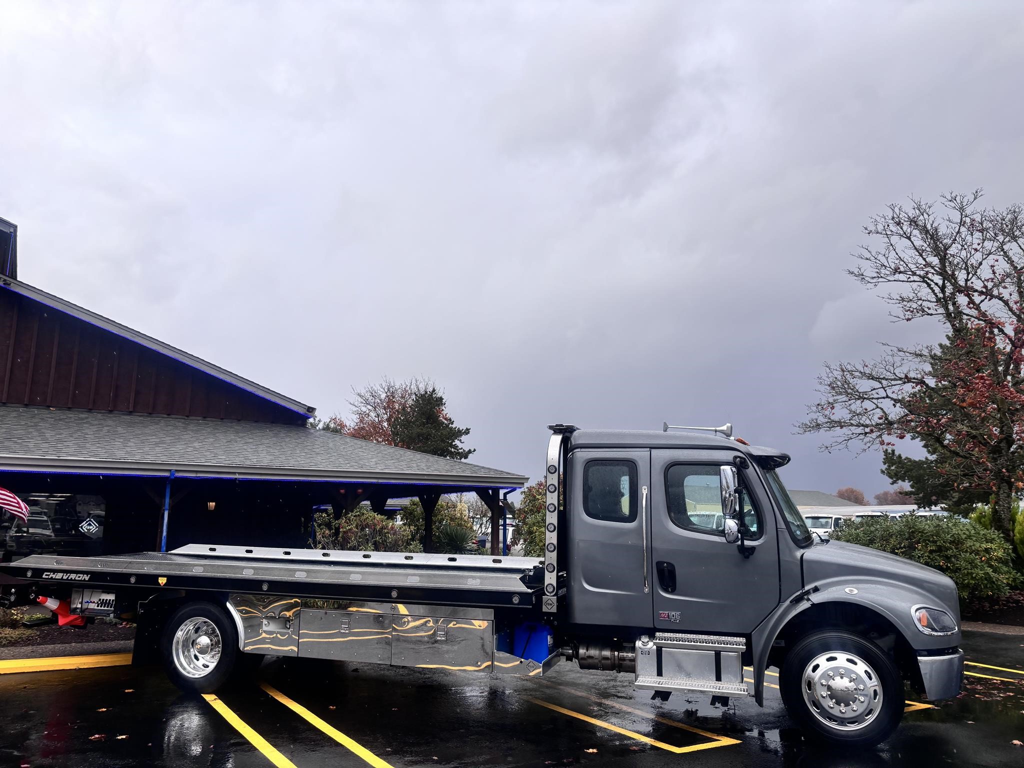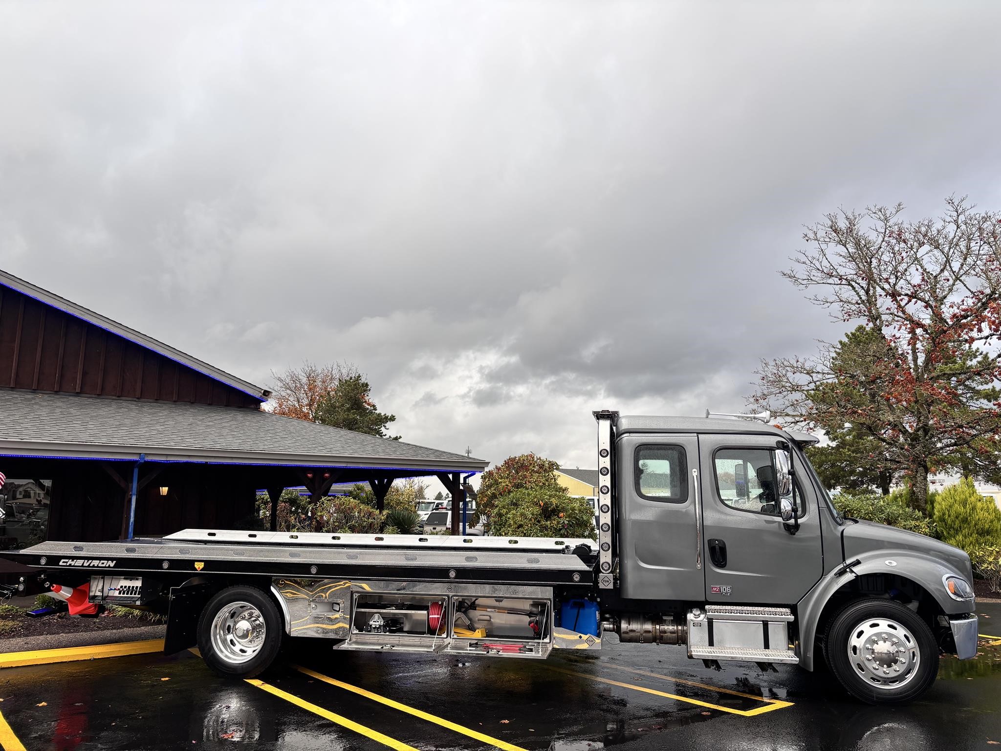 Chevron 21.6' Steel LCG (Low Center of Gravity) Carrier w/ Wheel Lift, 3/16 Deck Plate, 3x2 Corten Tube Crossmembers on 8 inch Centers, (4) Rear Chain Locks, (2) Front Chain Locks, (6) Floor Plate Chain Locks (3 per side), 8,000lb Worm Gear Winch, 3/8" x 50' Winch Cable, Illuminated Dual Controls, FMVSS 108 Lamp Group Shock Mounted Lighted, Direct Mount Pump, Cable Roller Guide w/ Tensioner, Winch Free Spool Extension, Back-Up Alarm, (2) Safety Chains, Mechanical Anti-tilt, Black Body Paint, 102" Wide Body, Inboard Tilt Cylinders, Floor Level Roll Formed w/ Punched Stake Pockets, 4,000lb Wheel Lift w/ Releasable L Arms, Fully Hydraulic Wheel Lift, (2) Safety Straps & Ratchets, (2) Rear Safety Chains, Body Lock w/ Nylatron Roller Bearings, & 12,000lb Deck Load Rating. Body Serial #