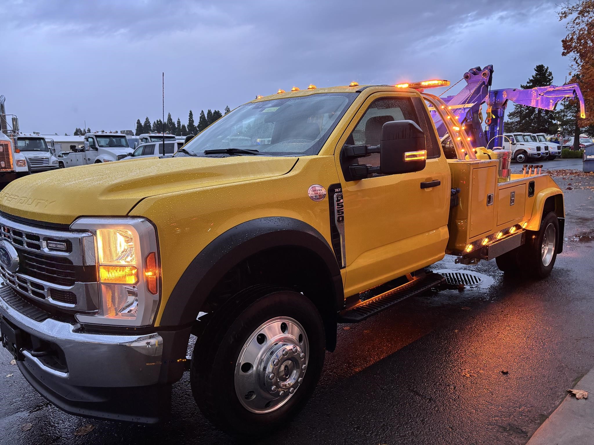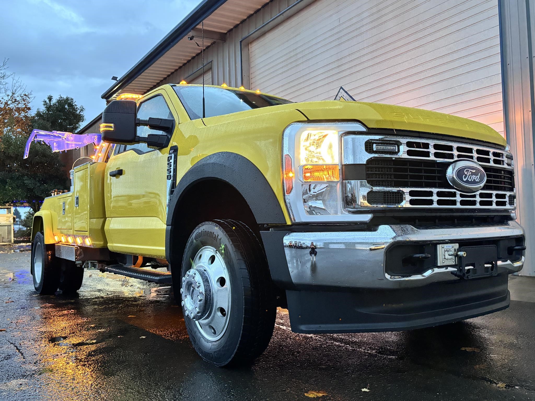 2024 Ford F-550XLT 4x2 XLT w/ Power Stroke 6.7L Diesel, 330HP TorqShift, Transmission: TorqShift 10-Speed Automatic, 84” CA, Cloth 40/20/40 Split Bench Seat, 26.5Gal Midship Fuel Tank, Running Boards, Rear View Camera, Radio: AM/FM Stereo w/MP3 Player 7,000lb Front axle. 13,5000 Rear axle.limited slip, 4.30 ratio. 225/70Rx19.5G BSW Traction, 19.5 Aluminum wheels, High Capacity Trailer Tow Package, Low deflection package. Engine block heater. 410 AMP Dual Alternators, carpet delete, platform cab steps.Power group, Windows, Locks, Mirrors, Keyless Entry.. Cruise, Idle up - ( Set up by Builder) Upfitter switches. x 5. GVWR 19,500lbs payload package. upgrade