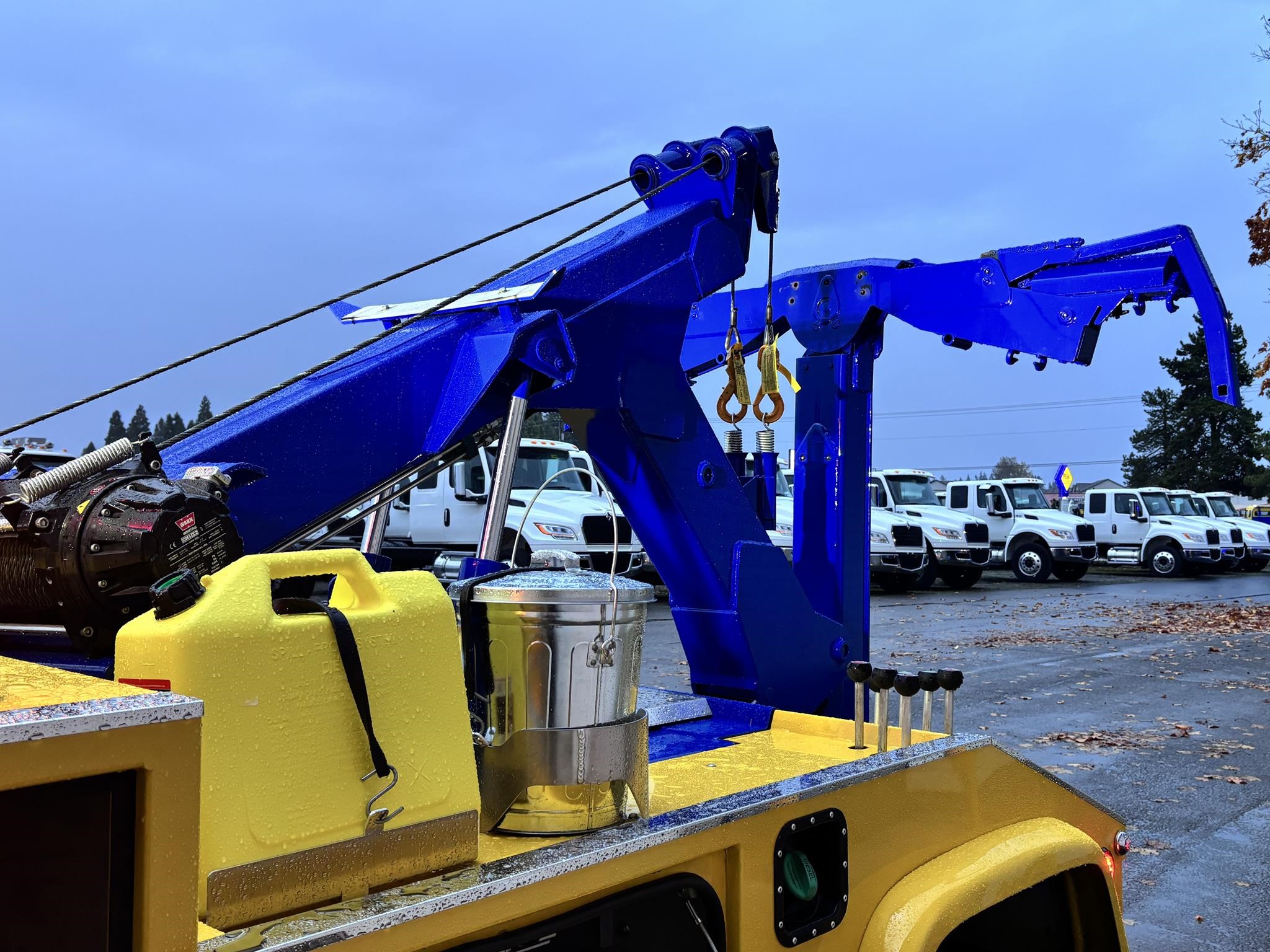 Chevron 408TA DL G2 "Renegade" Extendable boom. 8-ton. Integrated Boom, Wheel Lift, (2) Safety Straps, (2) Side Entry Tool Boxes, Rear Snatch Block Anchors, FMVSS 108 Lamp Group, Safety Chain Pockets, (2) Safety Chains, Back Up Alarm, Auto Grip II Wheel Lift System, Dual 9,000lb Planetary "Warn" Winches w/ 3/8" x 100' Cable, Cable Tensioner, & Dual Control Stations. FMVS 108 Lamp Group. Tow light Plug. Mudflap brackets. Control station labels. Chain pockets. Straps for wheel lift. Body serial #