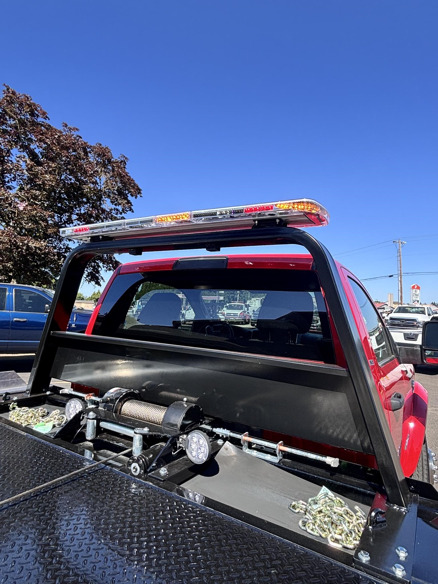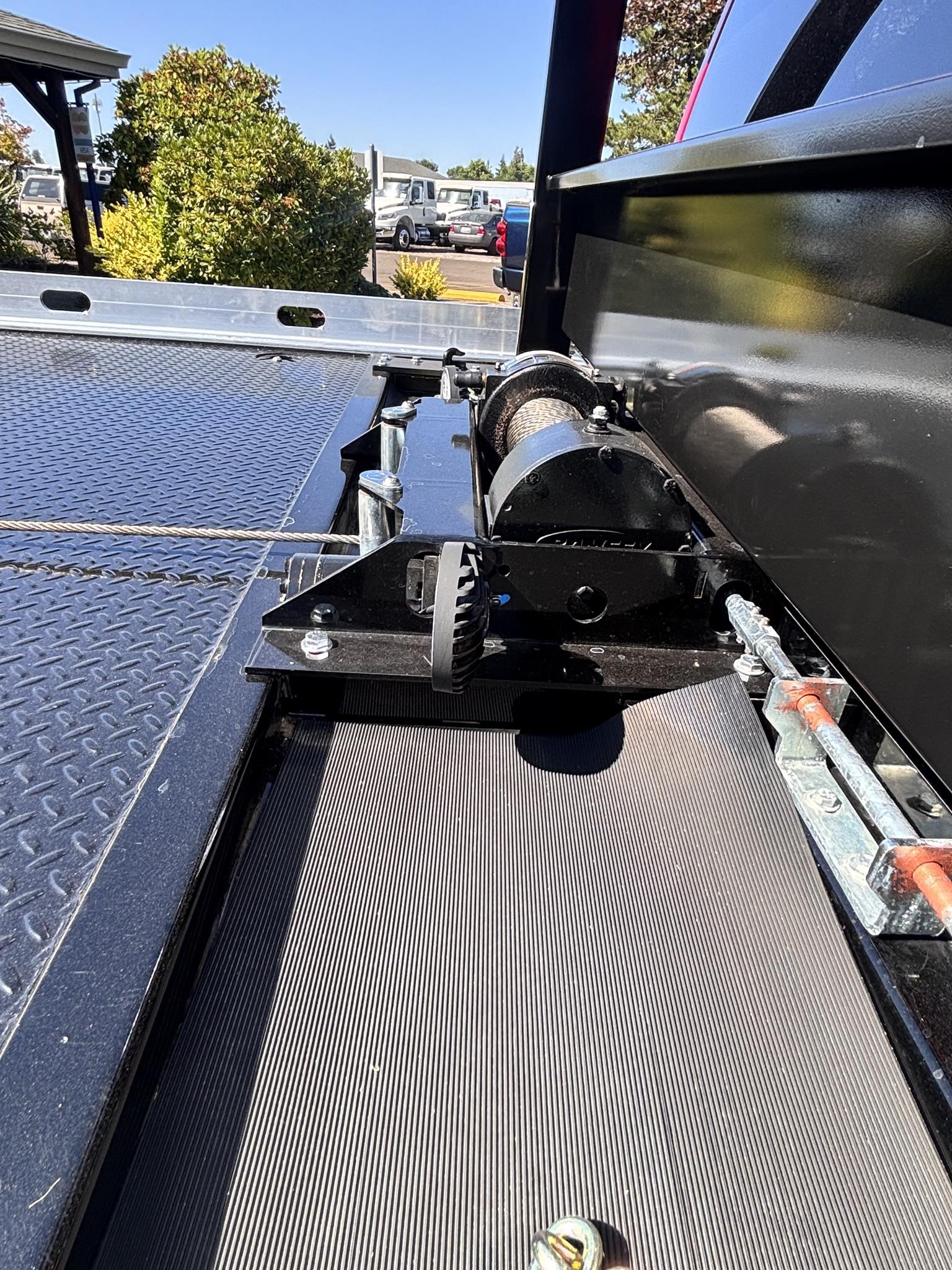 19.6 FT Steel carrier with Independent wheel lift. Full-Length Slide Pads. 8,000lb Winch. Hydraulic pump. Painted Black. Backup lights, backup Alarm. Tow light sockets. Bed anti-tilt lockout/ right and left Chain Trays. Safety Chains (2-front, 2 rear) Dual lighted controls. FMVS 108 Lighting group. Wheelift safety pin. Full-height cab protector.Stainless steel tail light plates. Cable Roller guide. Cable tensioner. Positive lockdown. Prewired Junction box. Straps and Ratchets for Wheelift., Ratchets, 11 Chain lock package body- Body Serial # ST10C2G244999