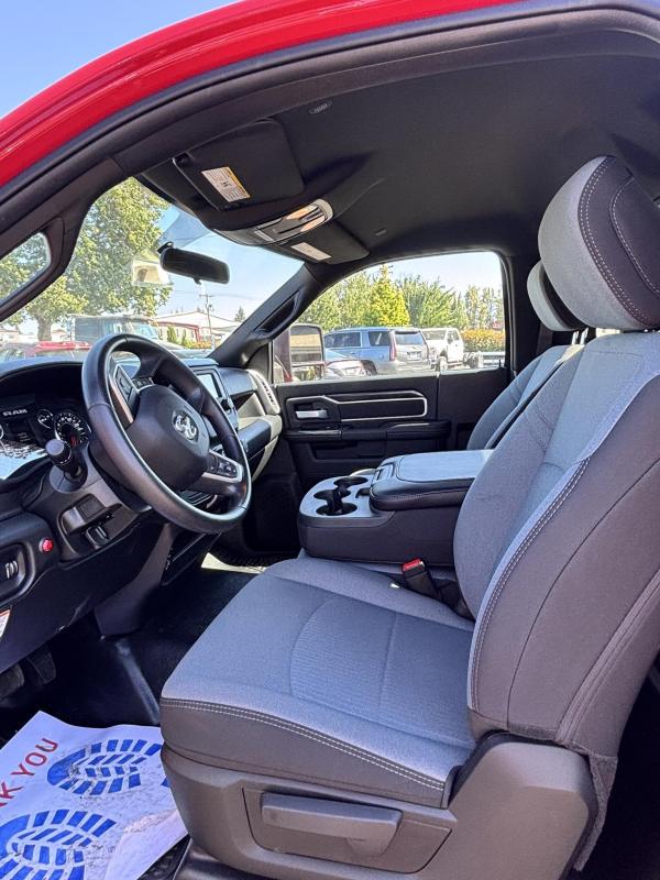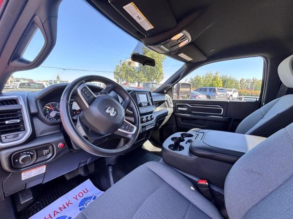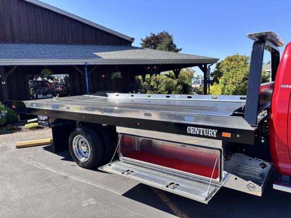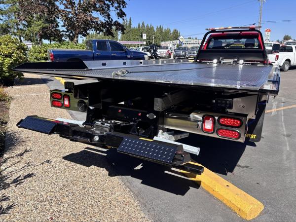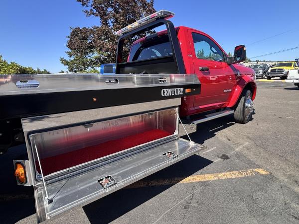 RAM 5500 SLT Reg Cab w/ Cummins 6.7L I-6 OHV Direct Diesel Injection, 24 Valve Intercooled Turbo, 325HP @ 3,000 rpm, 750 lb-ft @ 1,600 rpm, 136 amp Alternator, 6 Speed Automatic Aisin AS68RC, Exhaust brake. Engine Block Heater, 120" CA, 4 Wheel Disc Brakes w/ Front and rear Vented Discs, Non-Independent Front Suspension, Rear Leaf Suspension, 4 Wheel Anti-Lock Braking System, Daytime Running Lights, Dual Air Bags, A/C, 5" Touch Screen AM/FM/CD Radio, Cruise Control, Power Windows, Power Door Locks, 40-20-40 Split Bench Seat, Vinyl Black Material, Upfitter Switches (5). 19,500 GVWR, Chrome Cab Steps, 22 Gal Fuel Tank, 225/70R19.5 Tires w/ 19.5 Alum Wheels19.6 FT Steel carrier with Independent wheel lift. Full-Length Slide Pads. 8,000lb Winch. Hydraulic pump. Painted Black. Backup lights, backup Alarm. Tow light sockets. Bed anti-tilt lockout/ right and left Chain Trays. Safety Chains (2-front, 2 rear) Dual lighted controls. FMVS 108 Lighting group. Wheelift safety pin. Full-height cab protector.Stainless steel tail light plates. Cable Roller guide. Cable tensioner. Positive lockdown. Prewired Junction box. Straps and Ratchets for Wheelift., Ratchets, 11 Chain lock package body- Body Serial # ST10C2G244999