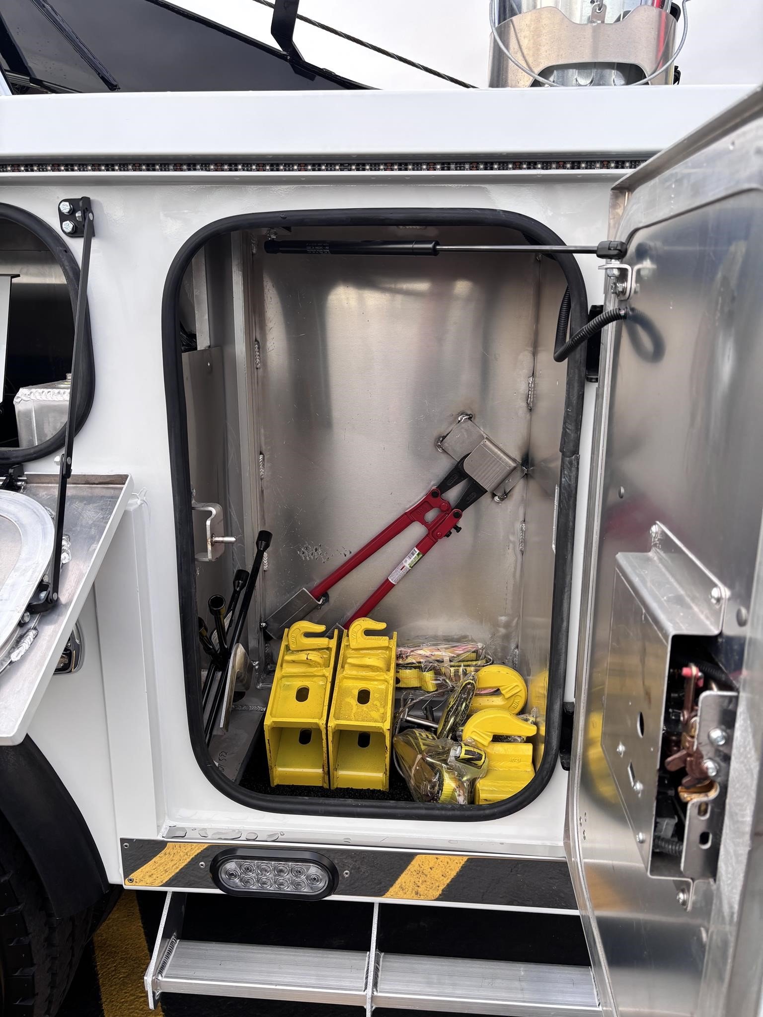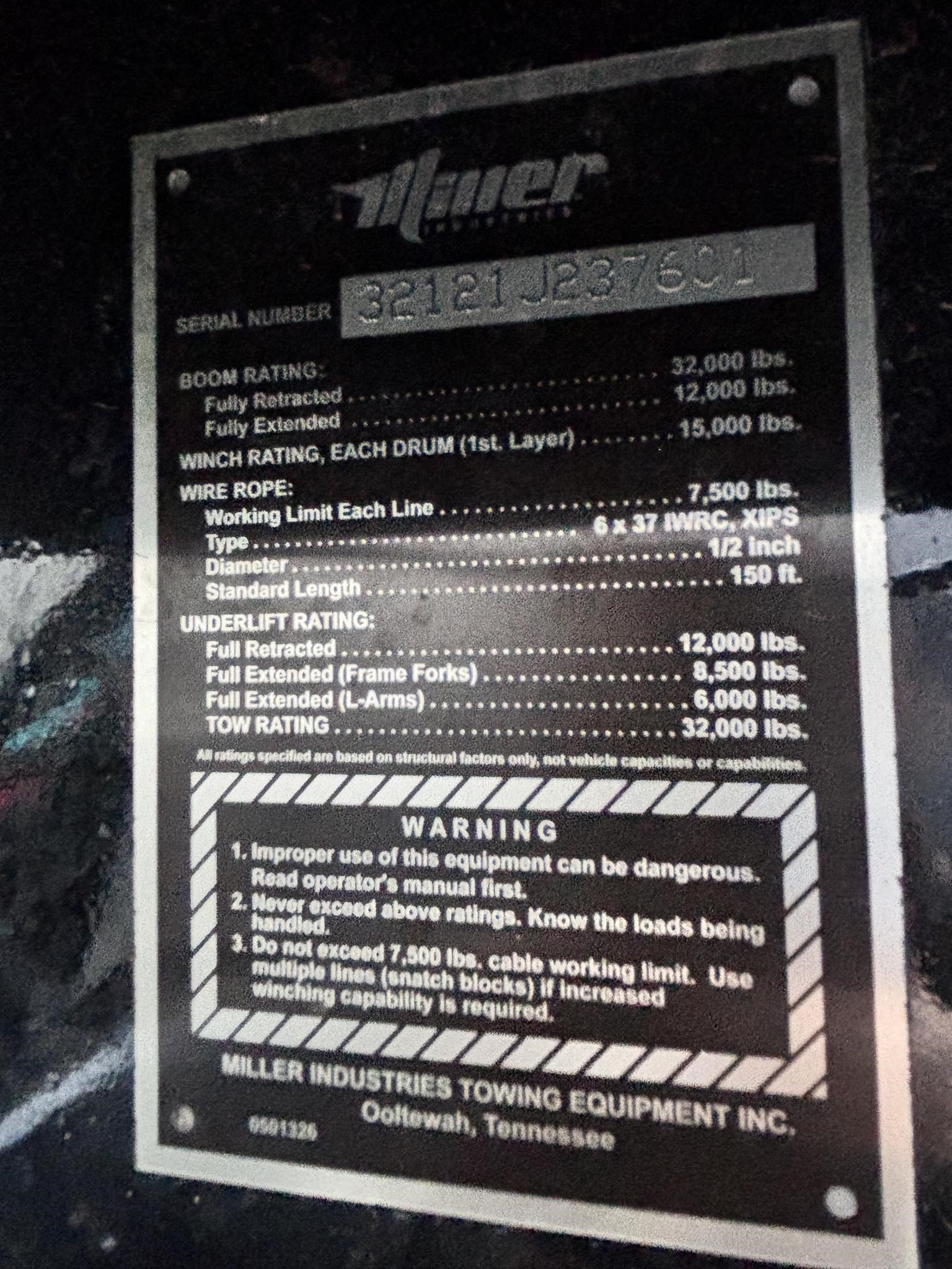 Century 3212 High body 84" Body BOOM SPECIFICATIONS; Retracted32,000 lbs.; Extended 12,000 lbs. ; Maximum Angle36° Maximum Hook Height160" Maximum Reach past Tailboard at 30°54" UNDERLIFT SPECIFICATIONS; Fully Retracted (with Forks)12,000 lbs. Fully Extended (with Forks)8,500 lbs. Extended or Retracted with L-Arms 6,000 lbs. Underlift Reach to the Center of Fork Holder. At Normal Tow Position84" Positive Tilt20° Negative Tilt10° Tow Rating32,000 lbs. WINCH RATING & CABLE Rating (first layer of drum) each Winch15,000 lbs. Diameter and Length (each winch)1/2" x 150' Type6 x 37 IWRC STANDARD FEATURES 84" Aluminum (LOW PROFILE CX Body) Modular Body. wtih 3 Compartments Per SideLanyard Controls for Underlift & Boom. on the Passenger Side Manual Control Station on the Drivers SideChrome Double Action Latches. Dual Hydraulic Pump3 Sets of Lift Forks. Hydraulic Rear Jacks with Flipper FeetRubber Fenderetts. 6,000 lb. L-Arms with Pivoting ReceiversSafety Chains, Door ClosuresTailboard "D" Rings, LED Tool, Compartment LightingFederal Standard 108 Lighting, Cable TiebacksLED Taillights, Mud Flaps Body Serial # 32121J237601