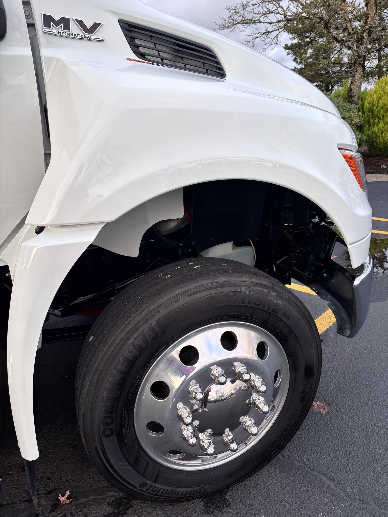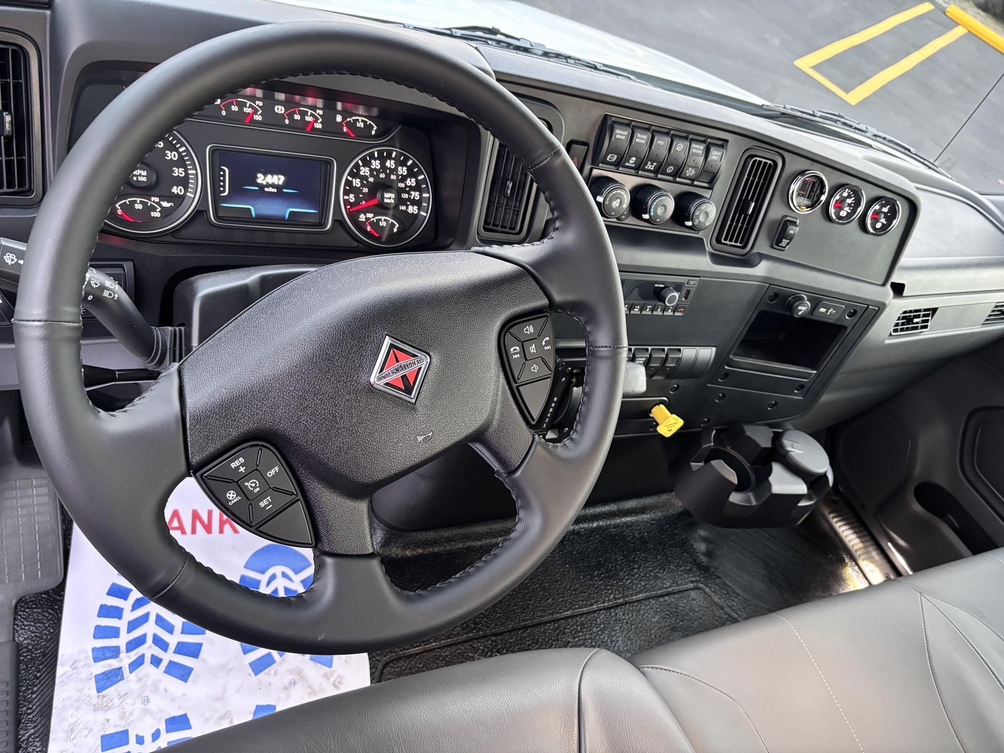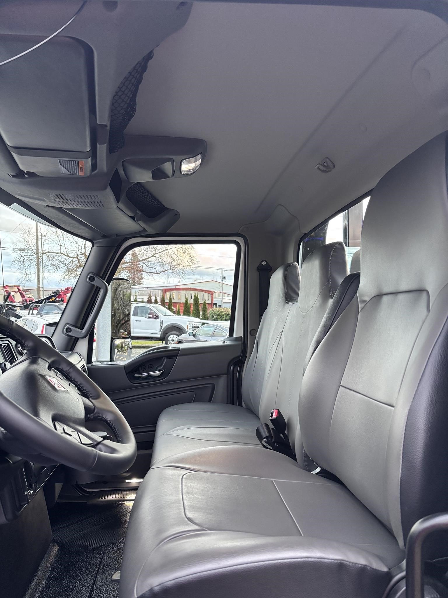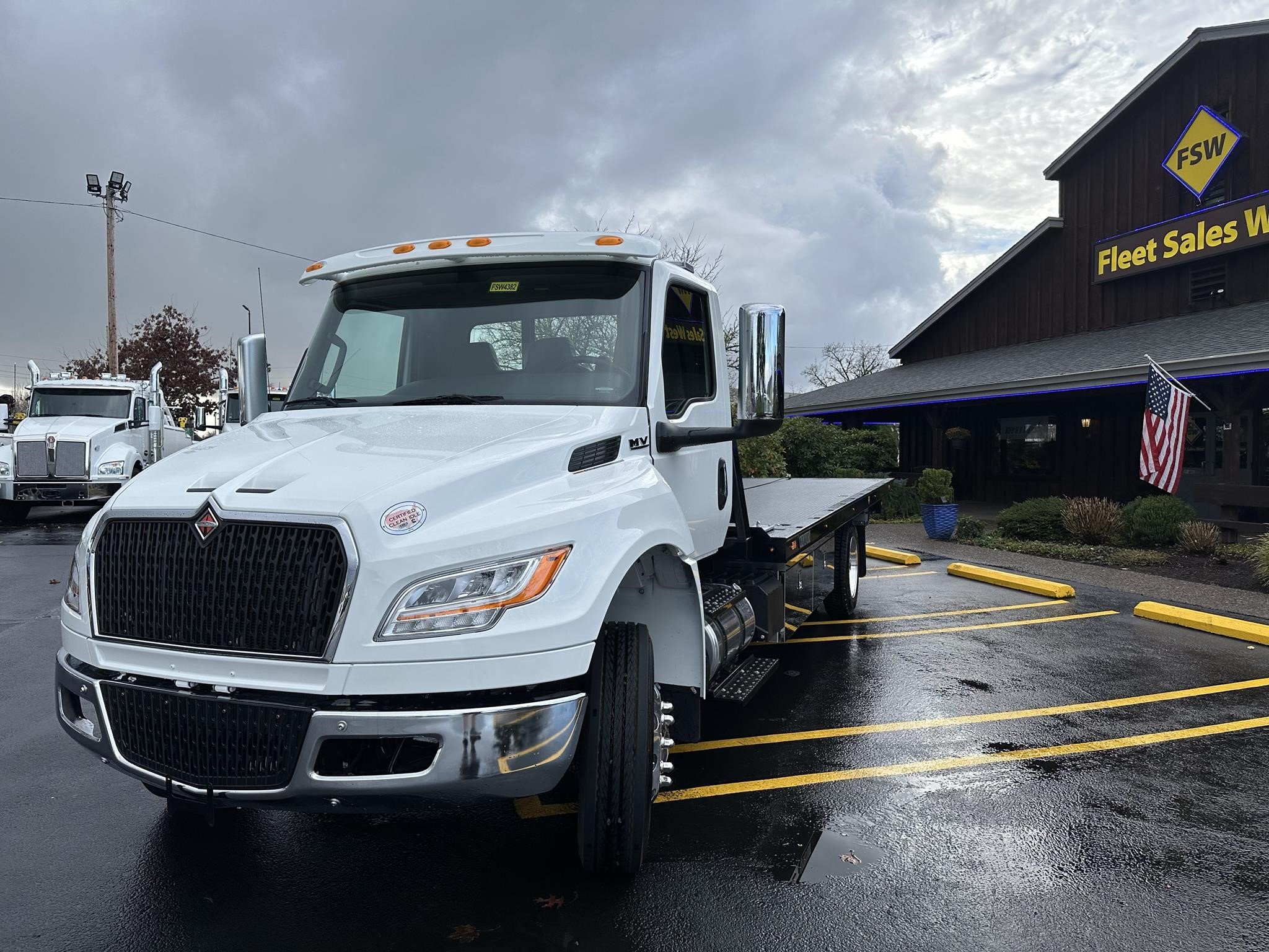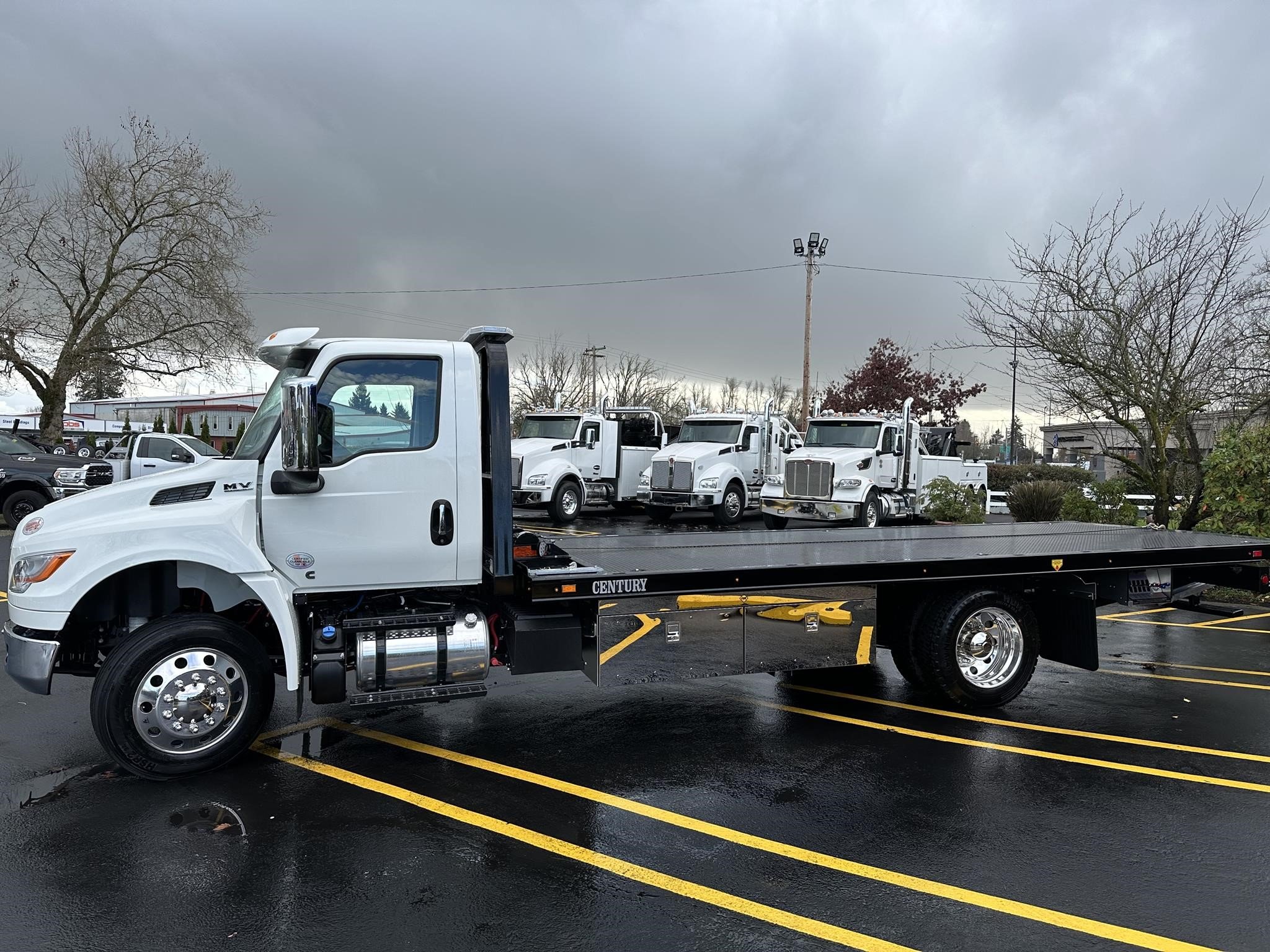 2026 International Model MV regular cab. Cummins ISB 6.7L, 260HP @ 2,300 rpm, 660 lb-ft @ 1,600 rpm, Allison RDS-2200 6 Speed Auto, Air Brakes, Air Dryer Heater, Exhaust Brake, Front Axle: Dana-Spicer I-Beam 8,000lb w/ Shock Absorbers, Rear Axle: Dana-Spicer 19,000lb rear axle. , 20,000lb Air Ride Suspension, 4.88 Rear Axle Ratio, Chrome Bumper, black Grille, Air Ride Driver Seat,& Two man Passenger Seat, - bench seat. Idle Up, Cruise Control, Tilt-Wheel, AM/FM/CD/MP3 w/ Bluetooth, Air Horn, Engine Block Heater, Dual 40-50 Gal Alum Fuel Tanks, 7 Gal DEF Tank, Power Windows, Power Door Locks, Power heated Mirrors. A/C, 255/70R22.5 Tires w/ 22.5 Alum Wheels, Cup holders.Visor 25,500 GVWR,