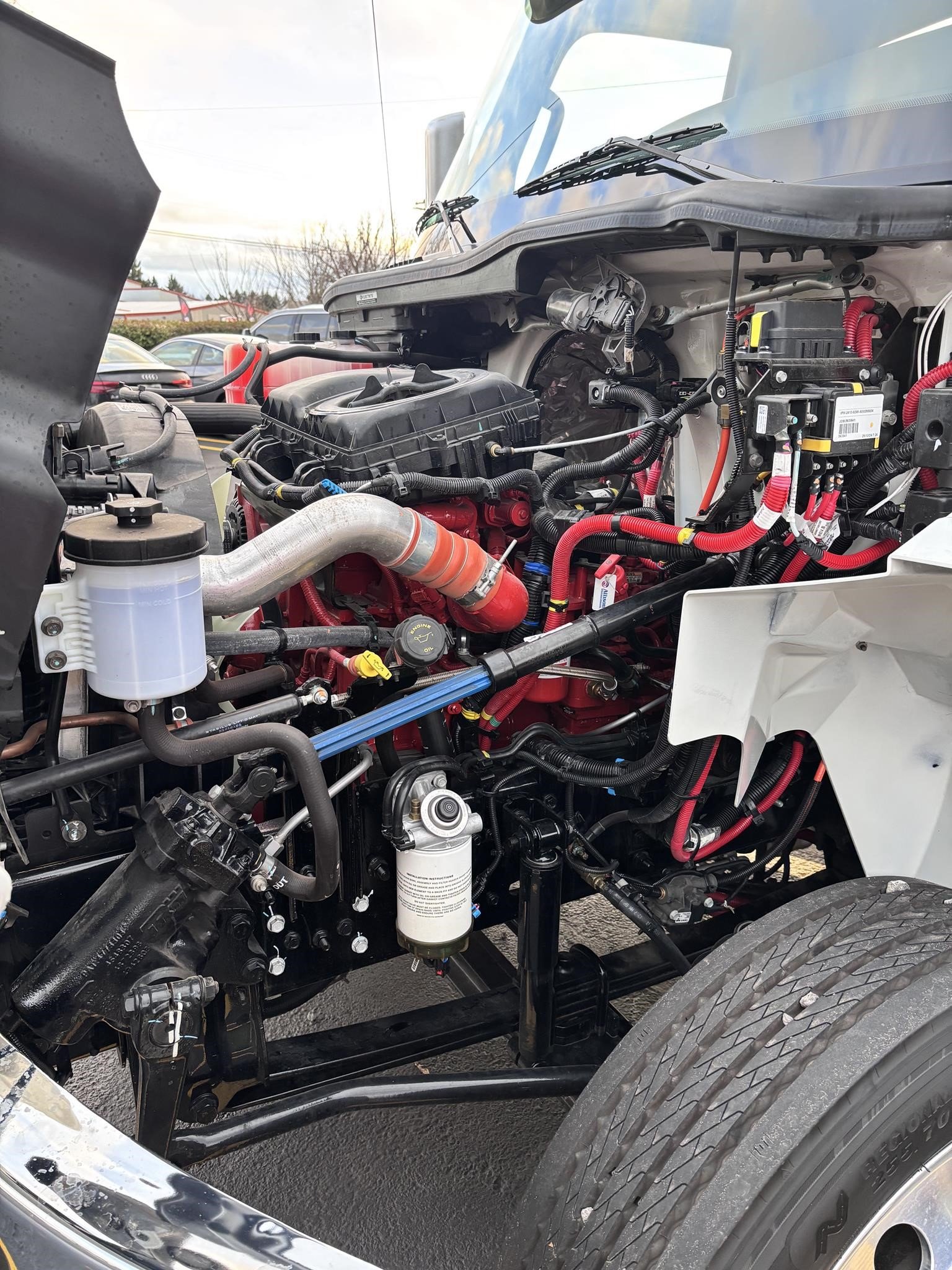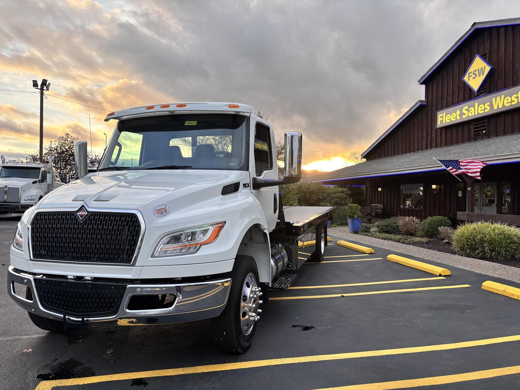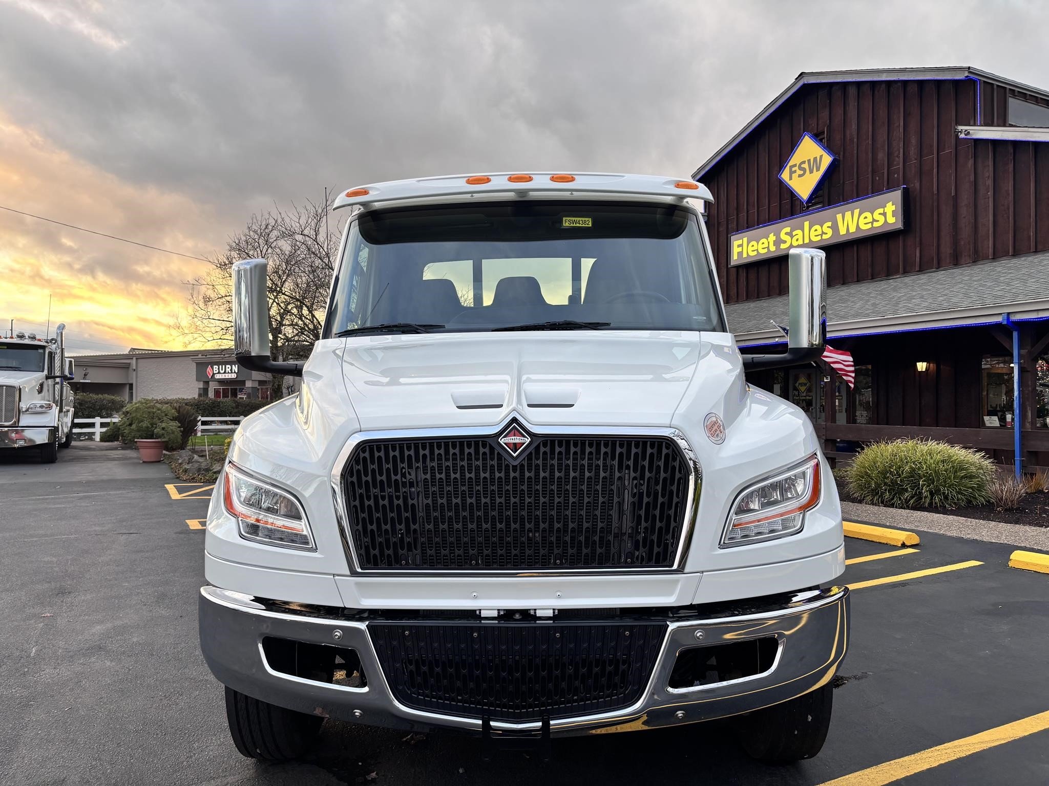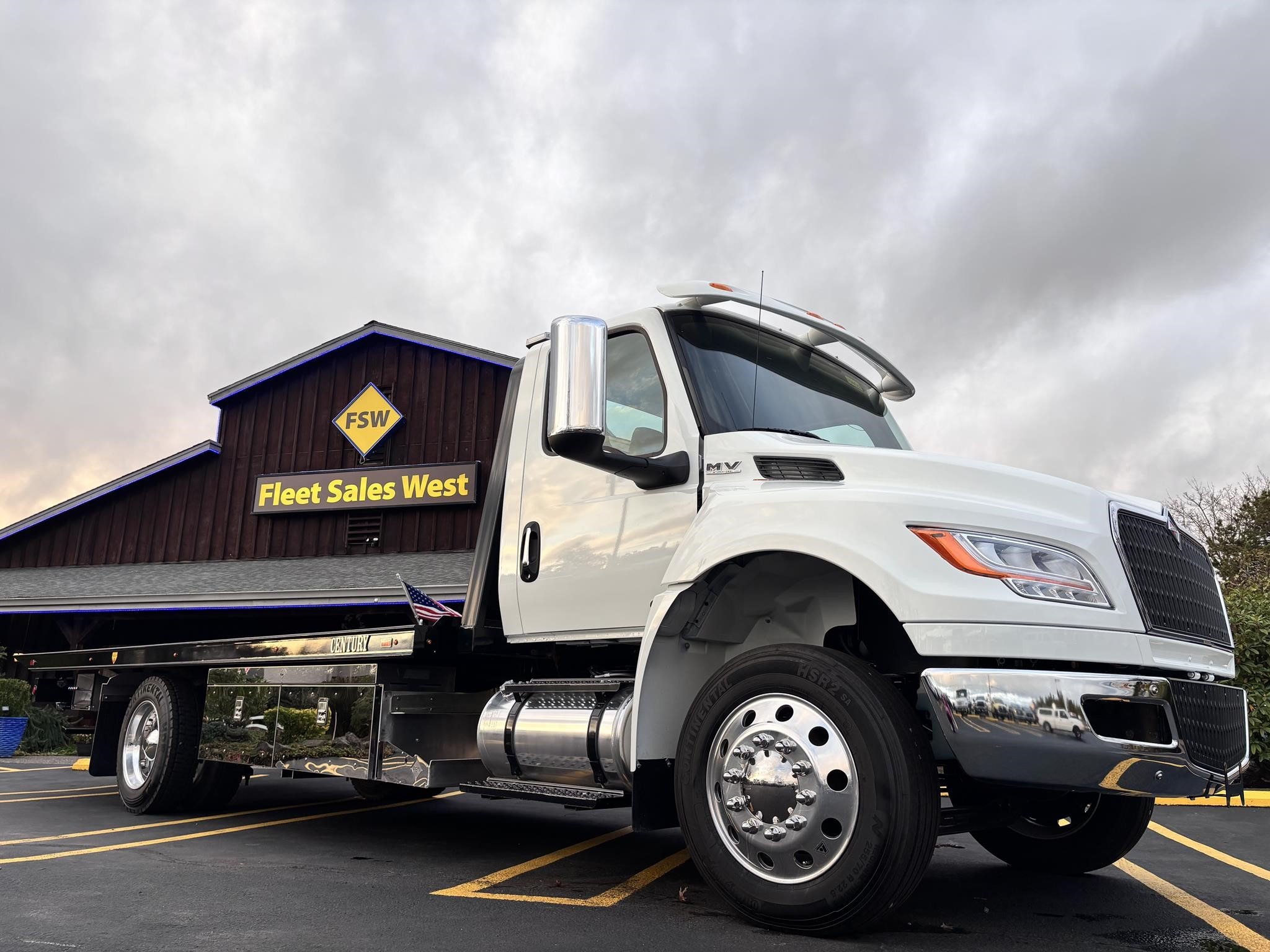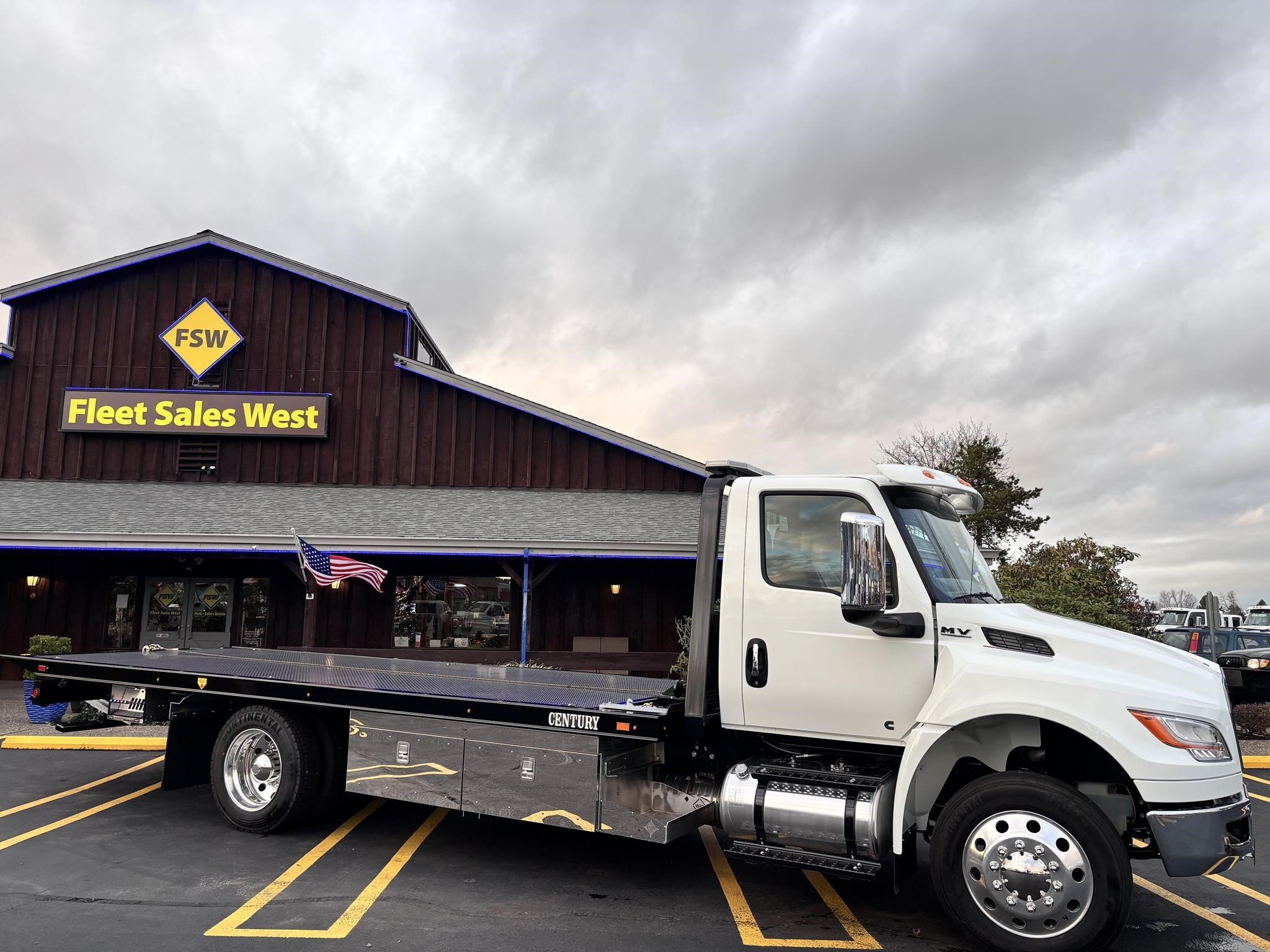 2026 International Model MV regular cab. Cummins ISB 6.7L, 260HP @ 2,300 rpm, 660 lb-ft @ 1,600 rpm, Allison RDS-2200 6 Speed Auto, Air Brakes, Air Dryer Heater, Exhaust Brake, Front Axle: Dana-Spicer I-Beam 8,000lb w/ Shock Absorbers, Rear Axle: Dana-Spicer 19,000lb rear axle. , 20,000lb Air Ride Suspension, 4.88 Rear Axle Ratio, Chrome Bumper, black Grille, Air Ride Driver Seat,& Two man Passenger Seat, - bench seat. Idle Up, Cruise Control, Tilt-Wheel, AM/FM/CD/MP3 w/ Bluetooth, Air Horn, Engine Block Heater, Dual 40-50 Gal Alum Fuel Tanks, 7 Gal DEF Tank, Power Windows, Power Door Locks, Power heated Mirrors. A/C, 255/70R22.5 Tires w/ 22.5 Alum Wheels, Cup holders.Visor 25,500 GVWR,