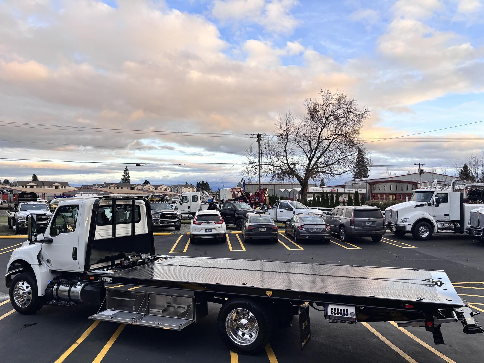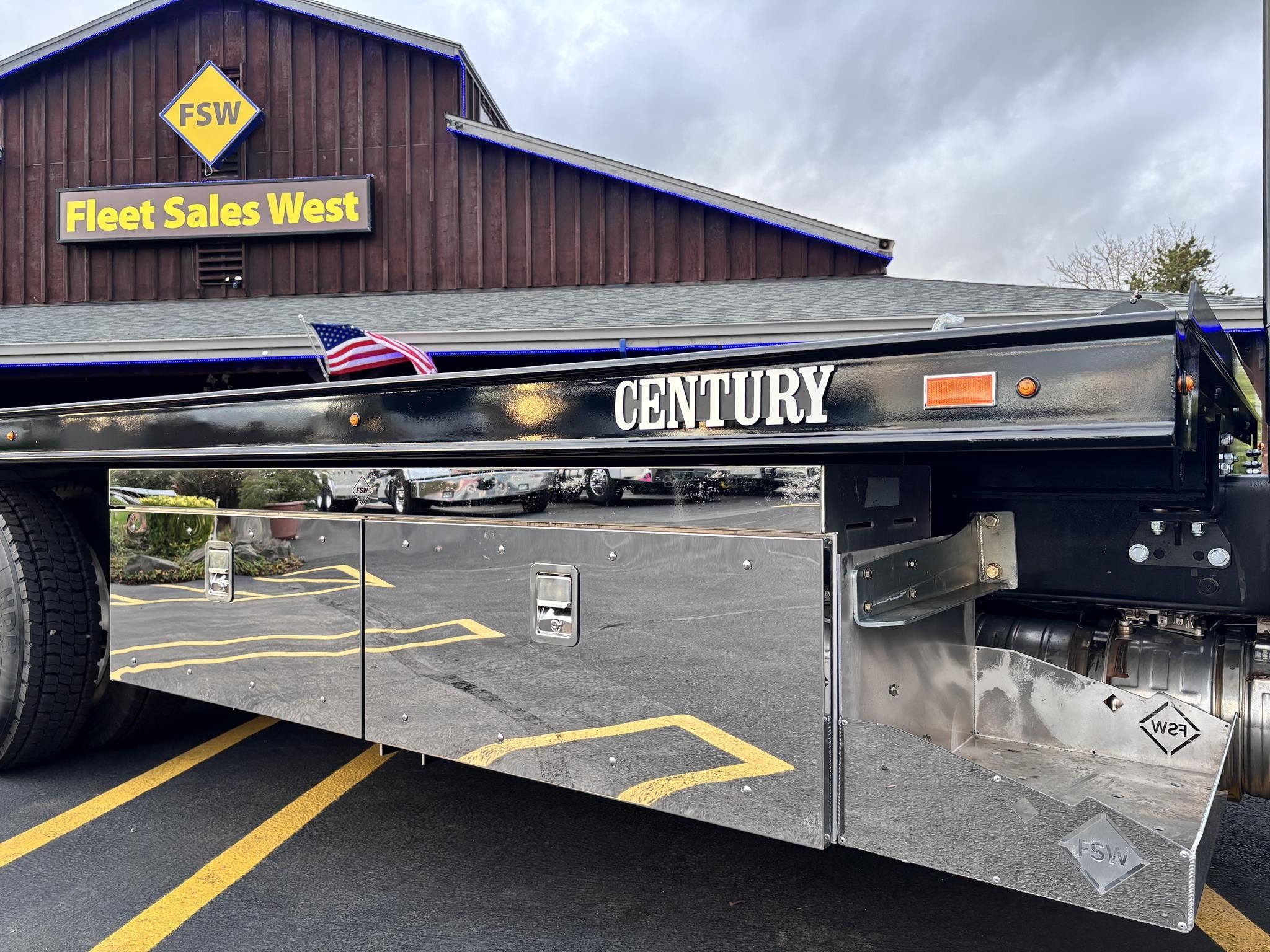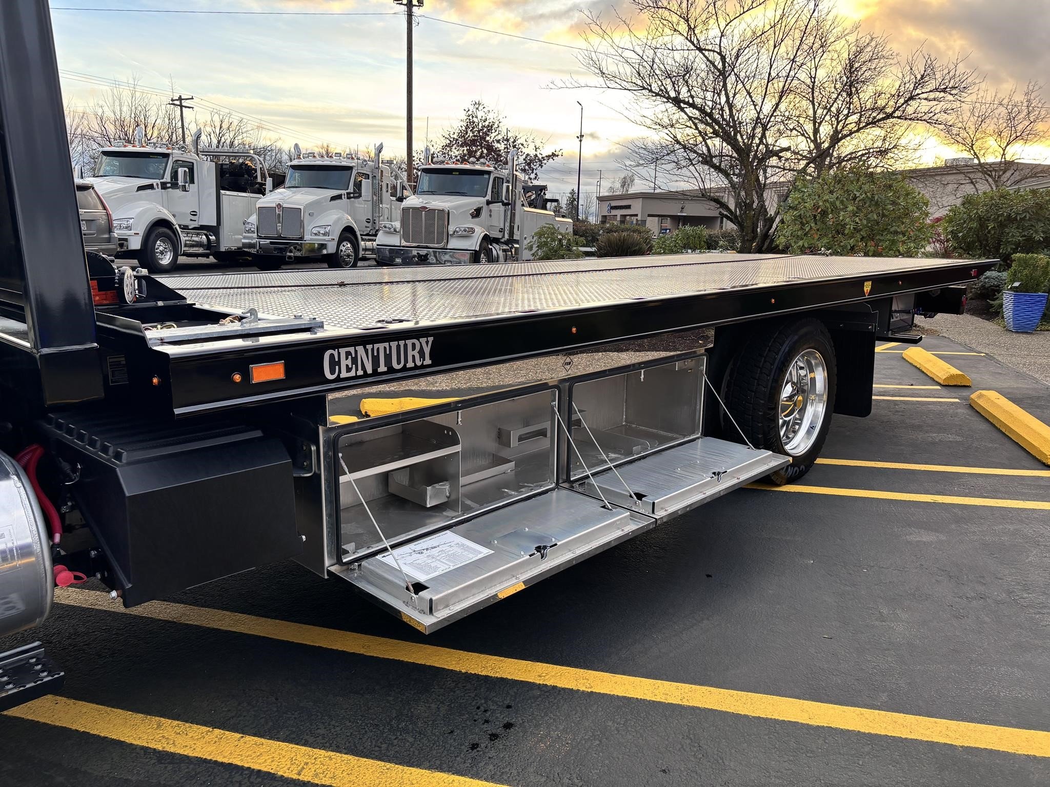 Century Steel LCG (Low Center of Gravity) Carrier w/ Wheel Lift, 3/16 Deck Plate, 3x2 Corten Tube Crossmembers on 8 inch Centers, (4) Rear Chain Locks, (2) Front Chain Locks, (6) Floor Plate Chain Locks (3 per side), 8,000lb Worm Gear Winch, 3/8" x 50' Winch Cable, Illuminated Dual Controls, FMVSS 108 Lamp Group Shock Mounted Lighted, Direct Mount Pump, Cable Roller Guide w/ Tensioner, Winch Free Spool Extension, Back-Up Alarm, (2) Safety Chains, Mechanical Anti-tilt, Black Body Paint, 102" Wide Body, Inboard Tilt Cylinders, Floor Level Roll Formed w/ Punched Stake Pockets, 4,000lb Wheel Lift w/ Releasable L Arms, Fully Hydraulic Wheel Lift, (2) Safety Straps & Ratchets, (2) Rear Safety Chains, Body Lock w/ Nylatron Toller Bearings, & 12,000lb Deck Load Rating. Body SN# ST12L2F253035