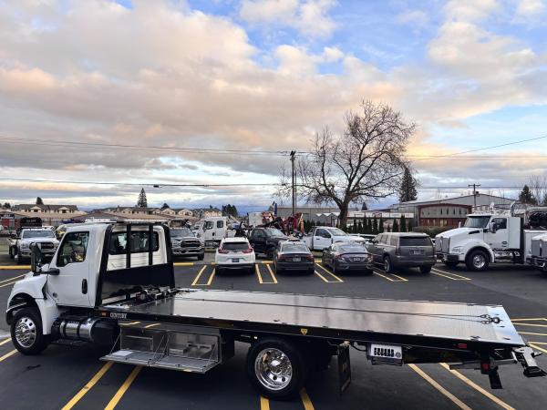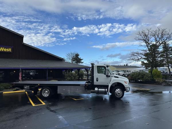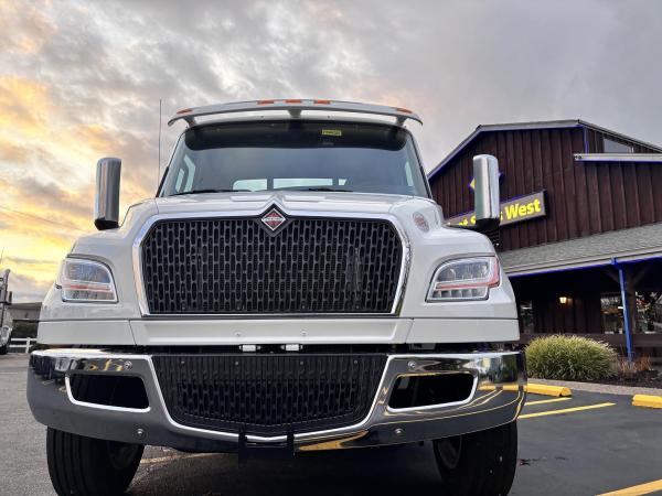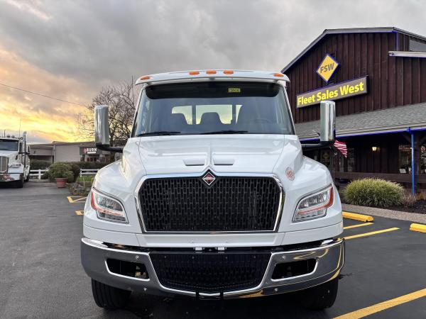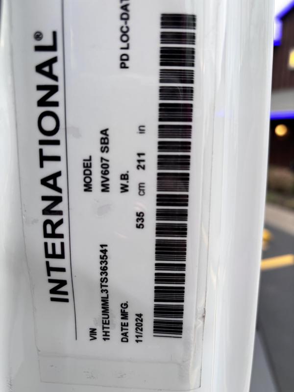 2026 International Model MV regular cab. Cummins ISB 6.7L, 260HP @ 2,300 rpm, 660 lb-ft @ 1,600 rpm, Allison RDS-2200 6 Speed Auto, Air Brakes, Air Dryer Heater, Exhaust Brake, Front Axle: Dana-Spicer I-Beam 8,000lb w/ Shock Absorbers, Rear Axle: Dana-Spicer 19,000lb rear axle. , 20,000lb Air Ride Suspension, 4.88 Rear Axle Ratio, Chrome Bumper, black Grille, Air Ride Driver Seat,& Two man Passenger Seat, - bench seat. Idle Up, Cruise Control, Tilt-Wheel, AM/FM/CD/MP3 w/ Bluetooth, Air Horn, Engine Block Heater, Dual 40-50 Gal Alum Fuel Tanks, 7 Gal DEF Tank, Power Windows, Power Door Locks, Power heated Mirrors. A/C, 255/70R22.5 Tires w/ 22.5 Alum Wheels, Cup holders.Visor 25,500 GVWR,Extended Warranties.- Engine Warranty: 5 yr / 300k miles PPI & after treatment, and Tranny Warranty: 7 yr / Unlimited Miles.