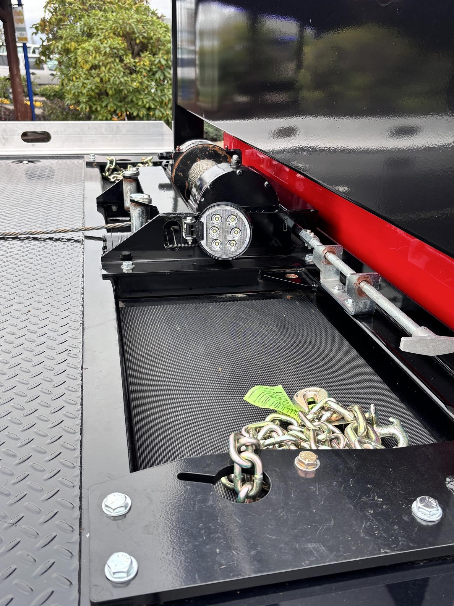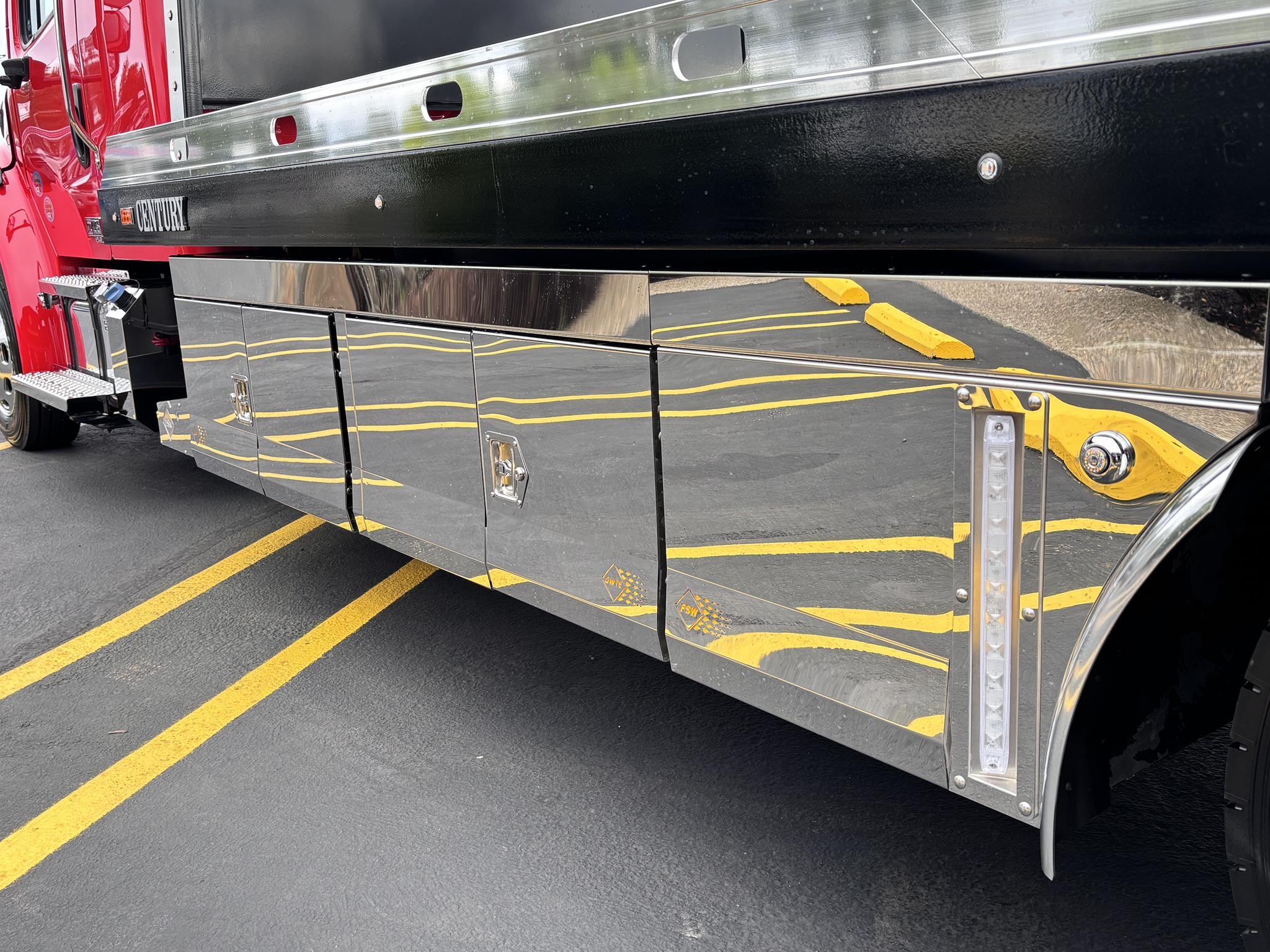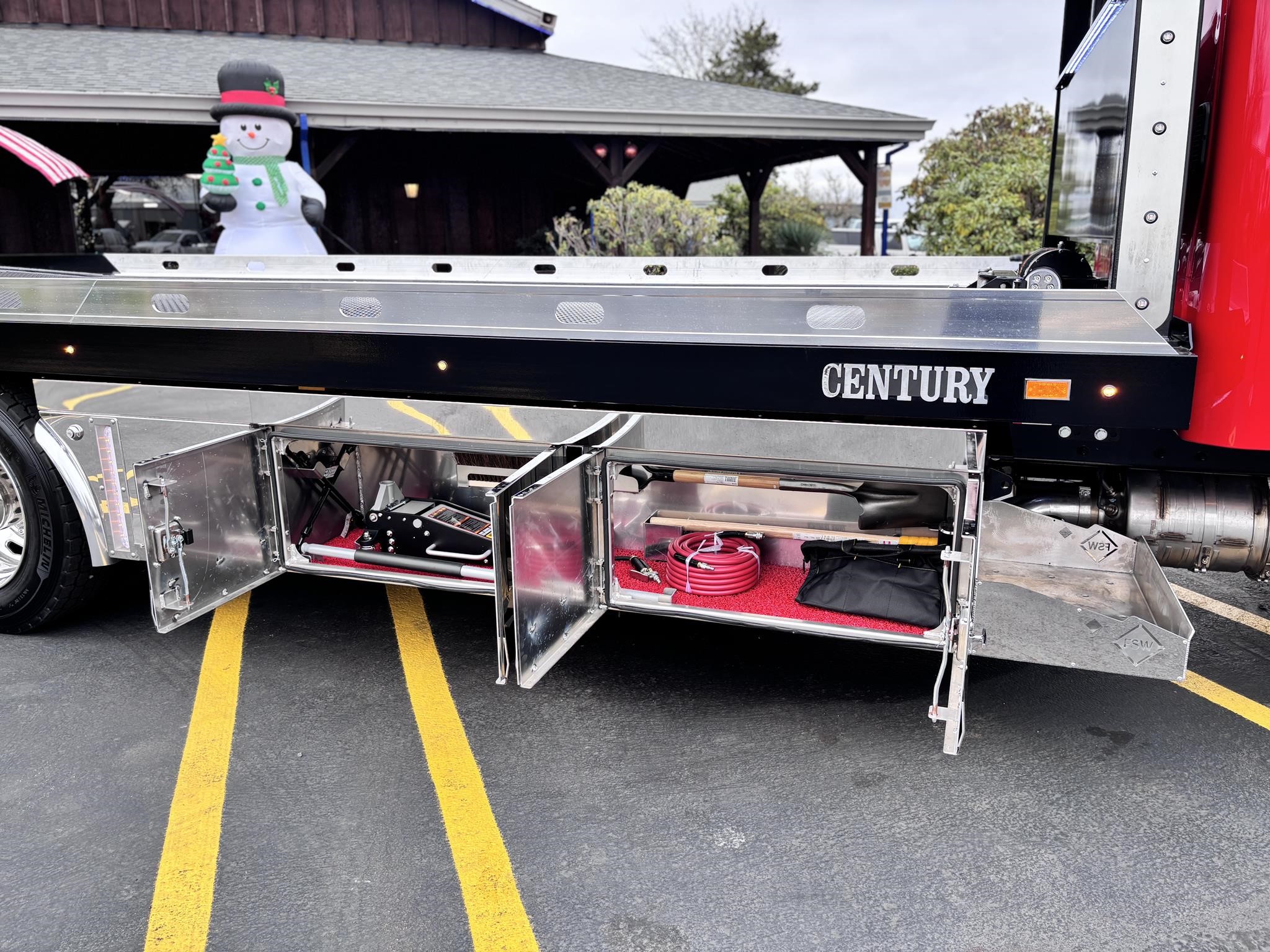 21.6 Century Steel LCG (Low Center of Gravity) Carrier w/ Wheel Lift, 3/16 Deck Plate, 3x2 Corten Tube Crossmembers on 8 inch Centers, (4) Rear Chain Locks, (2) Front Chain Locks, (6) Floor Plate Chain Locks (3 per side), 8,000lb Worm Gear Winch, 3/8" x 50' Winch Cable, Illuminated Dual Controls, FMVSS 108 Lamp Group Shock Mounted Lighted, Direct Mount Pump, Cable Roller Guide w/ Tensioner, Winch Free Spool Extension, Back-Up Alarm, (2) Safety Chains, Mechanical Anti-tilt, Black Body Paint, 102" Wide Body, Inboard Tilt Cylinders, Floor Level Roll Formed w/ Punched Stake Pockets, 4,000lb Wheel Lift w/ Releasable L Arms, Fully Hydraulic Wheel Lift, (2) Safety Straps & Ratchets, (2) Rear Safety Chains, Body Lock w/ Nylatron Roller Bearings, & 12,000lb Deck Load Rating. Body Serial# ST12L2A240036