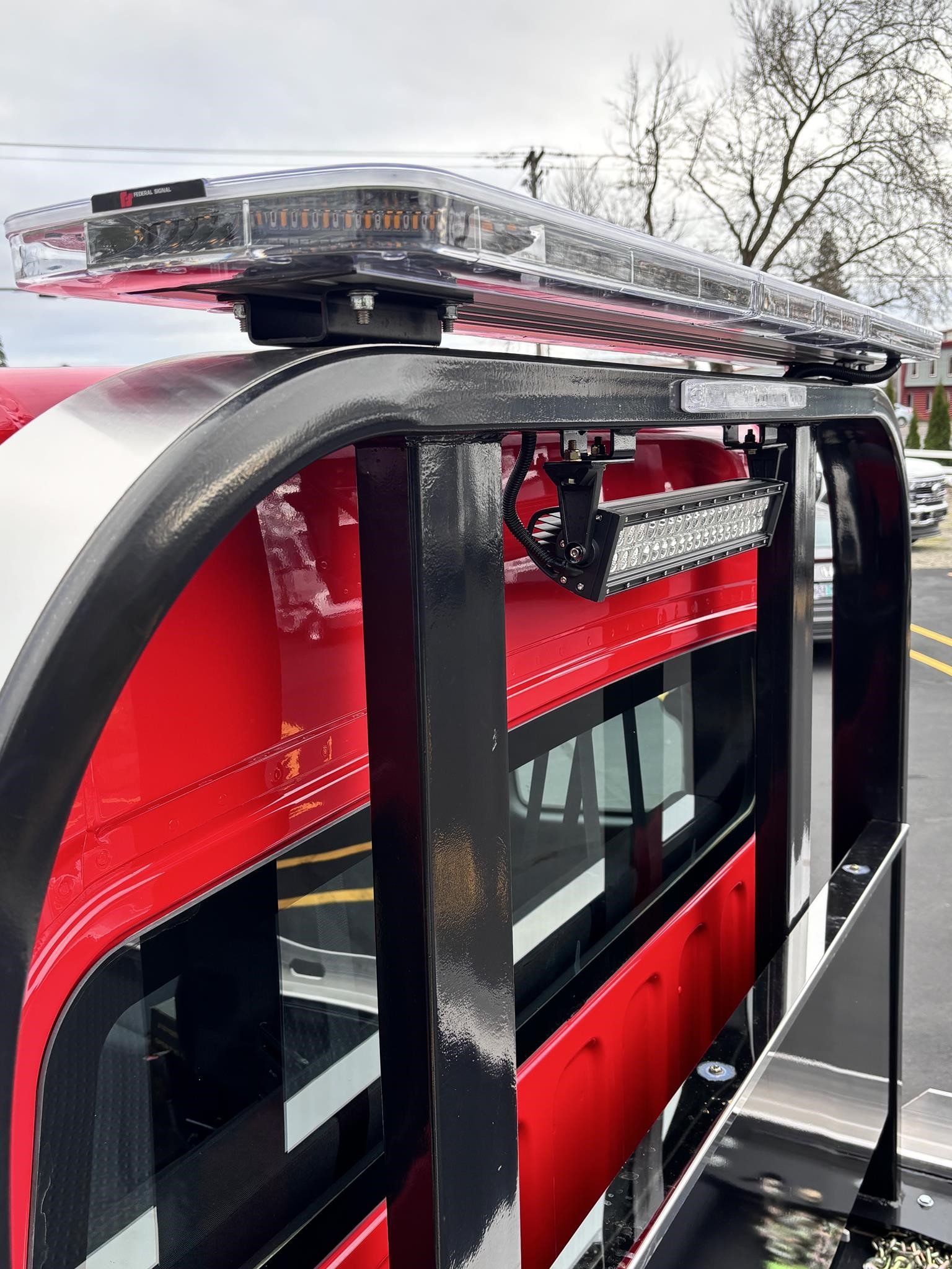SL: Pair of Federal Corner LED Strobes w/Chrome Bezels Mounted in Recessed Midship Turn Signal Boxes, Wire Harness