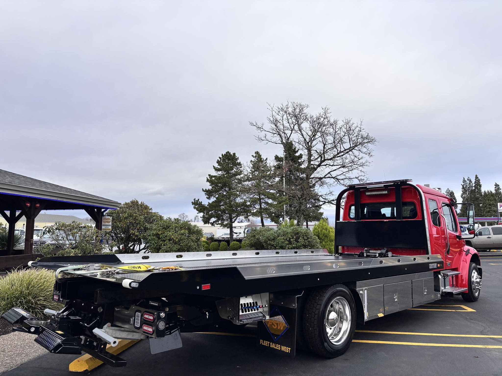 2025 FRTR M-2 Plus Model. Alum. 132" BBC Cab; Cummins 6.7L Engine 300HP 660lbs Torque. Cummins Exhaust brake.Horton HT650 Frontal Air On/off Engine fan. Clutch. 2100 RDS Automatic Transmission 6 Speed. Phillips-TEMRO 750-Watt/115-Volt block heater. dash-mounted T-Handle Cable Shift Control w/ park brake position. Synthetic Transmission Fluid.Synthetic 75W-90 Front Axle lube 10,000# front suspension. ARS-19.0-2 19,000# R-SERIES single rear axle. 4.88 Rear Axle Ratio.SYNTHETIC 75W-90 rear Axle lube. Airliner 18,000# Rear Suspension. Manual Dump Valve for Air Suspension. - Air brake package. Air Dryer w/Heater. 120KSI (Frame). 50 Gallon/Rectangular fuel tank, aluminum: Alliance Fuel filter/Water separator with Primer pump. 255/70R22.5 Tires. Alum. 22.5X8.25 10-Hub pilot disc wheels. Dual West Coast Bright mirrors. 8" bright finish convex mirrors mounted under primary mirrors. Non-operating wing windows. Opal Gray Vinyl Interior. (2) Cup Holders; Heater, Defroster & Air Conditioner. Power windows. Single passenger seat. Air ride driver seat, Rear bench seat. Adjustable Tilt and Telescoping Steering Column. (6) IGN Controlled Extra Switches to junction block AND 1 Circuit at 30 Amp. Windshield Wiper motor with Delay marker light. Switches the self-canceling turn signal. Switch with dimmer, Washer/Wiper & Hazard in Handle. Idle up, Cruise control. 22.5 Aluminum wheels 25,500 GVWR.