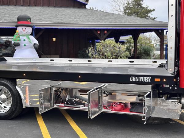 21.6 Century Steel LCG (Low Center of Gravity) Carrier w/ Wheel Lift, 3/16 Deck Plate, 3x2 Corten Tube Crossmembers on 8 inch Centers, (4) Rear Chain Locks, (2) Front Chain Locks, (6) Floor Plate Chain Locks (3 per side), 8,000lb Worm Gear Winch, 3/8" x 50' Winch Cable, Illuminated Dual Controls, FMVSS 108 Lamp Group Shock Mounted Lighted, Direct Mount Pump, Cable Roller Guide w/ Tensioner, Winch Free Spool Extension, Back-Up Alarm, (2) Safety Chains, Mechanical Anti-tilt, Black Body Paint, 102" Wide Body, Inboard Tilt Cylinders, Floor Level Roll Formed w/ Punched Stake Pockets, 4,000lb Wheel Lift w/ Releasable L Arms, Fully Hydraulic Wheel Lift, (2) Safety Straps & Ratchets, (2) Rear Safety Chains, Body Lock w/ Nylatron Roller Bearings, & 12,000lb Deck Load Rating. Body Serial# ST12L2A240036