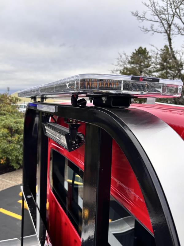 SL: Pair of Federal Corner LED Strobes w/Chrome Bezels Mounted in Recessed Midship Turn Signal Boxes, Wire Harness