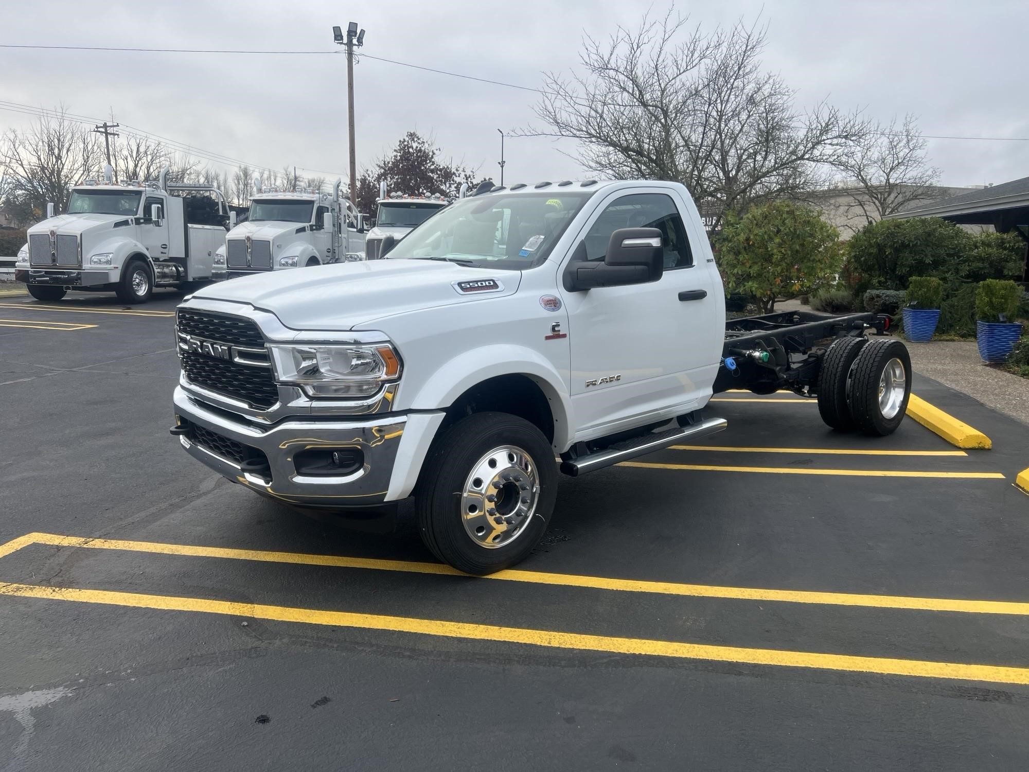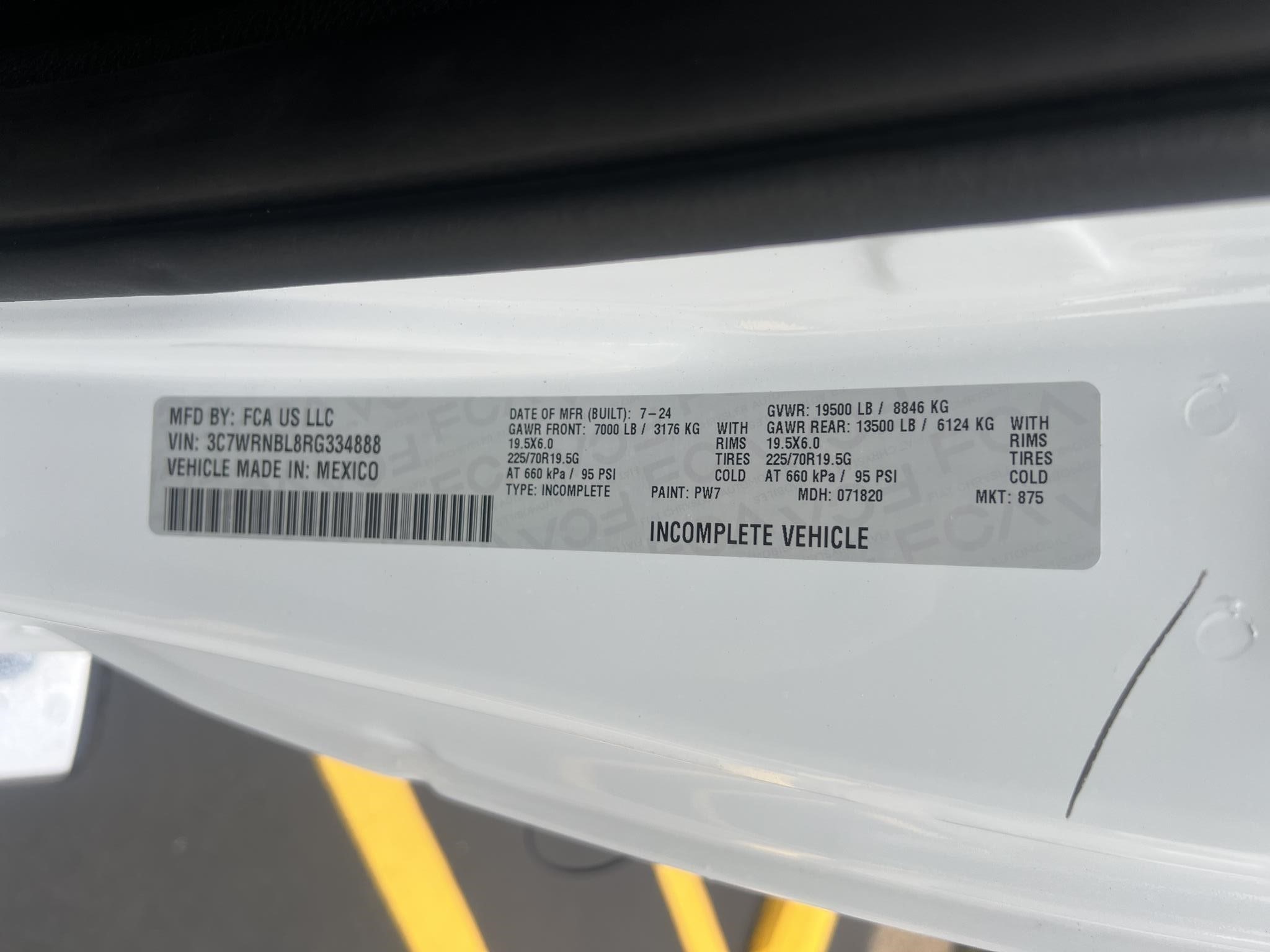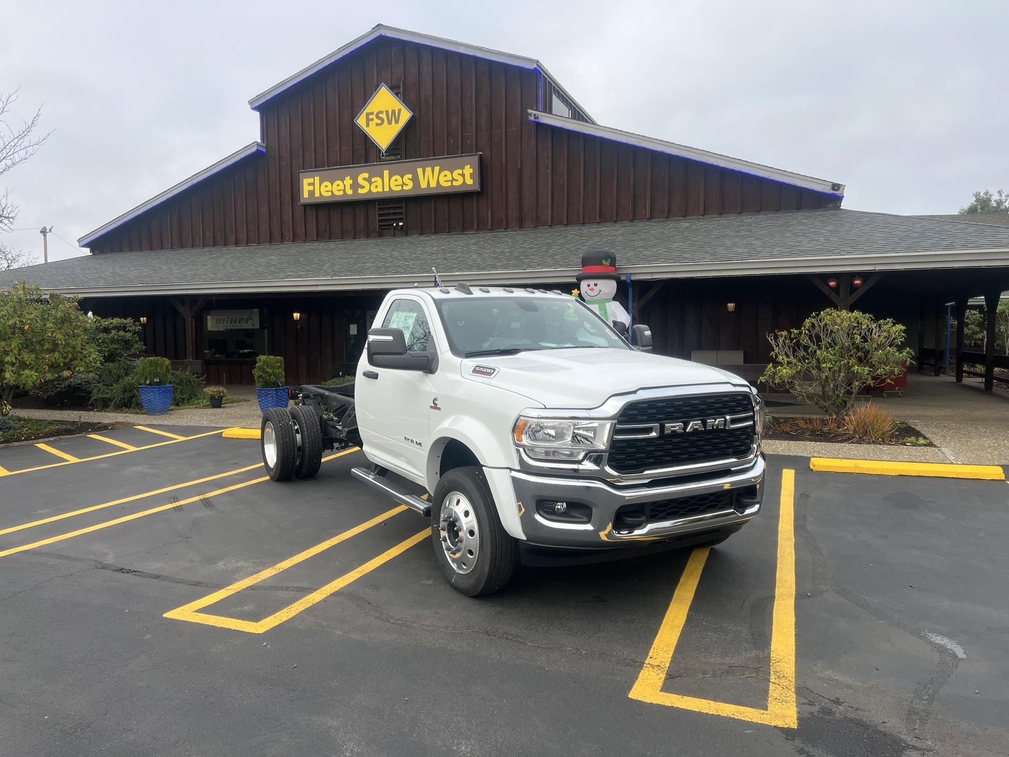 RAM 5500 SLT Reg Cab w/ Cummins 6.7L I-6 OHV Direct Diesel Injection, 24 Valve Intercooled Turbo, 360HP @ 3,000 rpm, 750 lb-ft @ 1,600 rpm, 136 amp Alternator, 6 Speed Automatic Aisin AS68RC, Exhaust brake. Engine Block Heater, 120" CA, 4 Wheel Disc Brakes w/ Front and rear Vented Discs, Non-Independent Front Suspension, Rear Leaf Suspension, 4 Wheel Anti-Lock Braking System, Daytime Running Lights, Dual Air Bags, A/C, 5" Touch Screen AM/FM/CD Radio, Cruise Control, Power Windows, Power Door Locks, 40-20-40 Split Bench Seat, Vinyl Black Material, Upfitter Switches (5). 19,500 GVWR, Chrome Cab Steps, 22 Gal Fuel Tank, 225/70R19.5 Tires w/ 19.5 Alum Wheels