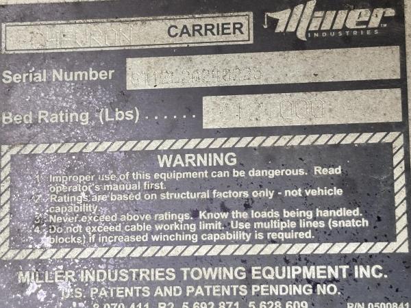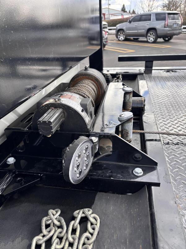 Chevron Steel LCG (Low Center of Gravity) Carrier w/ Wheel Lift, 3/16 Deck Plate, 3x2 Corten Tube Crossmembers on 8 inch Centers, (4) Rear Chain Locks, (2) Front Chain Locks, (6) Floor Plate Chain Locks (3 per side), 8,000lb Worm Gear Winch, 3/8" x 50' Winch Cable, Illuminated Dual Controls, FMVSS 108 Lamp Group Shock Mounted Lighted, Direct Mount Pump, Cable Roller Guide w/ Tensioner, Winch Free Spool Extension, Back-Up Alarm, (2) Safety Chains, Mechanical Anti-tilt, Black Body Paint, 102" Wide Body, Inboard Tilt Cylinders, Floor Level Roll Formed w/ Punched Stake Pockets, 4,000lb Wheel Lift w/ Releasable L Arms, Fully Hydraulic Wheel Lift, (2) Safety Straps & Ratchets, (2) Rear Safety Chains, Body Lock w/ Nylatron Toller Bearings, & 12,000lb Deck Load Rating. Body SN: ST12L2A240225