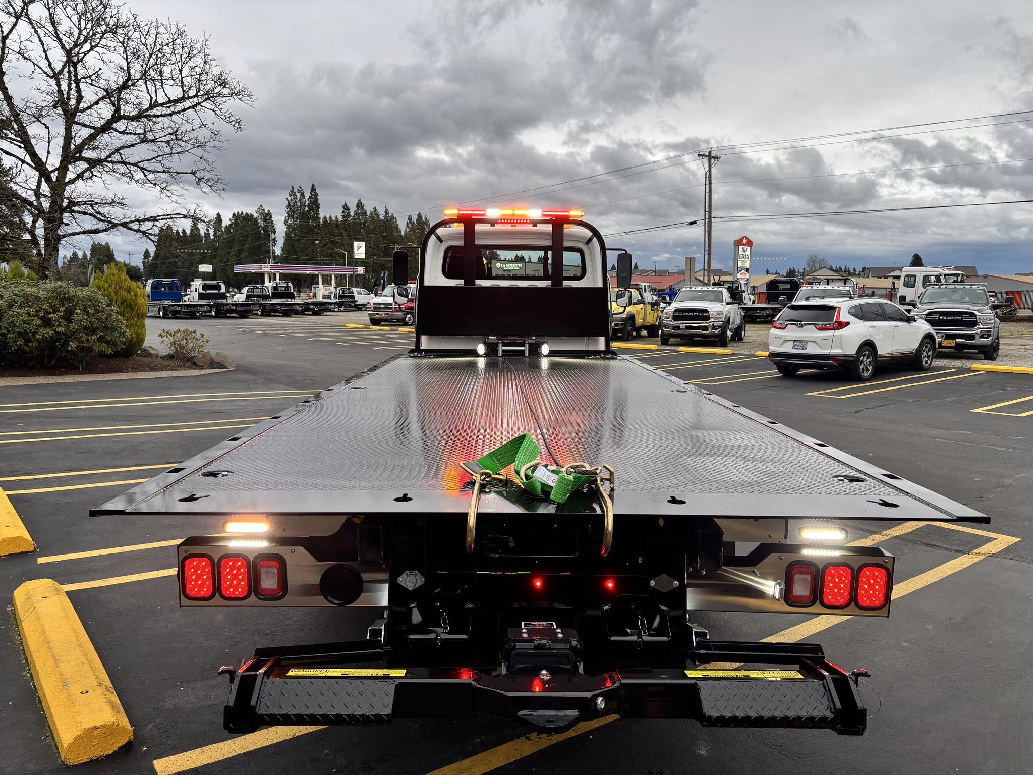 Chevron 21' Steel LCG (Low Center of Gravity) Carrier w/ Wheel Lift, 3/16 Deck Plate, 3x2 Corten Tube Crossmembers on 8 inch Centers, (4) Rear Chain Locks, (2) Front Chain Locks, (6) Floor Plate Chain Locks (3 per side), 8,000lb Worm Gear Winch, 3/8" x 50' Winch Cable, Illuminated Dual Controls, FMVSS 108 Lamp Group Shock Mounted Lighted, Direct Mount Pump, Cable Roller Guide w/ Tensioner, Winch Free Spool Extension, Back-Up Alarm, (2) Safety Chains, Mechanical Anti-tilt, Black Body Paint, 102" Wide Body, Inboard Tilt Cylinders, Floor Level Roll Formed w/ Punched Stake Pockets, 4,000lb Wheel Lift w/ Releasable L Arms, Fully Hydraulic Wheel Lift, (2) Safety Straps & Ratchets, (2) Rear Safety Chains, Body Lock w/ Nylatron Roller Bearings, & 12,000lb Deck Load Rating. Body Serial# ST12L2E252436