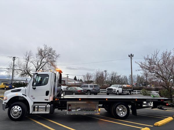Chevron 21' Steel LCG (Low Center of Gravity) Carrier w/ Wheel Lift, 3/16 Deck Plate, 3x2 Corten Tube Crossmembers on 8 inch Centers, (4) Rear Chain Locks, (2) Front Chain Locks, (6) Floor Plate Chain Locks (3 per side), 8,000lb Worm Gear Winch, 3/8" x 50' Winch Cable, Illuminated Dual Controls, FMVSS 108 Lamp Group Shock Mounted Lighted, Direct Mount Pump, Cable Roller Guide w/ Tensioner, Winch Free Spool Extension, Back-Up Alarm, (2) Safety Chains, Mechanical Anti-tilt, Black Body Paint, 102" Wide Body, Inboard Tilt Cylinders, Floor Level Roll Formed w/ Punched Stake Pockets, 4,000lb Wheel Lift w/ Releasable L Arms, Fully Hydraulic Wheel Lift, (2) Safety Straps & Ratchets, (2) Rear Safety Chains, Body Lock w/ Nylatron Roller Bearings, & 12,000lb Deck Load Rating. Body Serial# ST12L2E252436