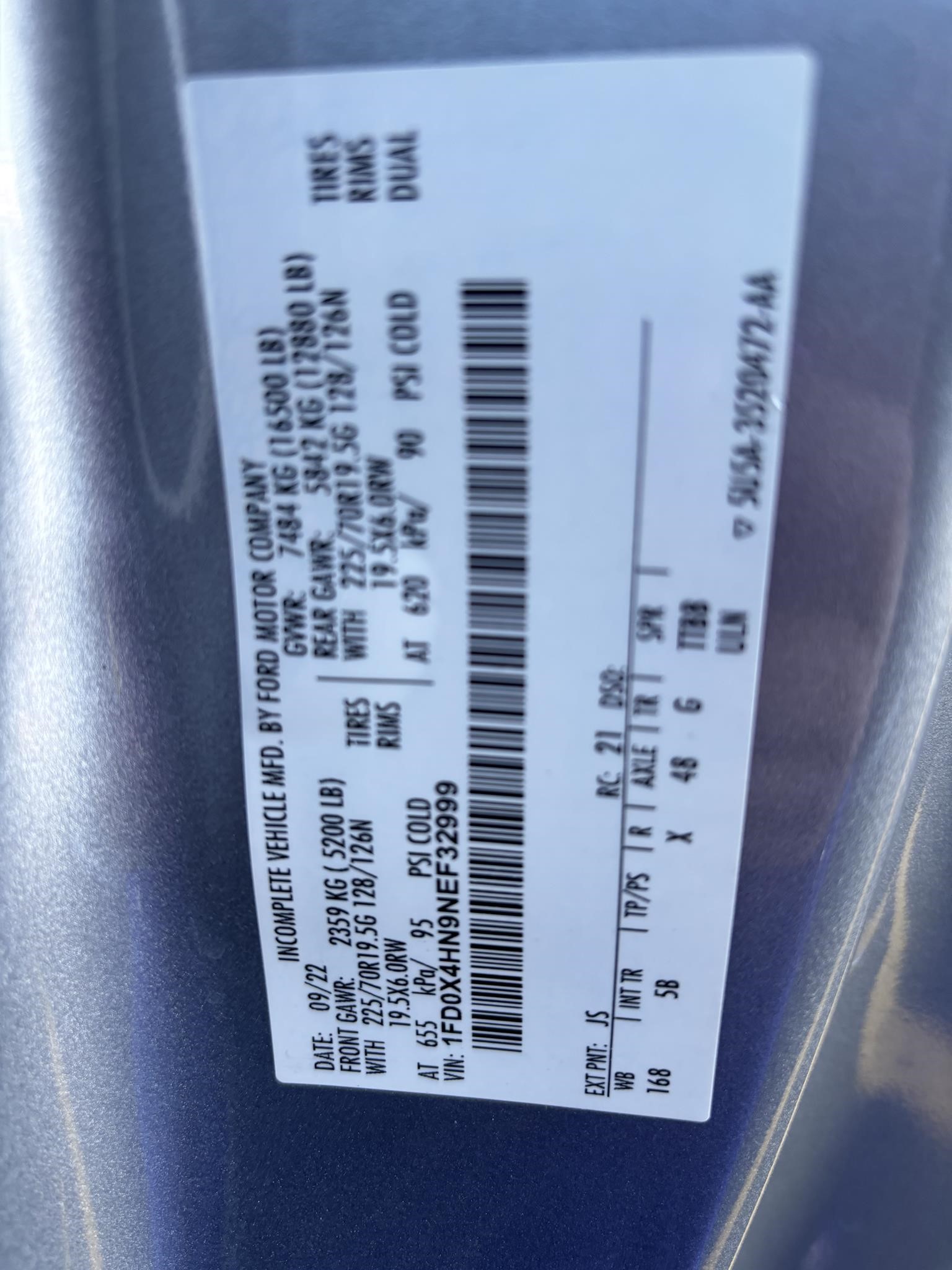 - VIN: 1FDOX4HN9NEF32999