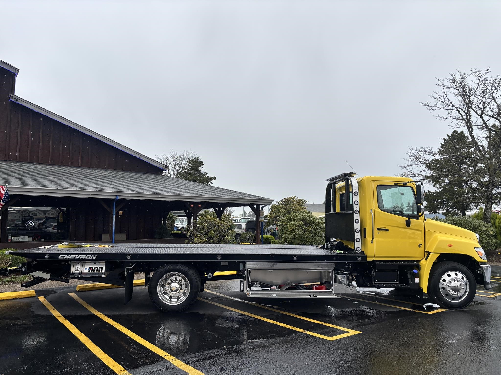 Chevron LCG 12 21.5' Steel LCG (Low Center of Gravity) Carrier w/ Wheel Lift, 3/16 Deck Plate, 2x2 Corten Tube Crossmembers on 8 inch Centers, (4) Rear Chain Locks, (2) Front Chain Locks, (6) Floor Plate Chain Locks (3 per side), 8K Ramsey winch, 3/8" x 50' Winch Cable, Illuminated Dual Controls, FMVSS 108 Lamp Group Shock Mounted Lighted, Direct Mount Pump, Cable Roller Guide w/ Tensioner, Winch Free Spool Extension, Back-Up Alarm, (2) Safety Chains, Mechanical Anti-tilt, Black Body Paint, 102" Wide Body, Inboard Tilt Cylinders, Floor Level Roll Formed w/ Punched Stake Pockets, 4,000lb Wheel Lift w/ Releasable L Arms, Fully Hydraulic Wheel Lift, (2) Safety Straps & Ratchets, (2) Rear Safety Chains, Body Lock w/ Nylatron roller Bearings, & 12,000lb Deck Load Rating, Body Serial # ST12L2D243107