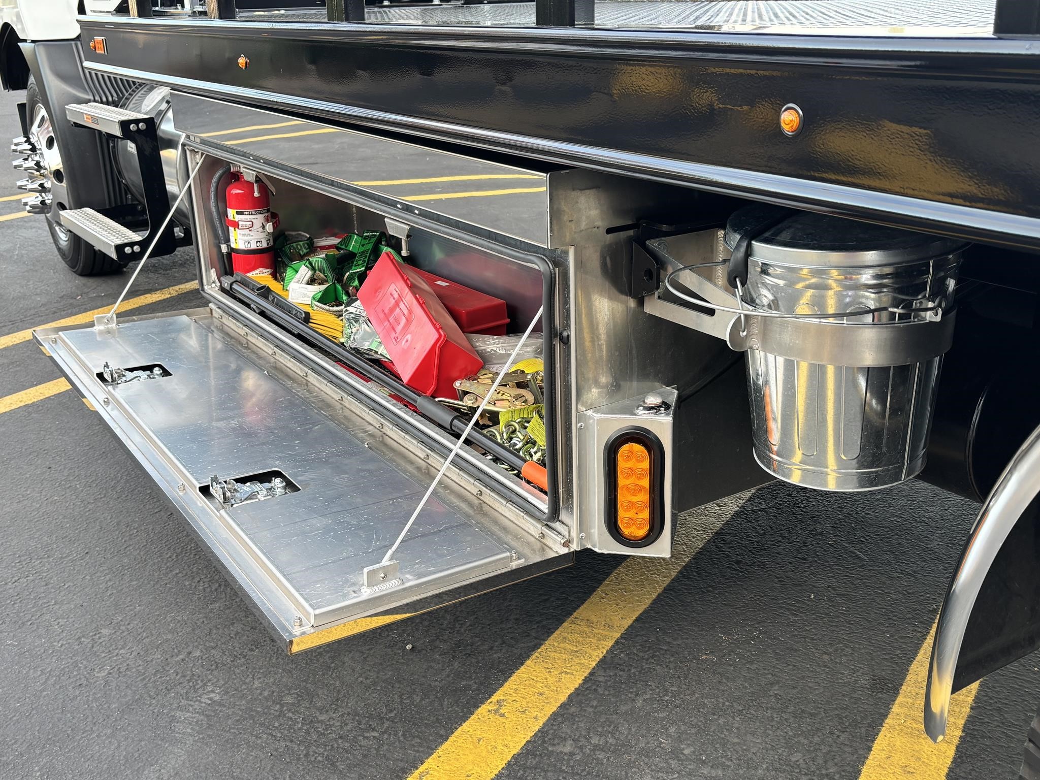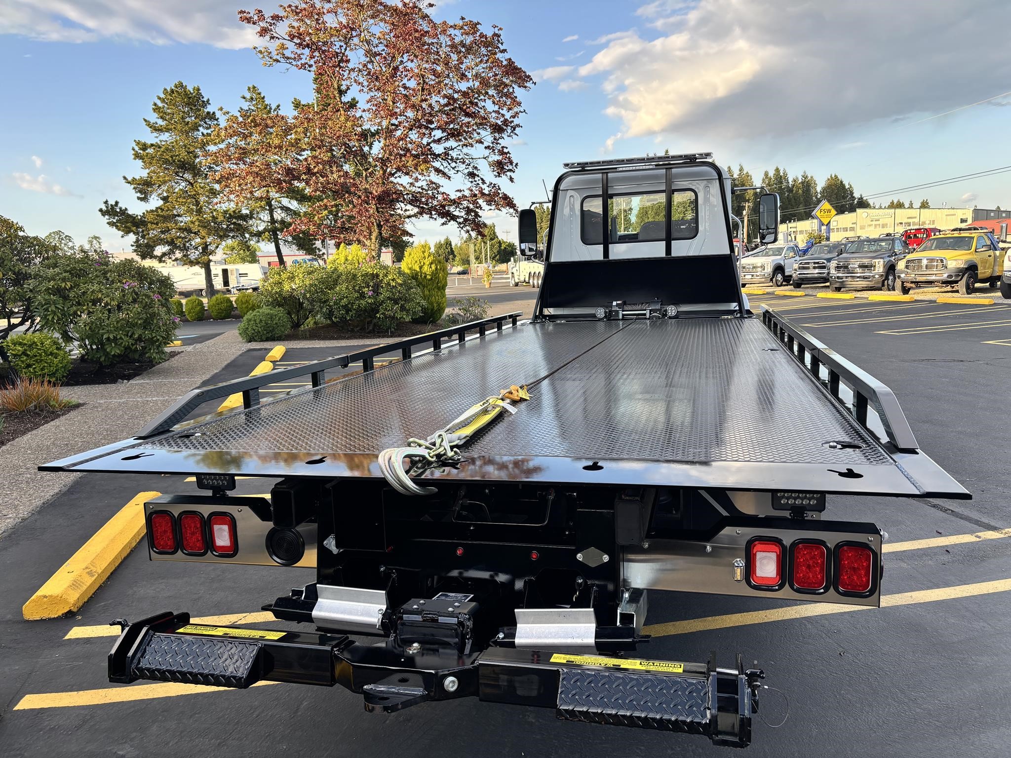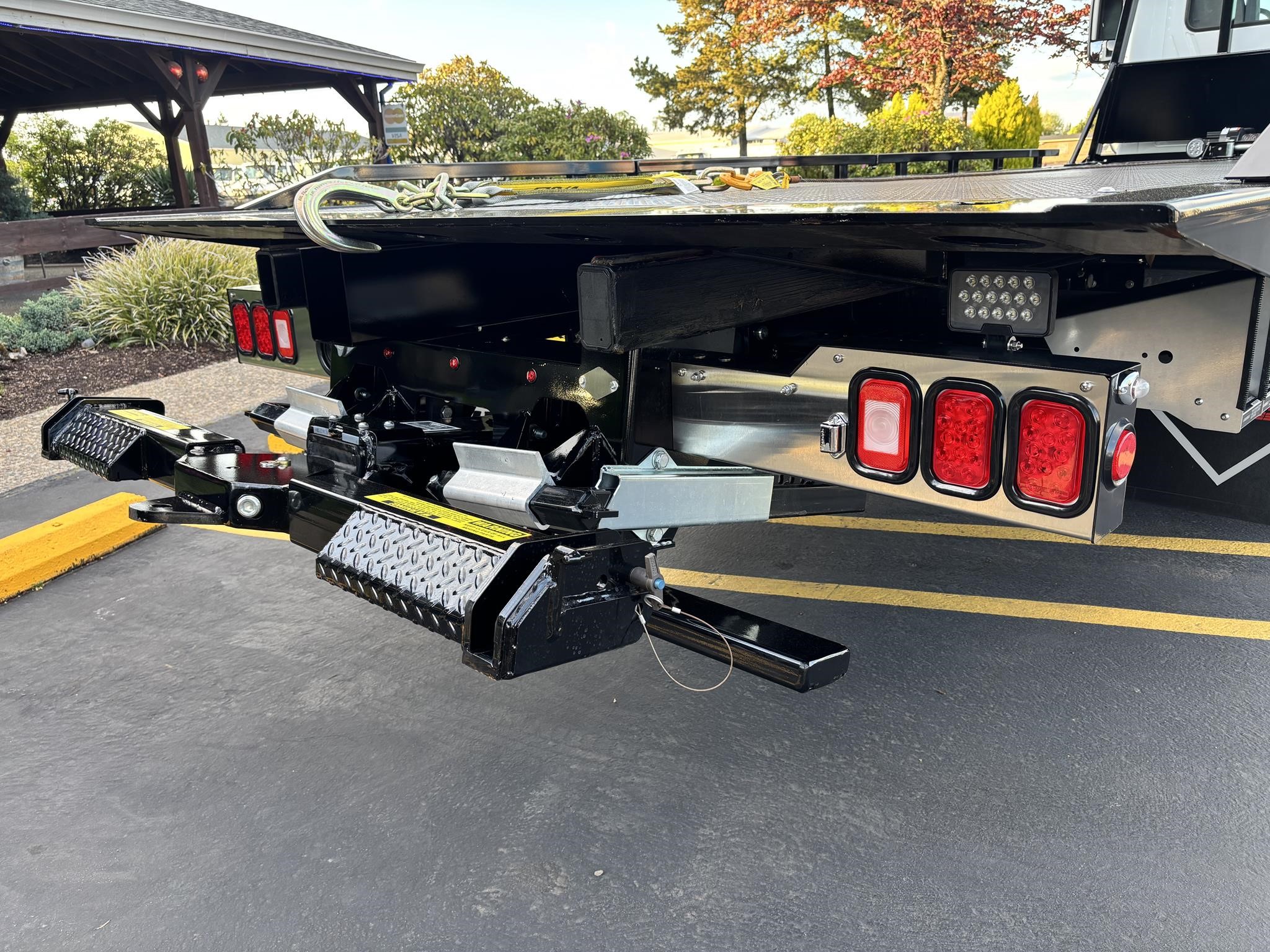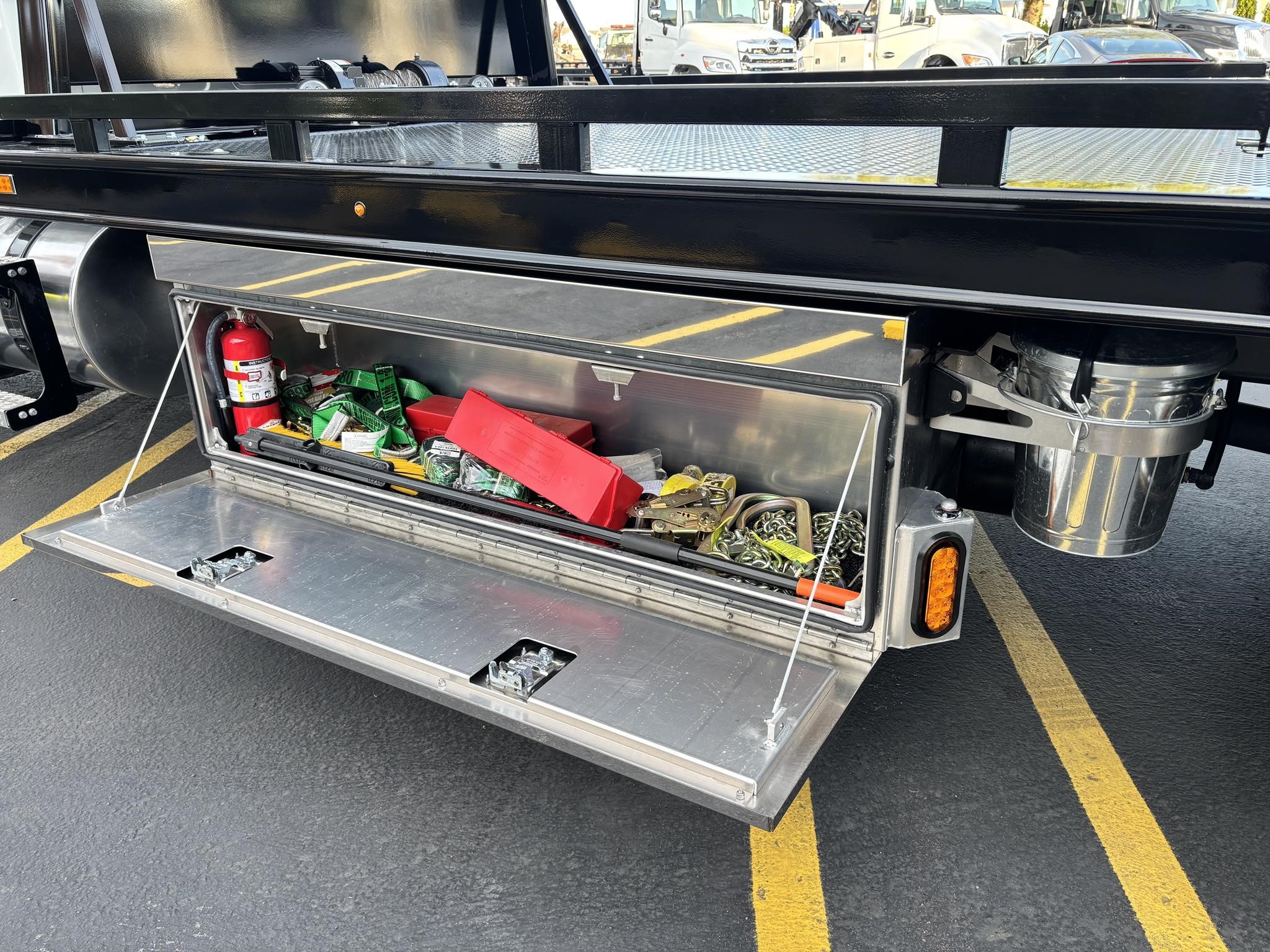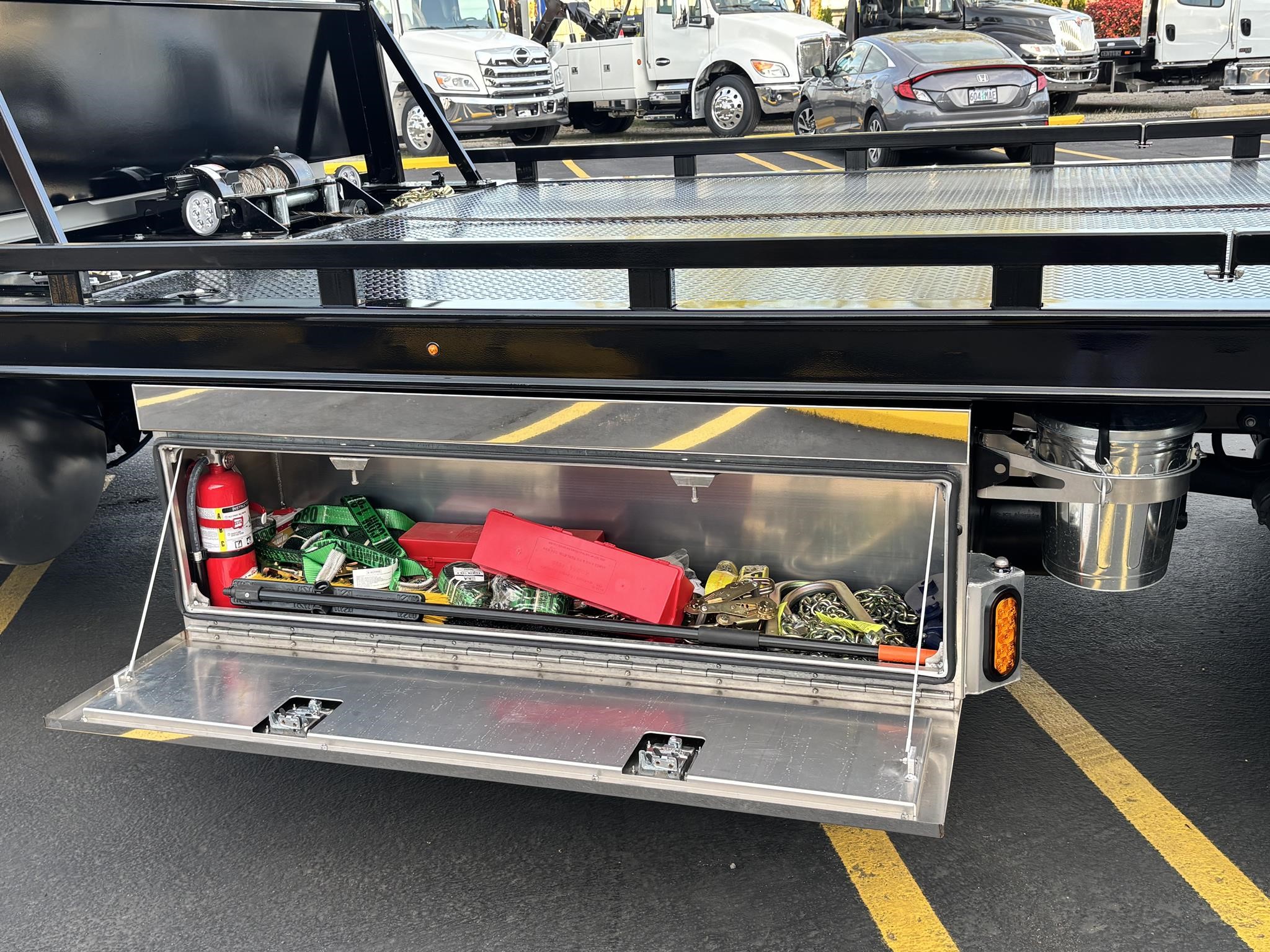Chevron 21.5' Steel LCG (Low Center of Gravity) Carrier w/ Wheel Lift, 3/16 Deck Plate, 3x2 Corten Tube Crossmembers on 8 inch Centers, (4) Rear Chain Locks, (2) Front Chain Locks, (6) Floor Plate Chain Locks (3 per side), 8,000lb Worm Gear Winch, 3/8" x 50' Winch Cable, Illuminated Dual Controls, FMVSS 108 Lamp Group Shock Mounted Lighted, Direct Mount Pump, Cable Roller Guide w/ Tensioner, Winch Free Spool Extension, Back-Up Alarm, (2) Safety Chains, Mechanical Anti-tilt, Black Body Paint, 102" Wide Body, Inboard Tilt Cylinders, Floor Level Roll Formed w/ Punched Stake Pockets, 4,000lb Wheel Lift w/ Releasable L Arms, Fully Hydraulic Wheel Lift, (2) Safety Straps & Ratchets, (2) Rear Safety Chains, Body Lock w/ Nylatron Roller Bearings, & 12,000lb Deck Load Rating. Body Serial# ST12L2D251931
