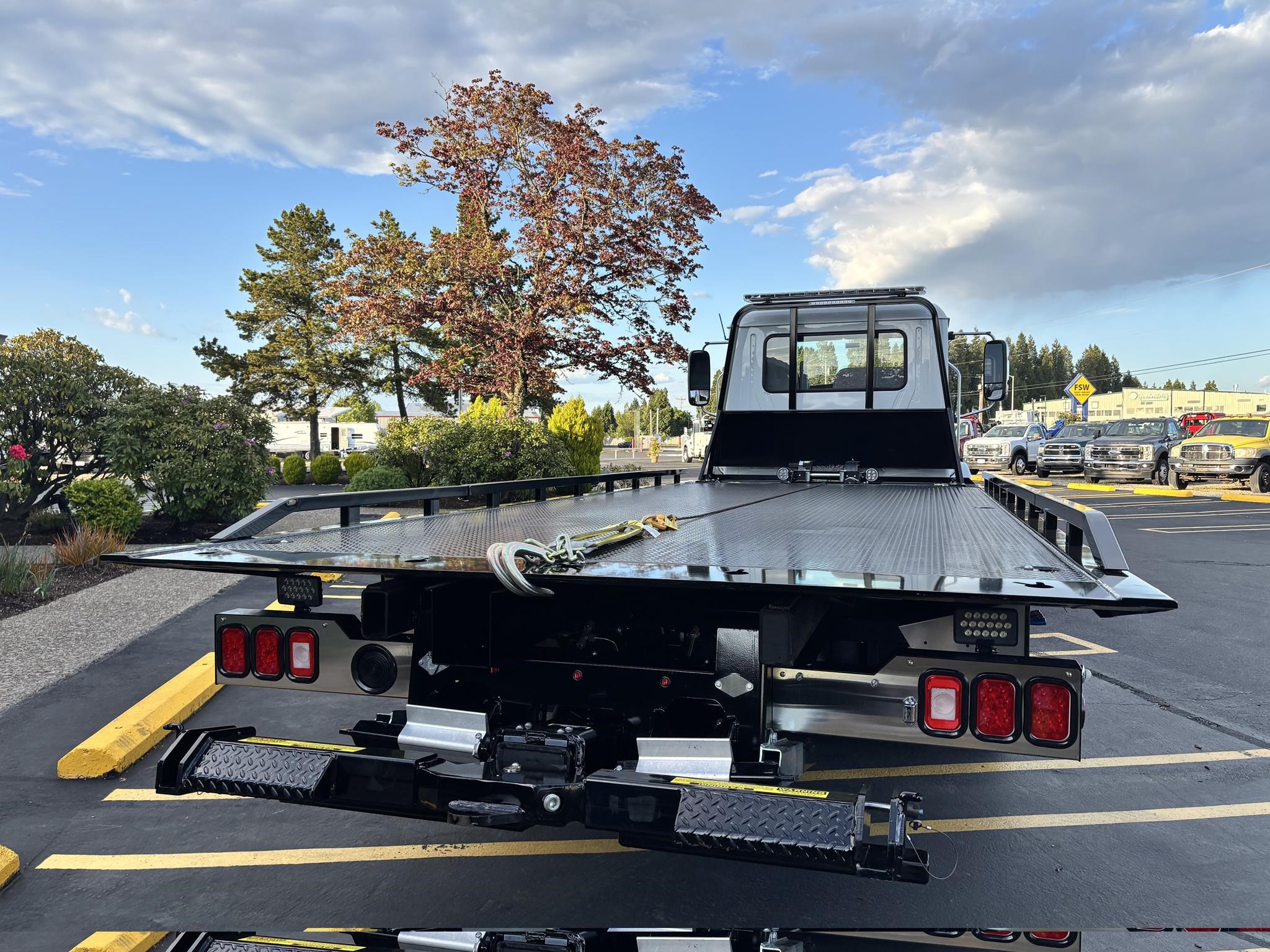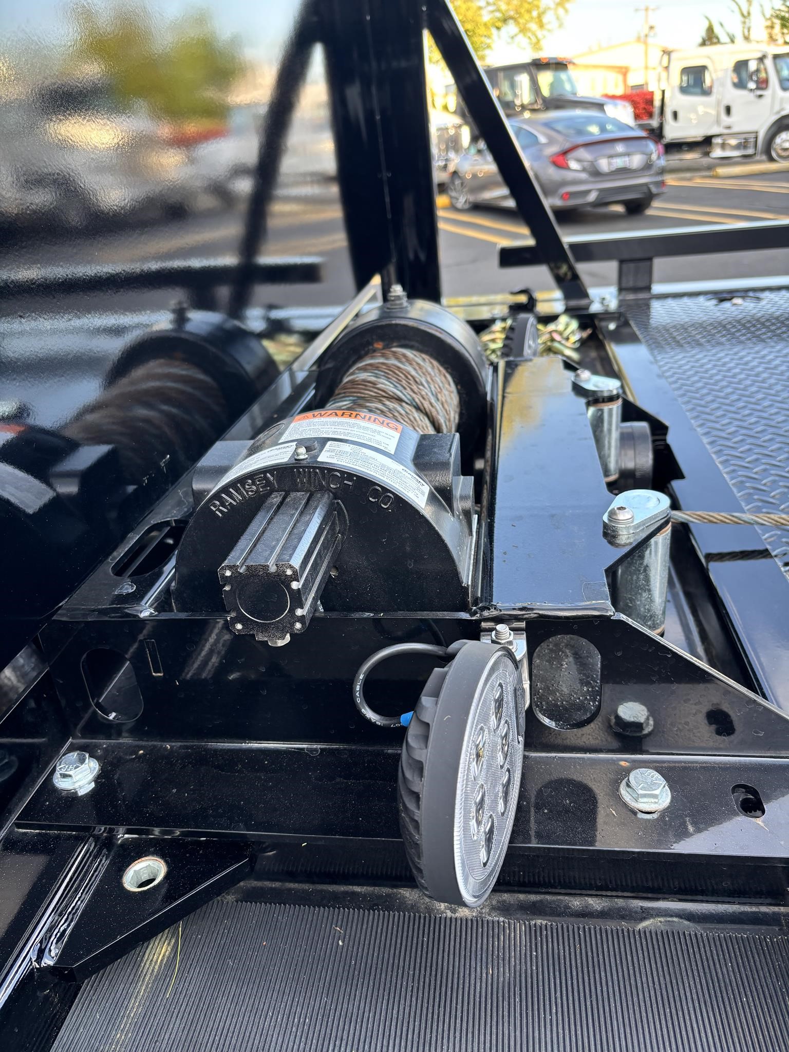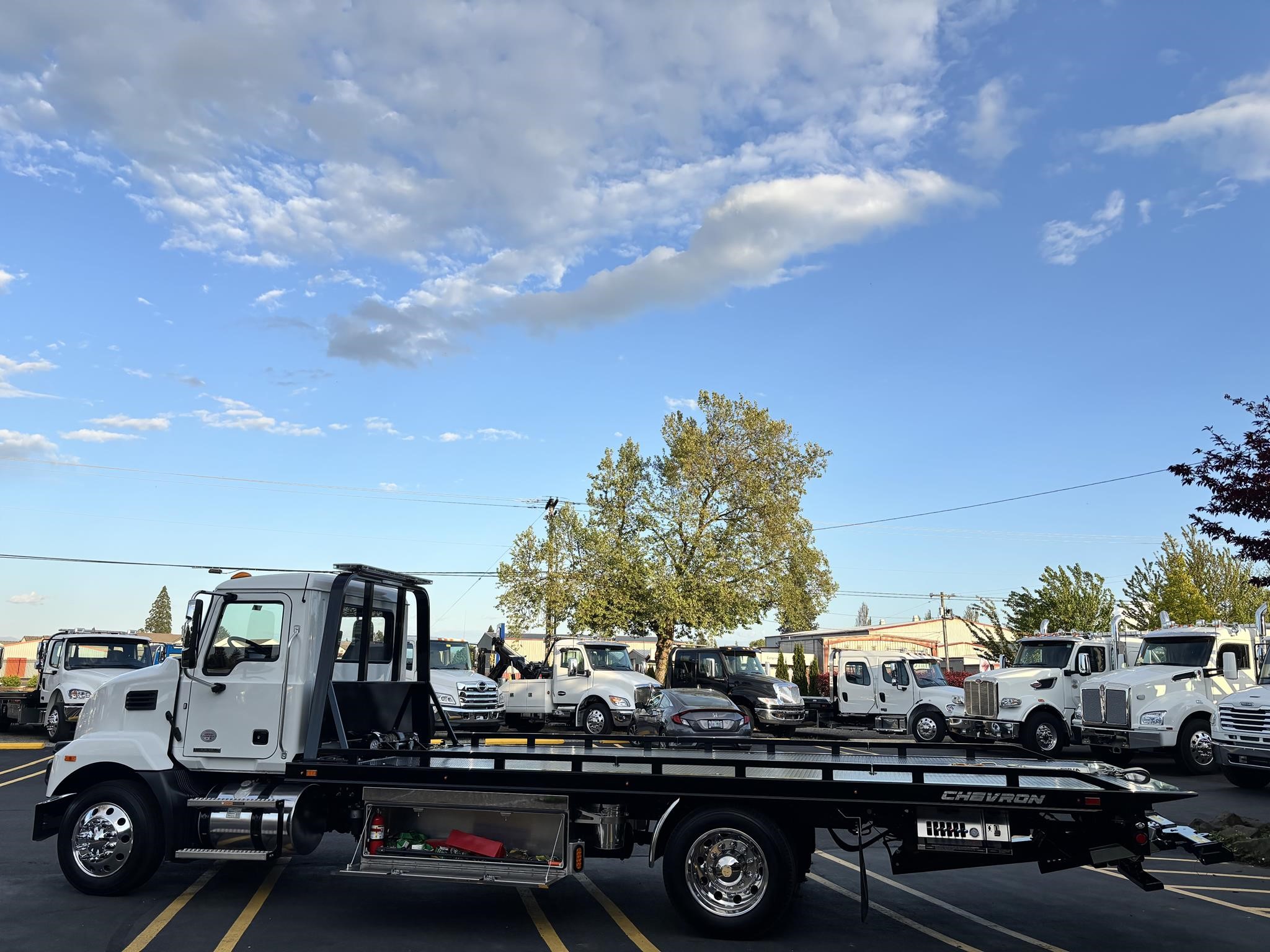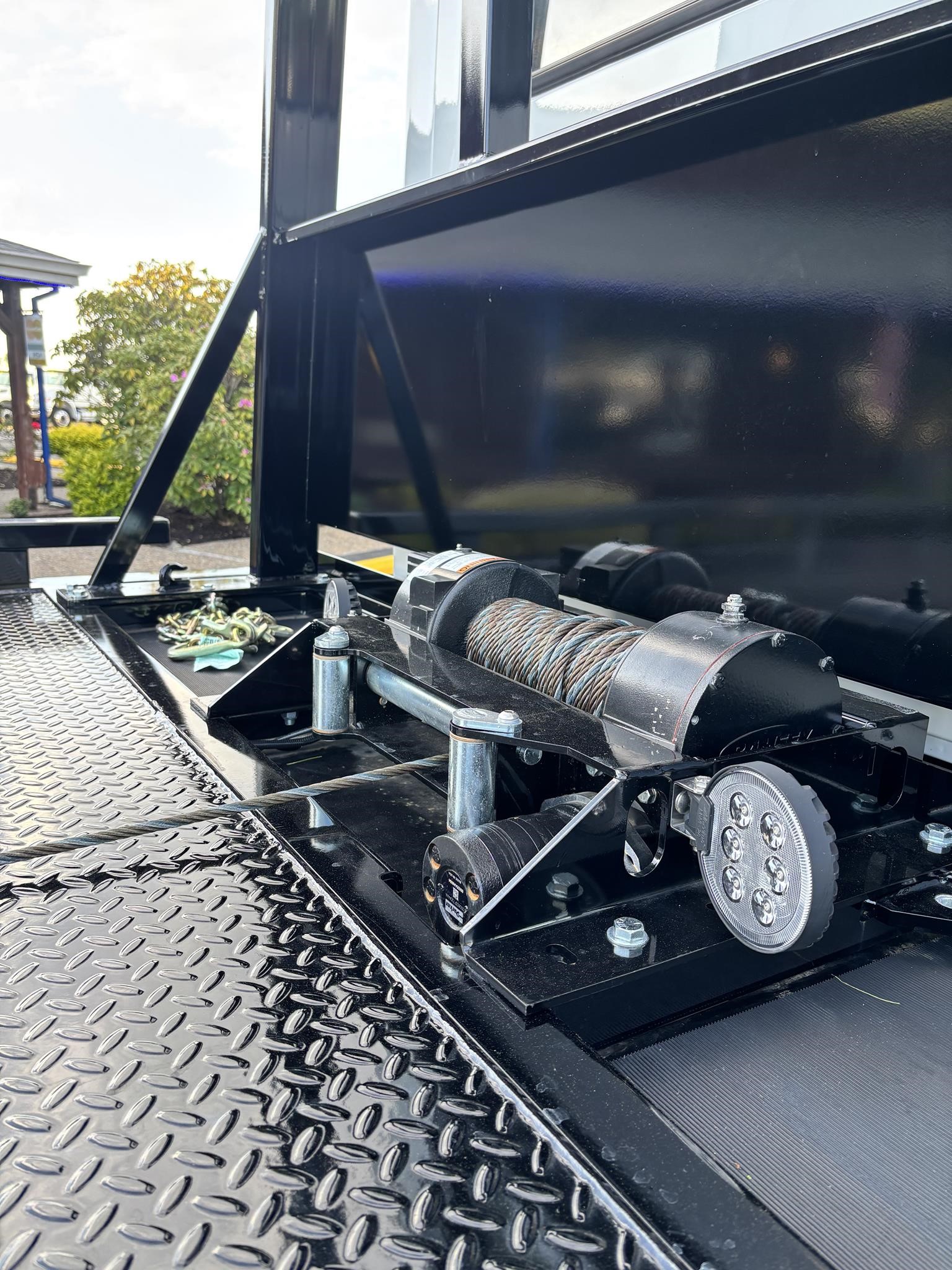 Chevron 21.5' Steel LCG (Low Center of Gravity) Carrier w/ Wheel Lift, 3/16 Deck Plate, 3x2 Corten Tube Crossmembers on 8 inch Centers, (4) Rear Chain Locks, (2) Front Chain Locks, (6) Floor Plate Chain Locks (3 per side), 8,000lb Worm Gear Winch, 3/8" x 50' Winch Cable, Illuminated Dual Controls, FMVSS 108 Lamp Group Shock Mounted Lighted, Direct Mount Pump, Cable Roller Guide w/ Tensioner, Winch Free Spool Extension, Back-Up Alarm, (2) Safety Chains, Mechanical Anti-tilt, Black Body Paint, 102" Wide Body, Inboard Tilt Cylinders, Floor Level Roll Formed w/ Punched Stake Pockets, 4,000lb Wheel Lift w/ Releasable L Arms, Fully Hydraulic Wheel Lift, (2) Safety Straps & Ratchets, (2) Rear Safety Chains, Body Lock w/ Nylatron Roller Bearings, & 12,000lb Deck Load Rating. Body Serial# ST12L2D251931