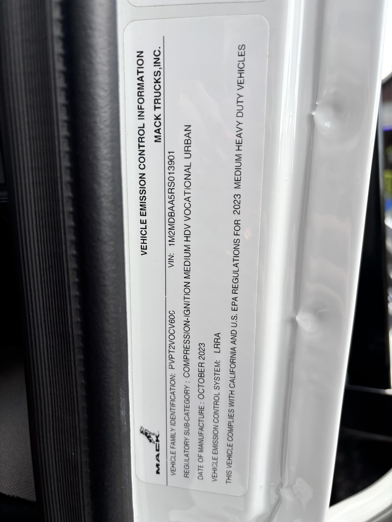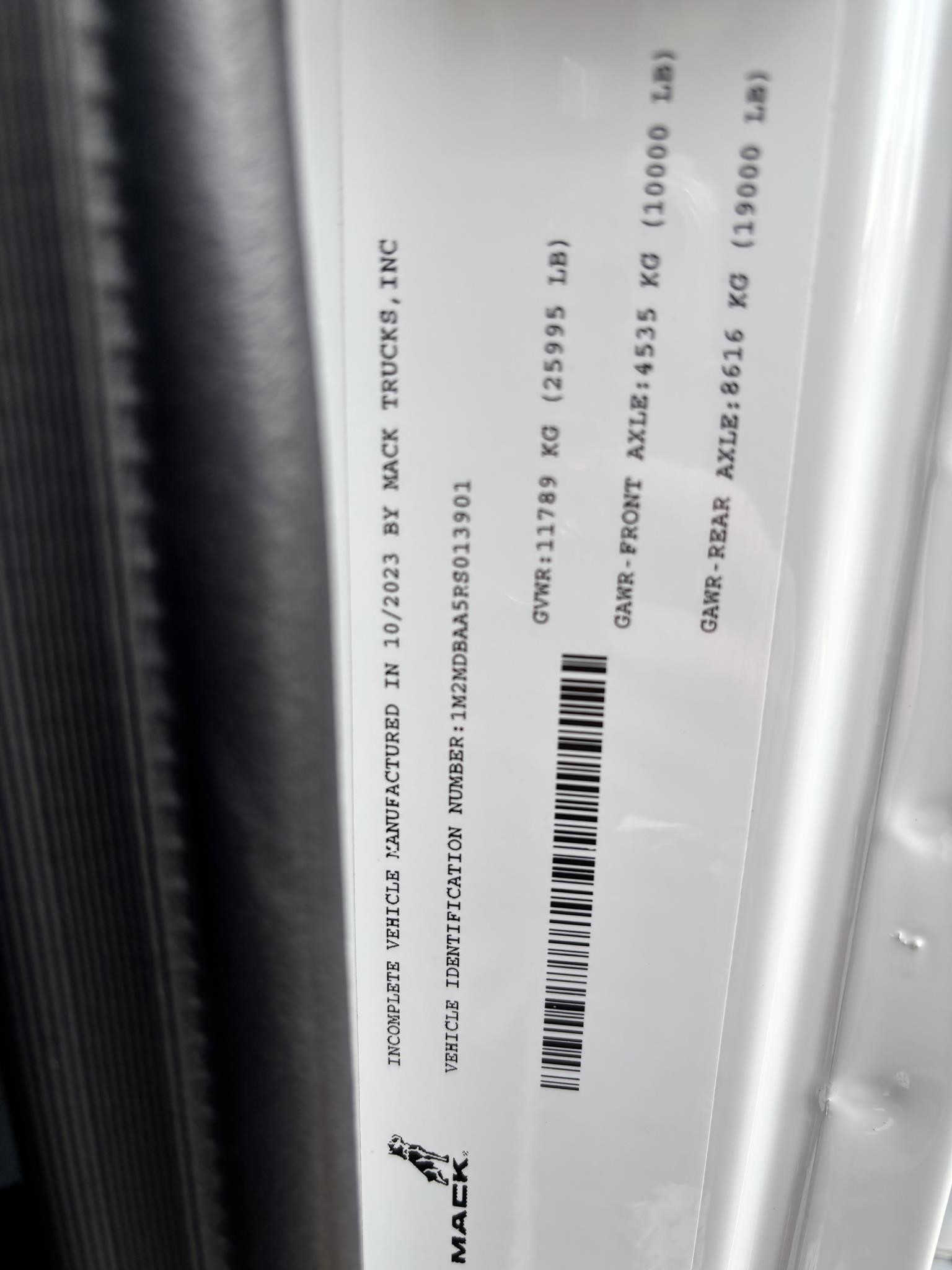2024 Mack MD6 w/ Cumins 6.7L, 260HP, 660 lb-ft, Allison RDS 2500 6 Speed Auto w/ PTO Provisions, Auto Neutral Shift Selector, Engine Brake, Cruise Control, 10,000lb Front Axle, 19,000lb Rear Axle, Air Ride Suspension, 4.88 Rear Axle Ratio, 50 Gal Alum Fuel Tank, DEF Tank, AM/FM w/ Bluetooth, Air Ride Driver Seat, Fixed Pass Seat, Chrome Bumper, Chrome Heated Mirrors, Power windows, Power locks. PTO Switch. 255/70R22.5 Tires w/ 22.5 Alum Wheels, 25,995 GVW